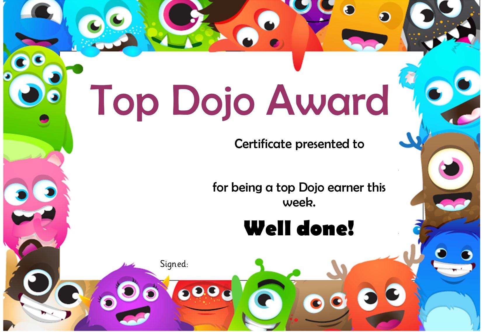 The children who are in the top three in each class for the number of dojos received each week are awarded a Top Dojo Certificate in our Celebration Assembly.