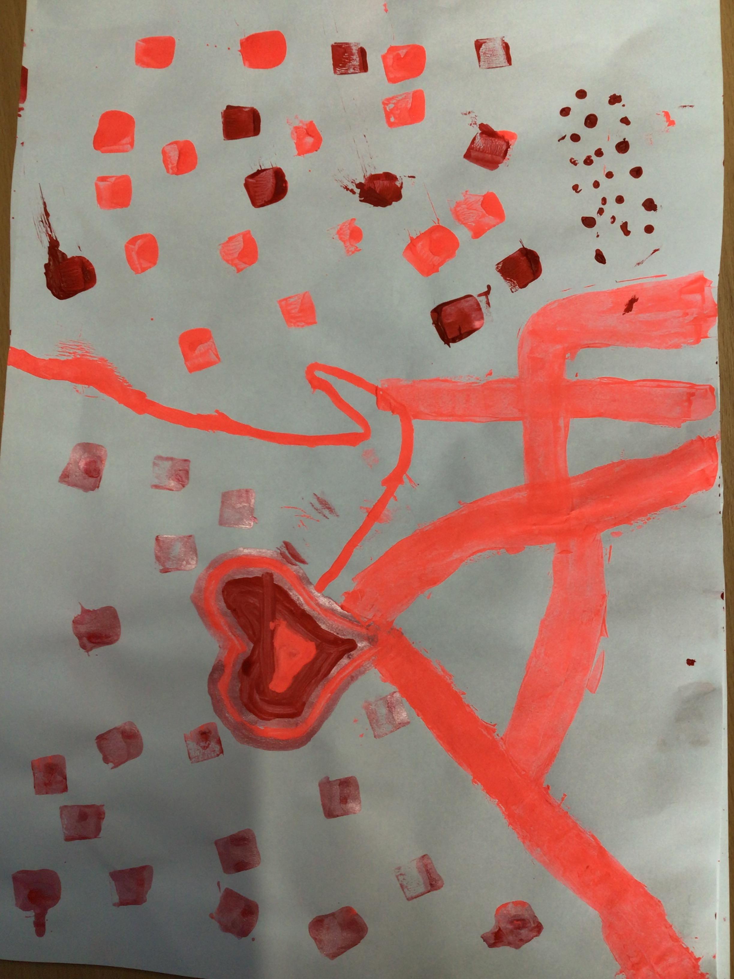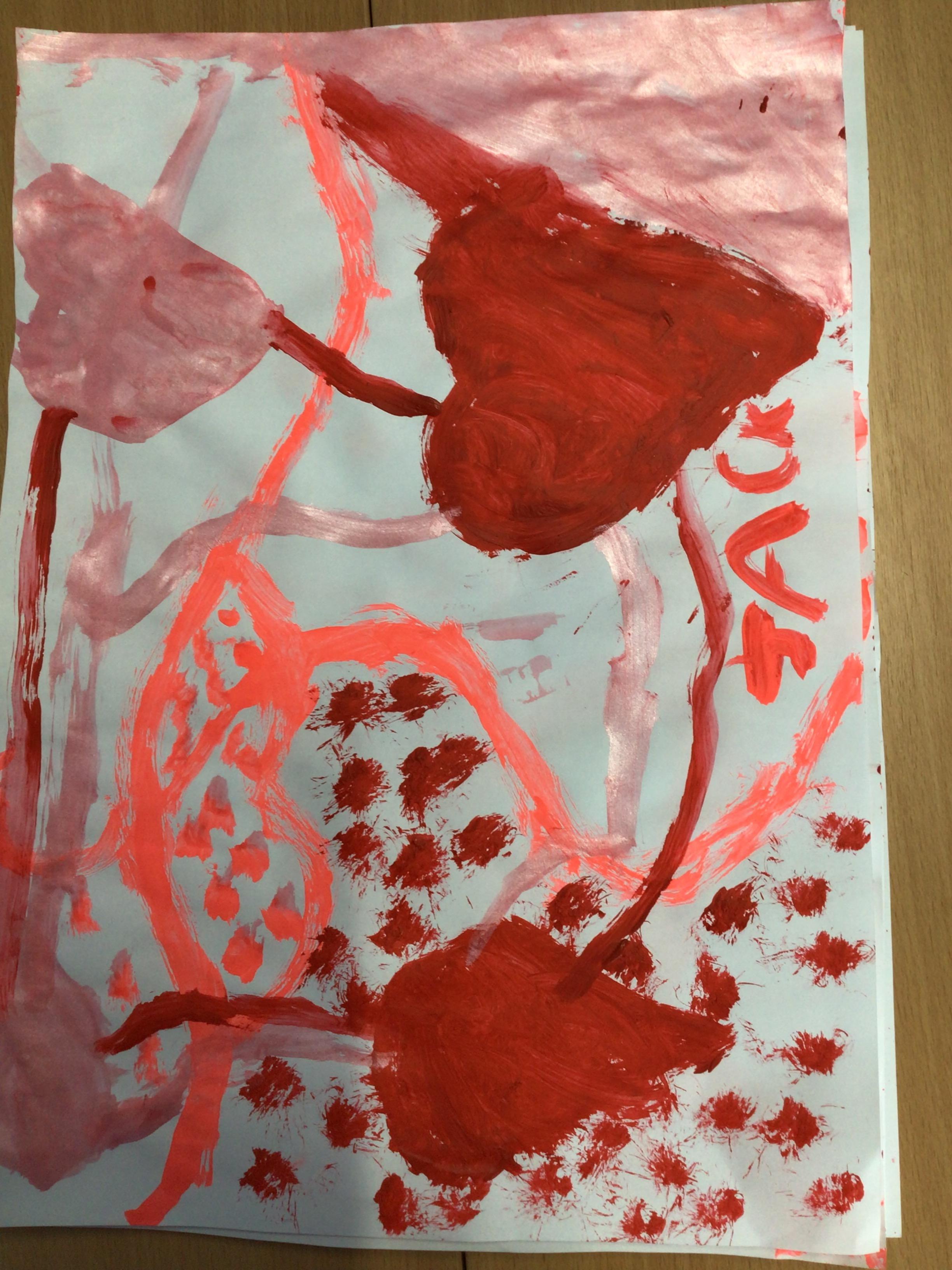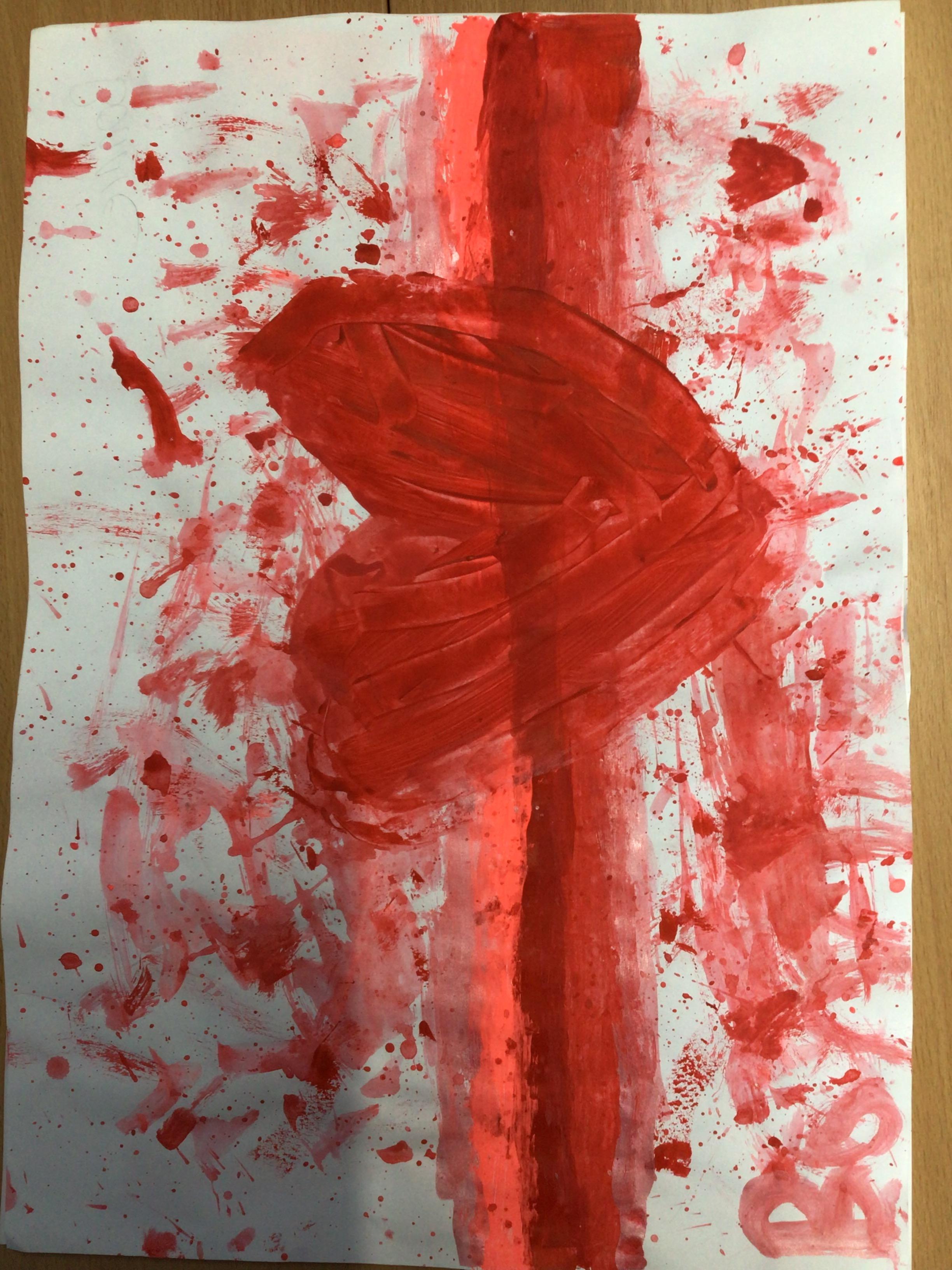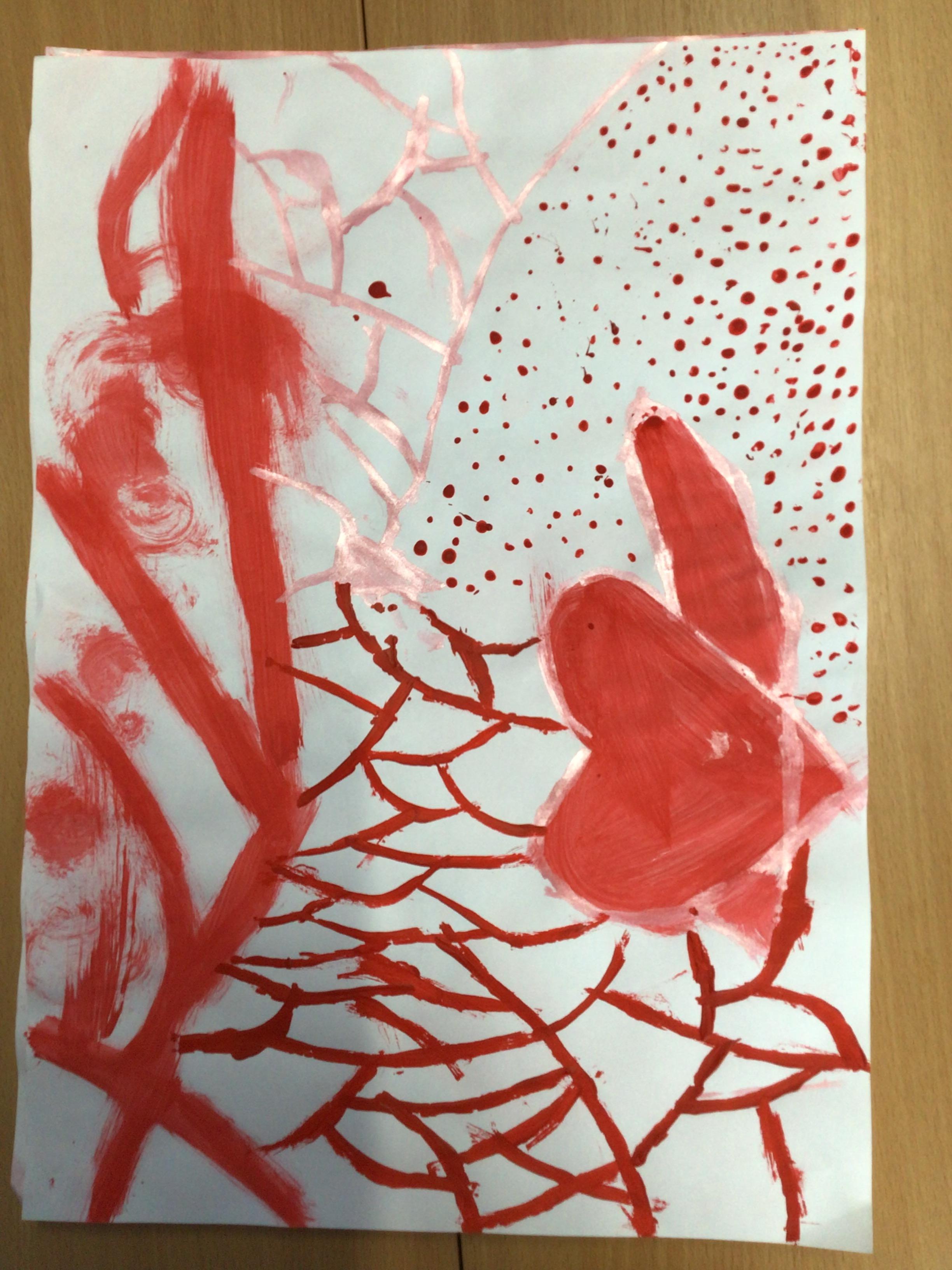 In art, the children created their own abstract paintings, with the theme Blood Red Art