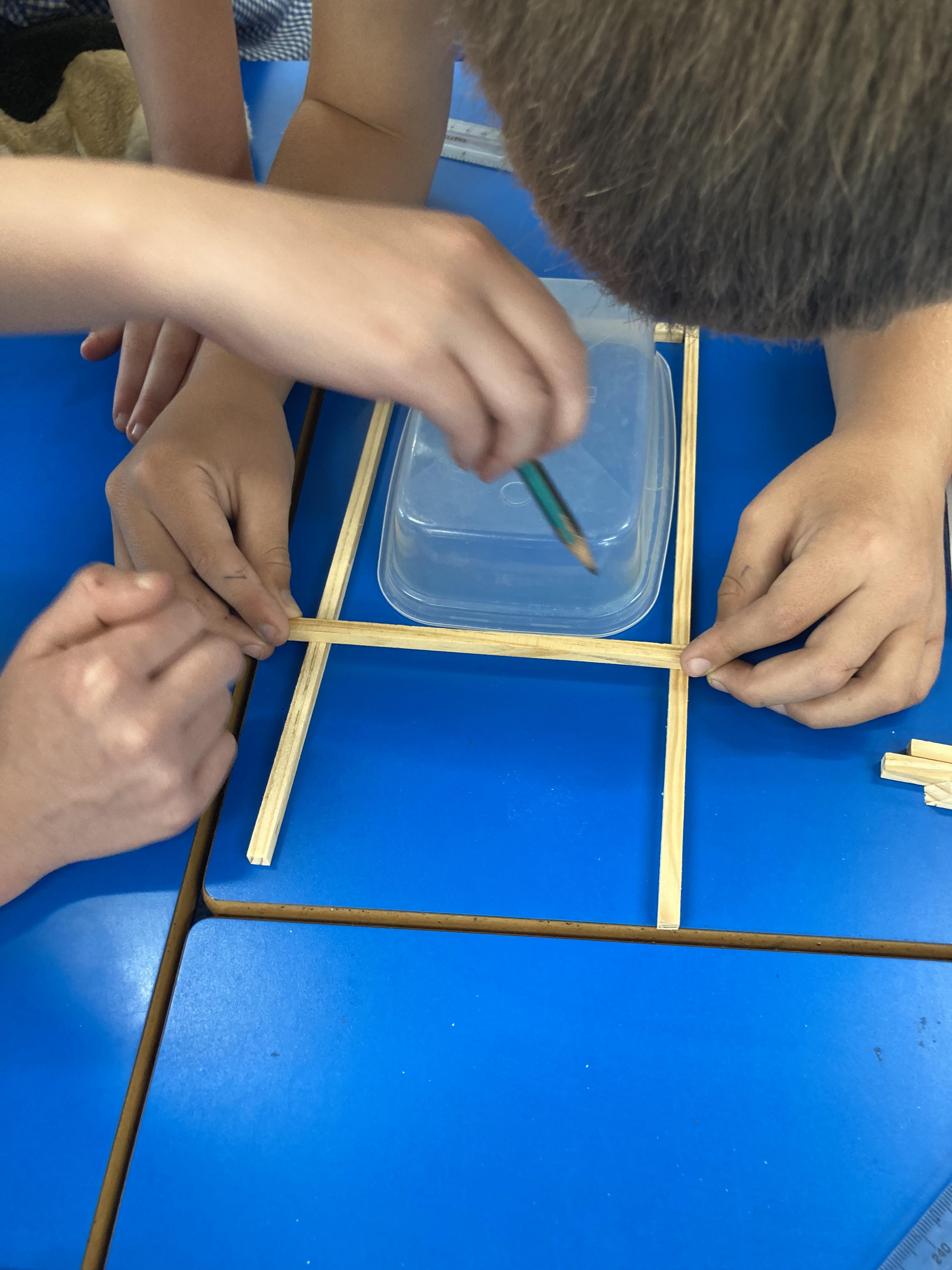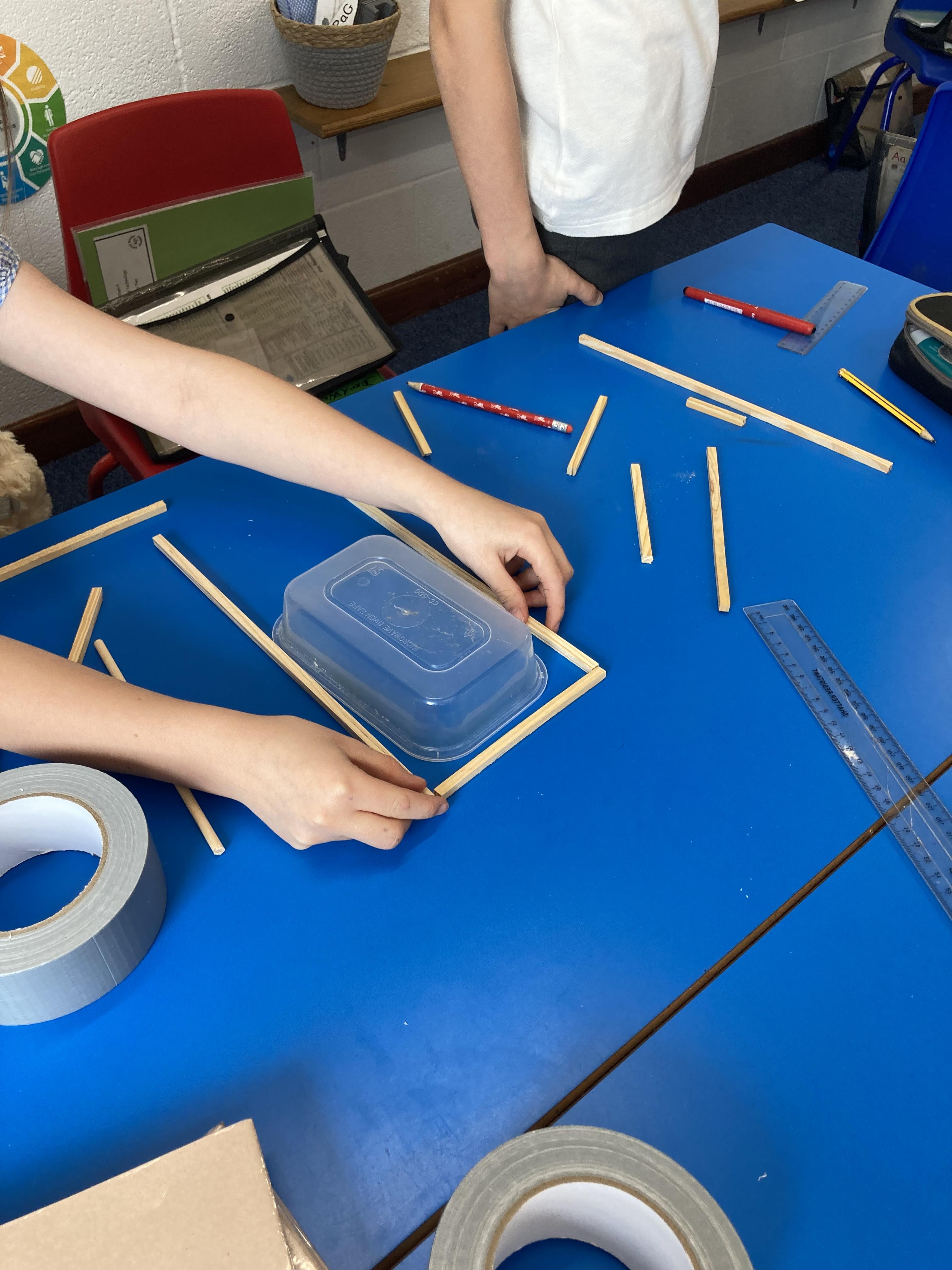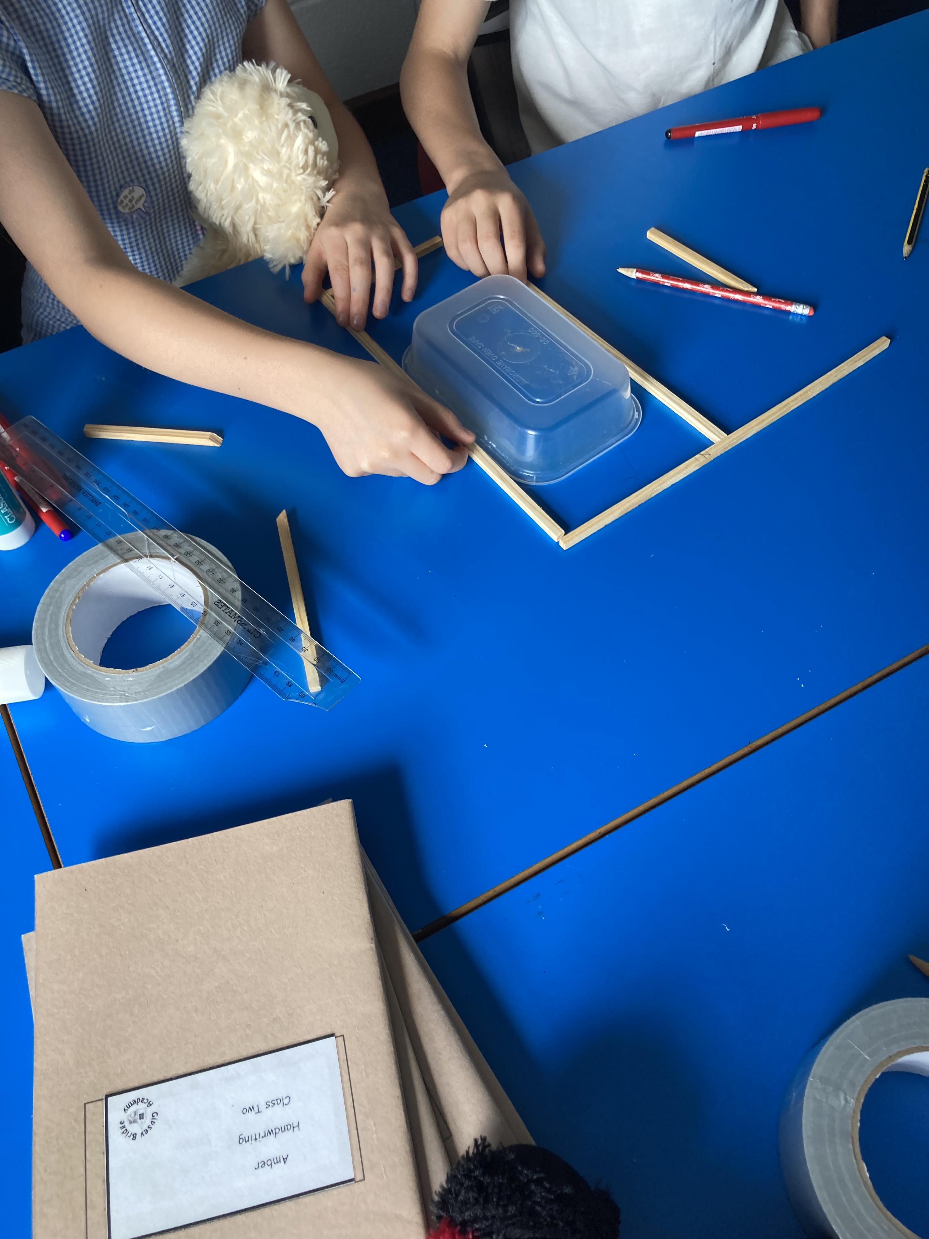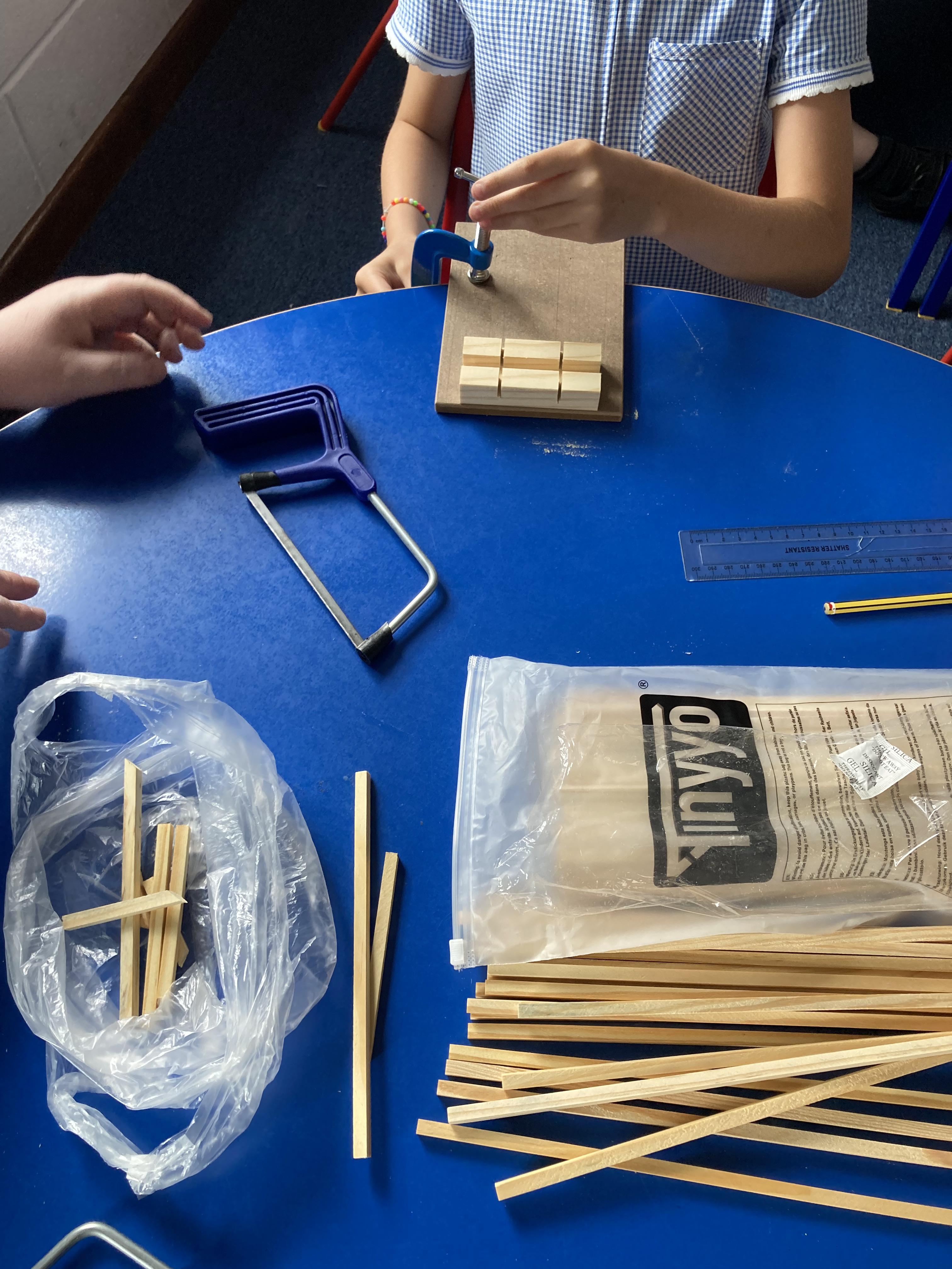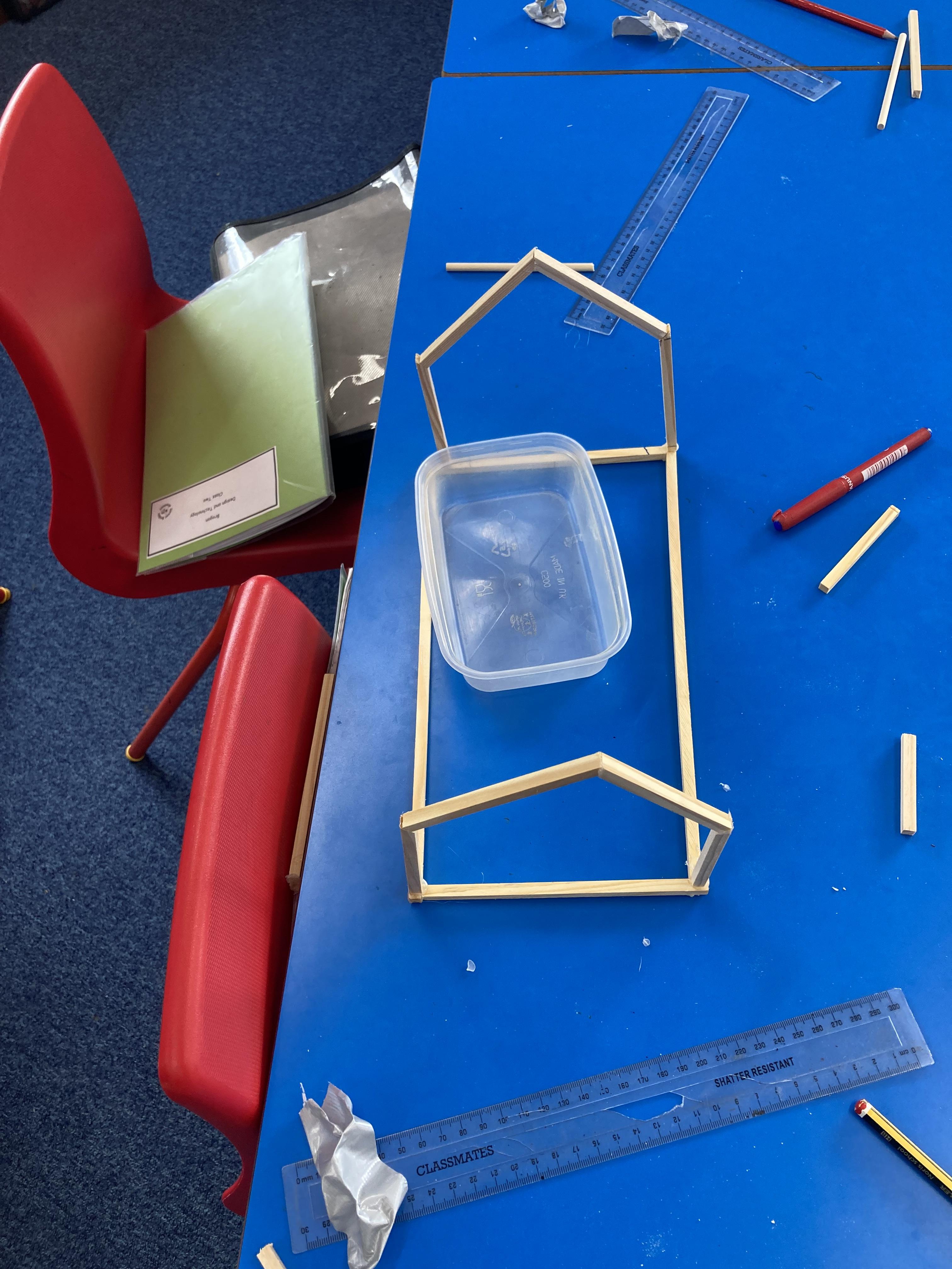 Using their newly acquired skills, Class 2 worked in small groups to build their own greenhouse. The requirements were to be a wooden frame, have a translucent cover, be able to fit a specific size tub to grow cress and use different joints when building.