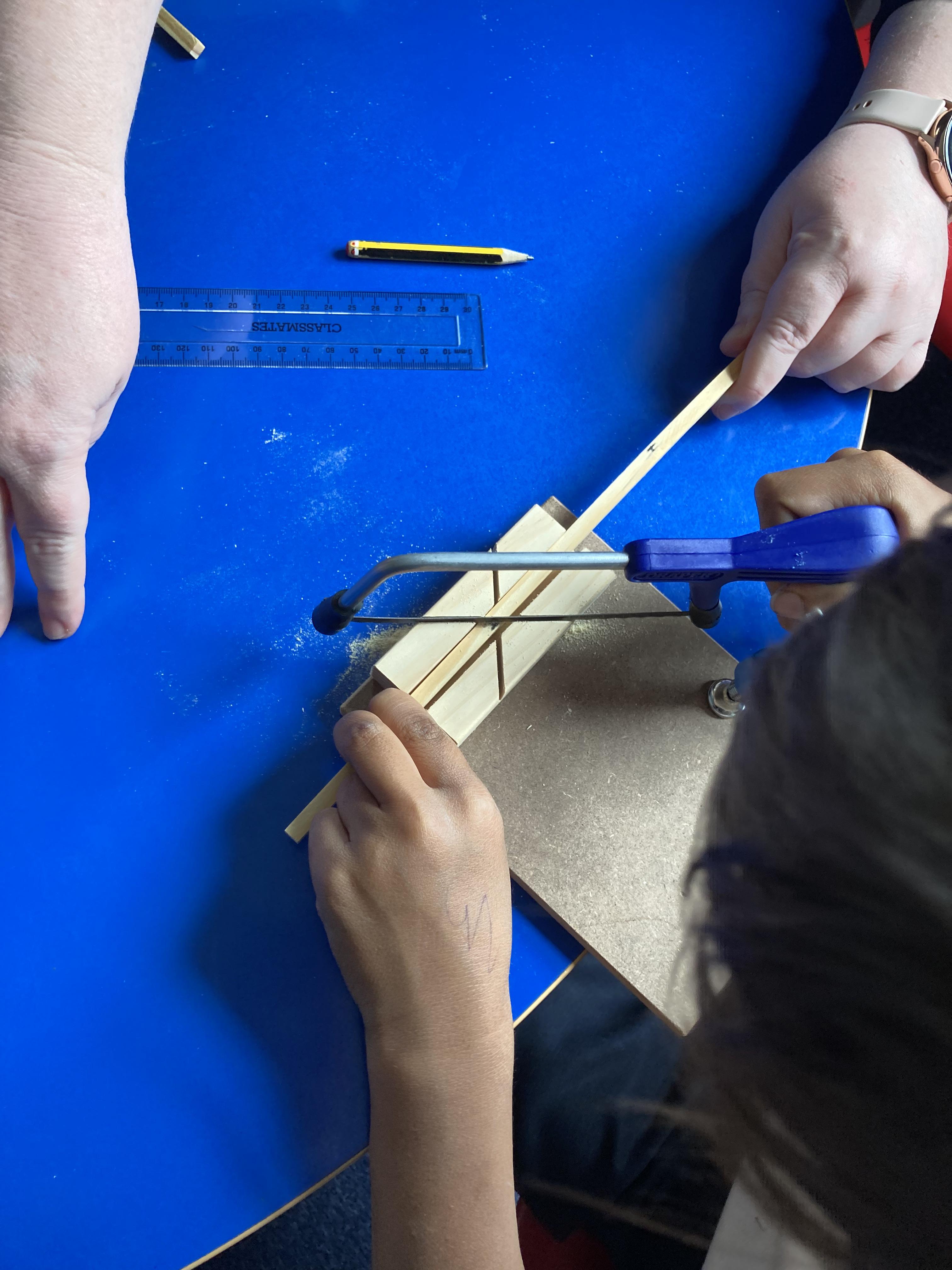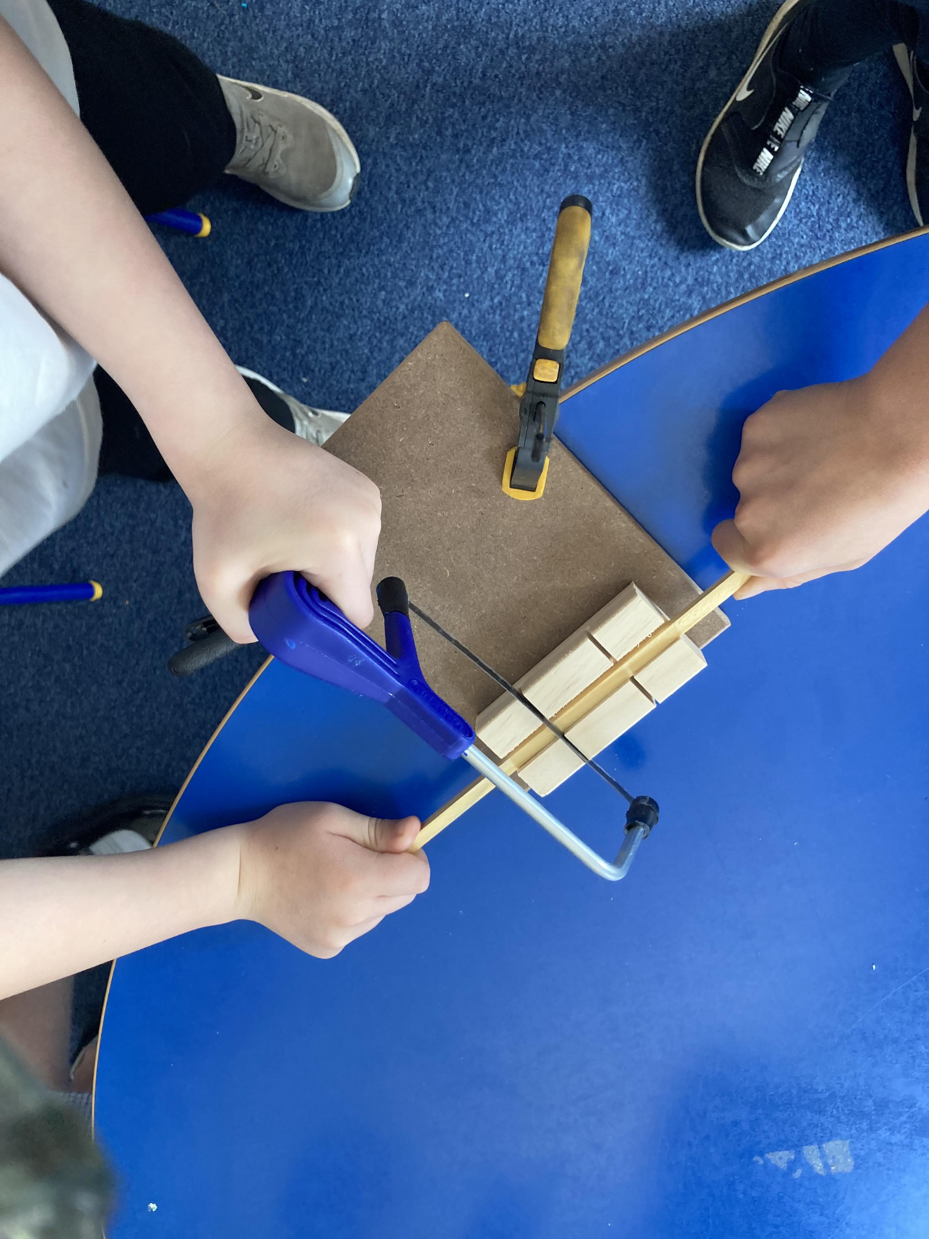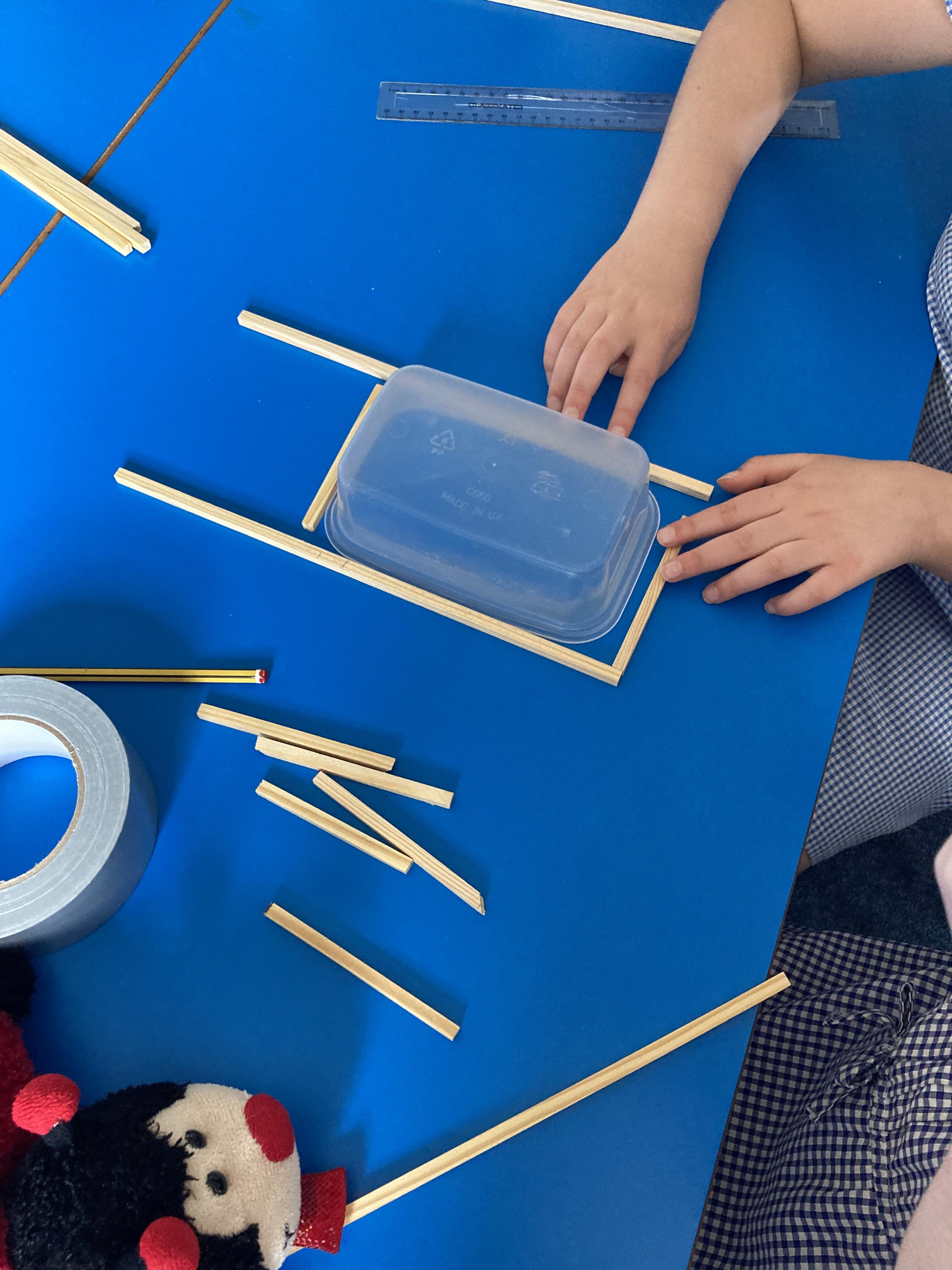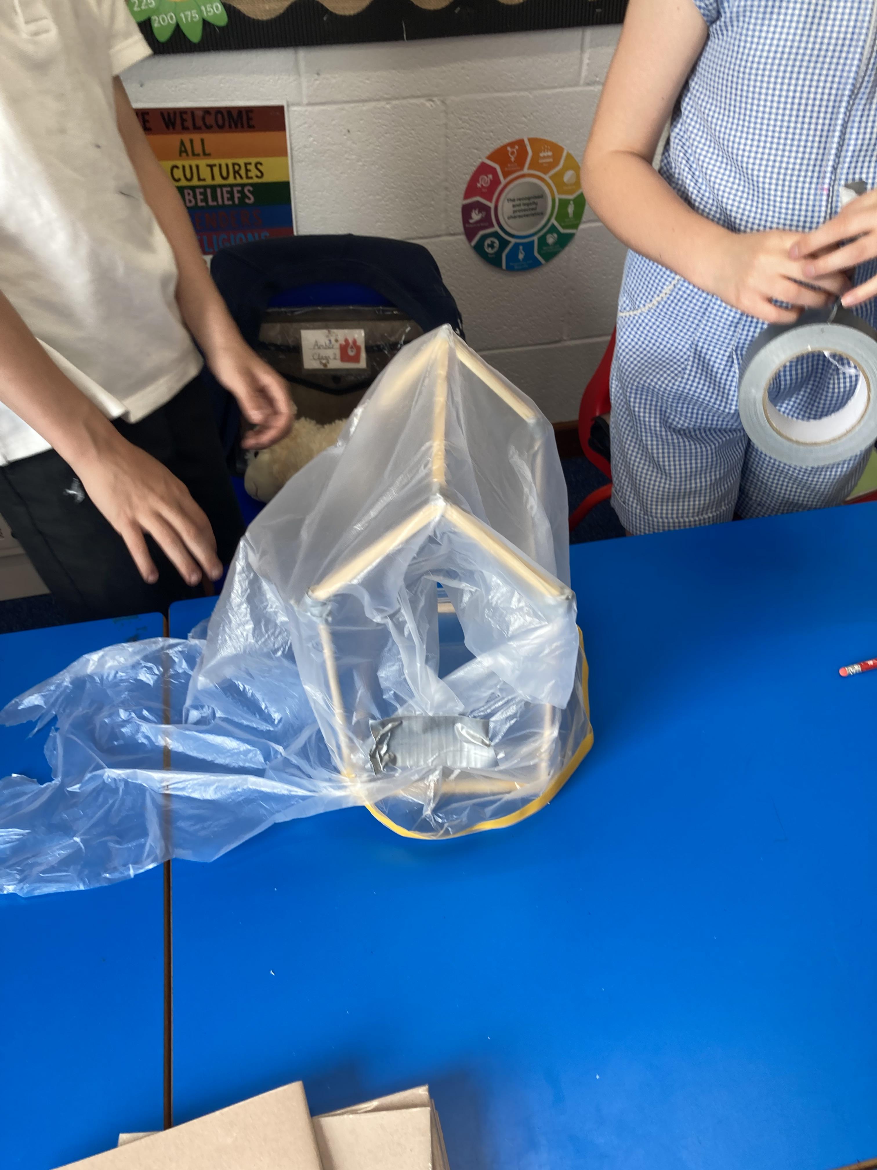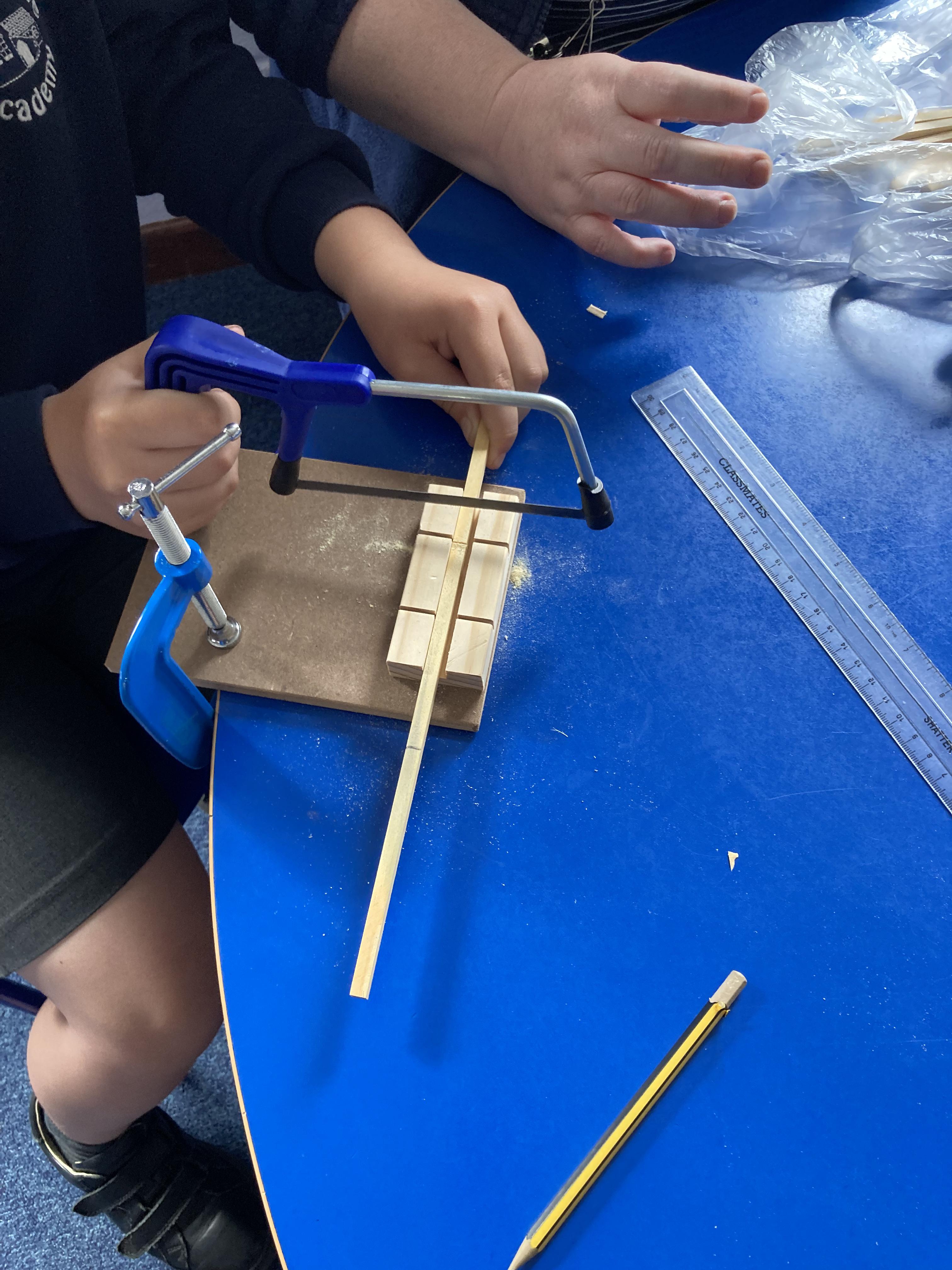 Using their newly acquired skills, Class 2 worked in small groups to build their own greenhouse. The requirements were to be a wooden frame, have a translucent cover, be able to fit a specific size tub to grow cress and use different joints when building.