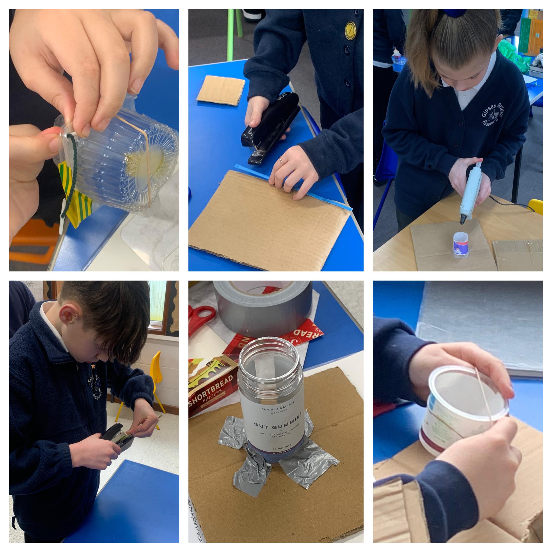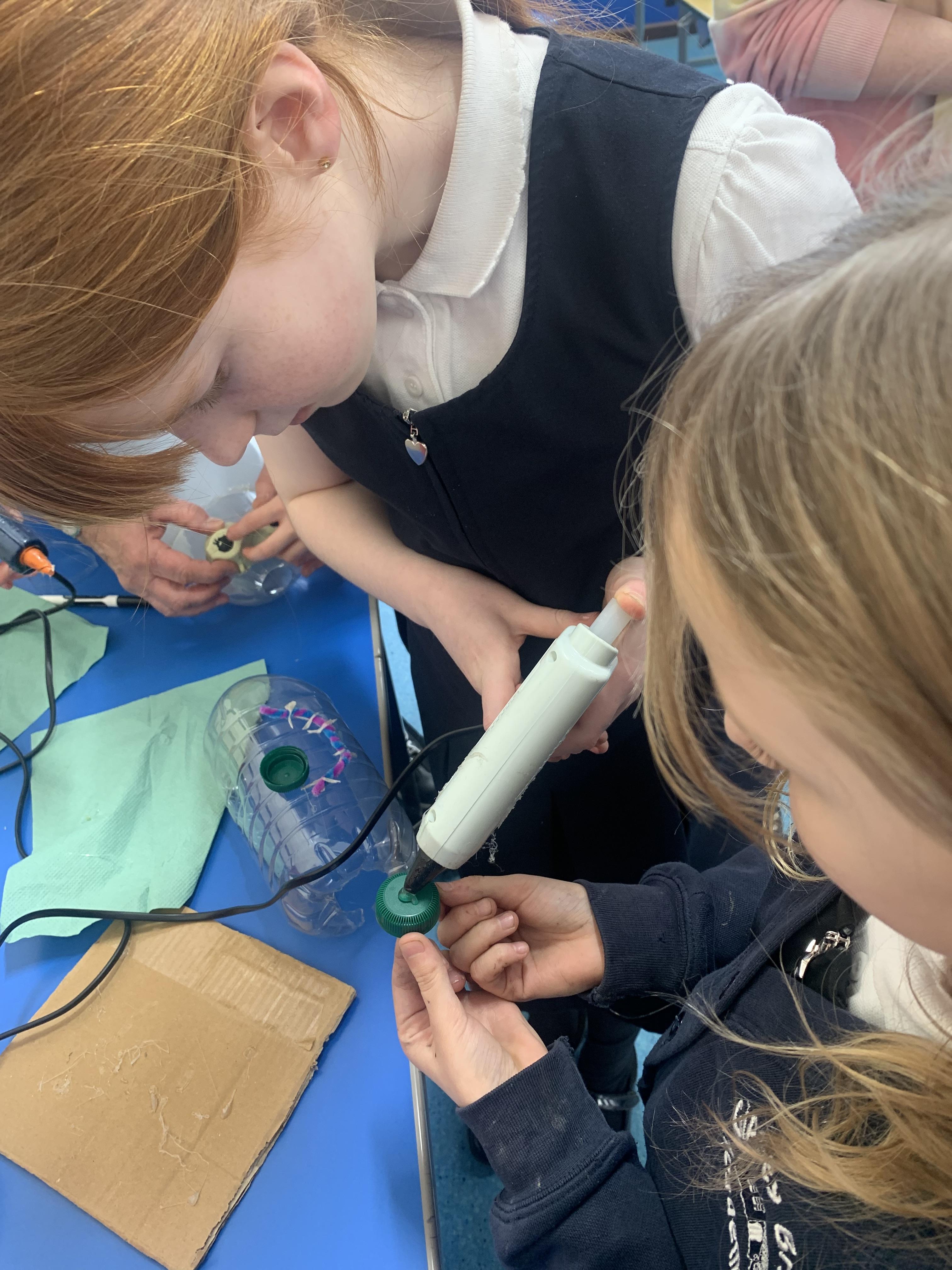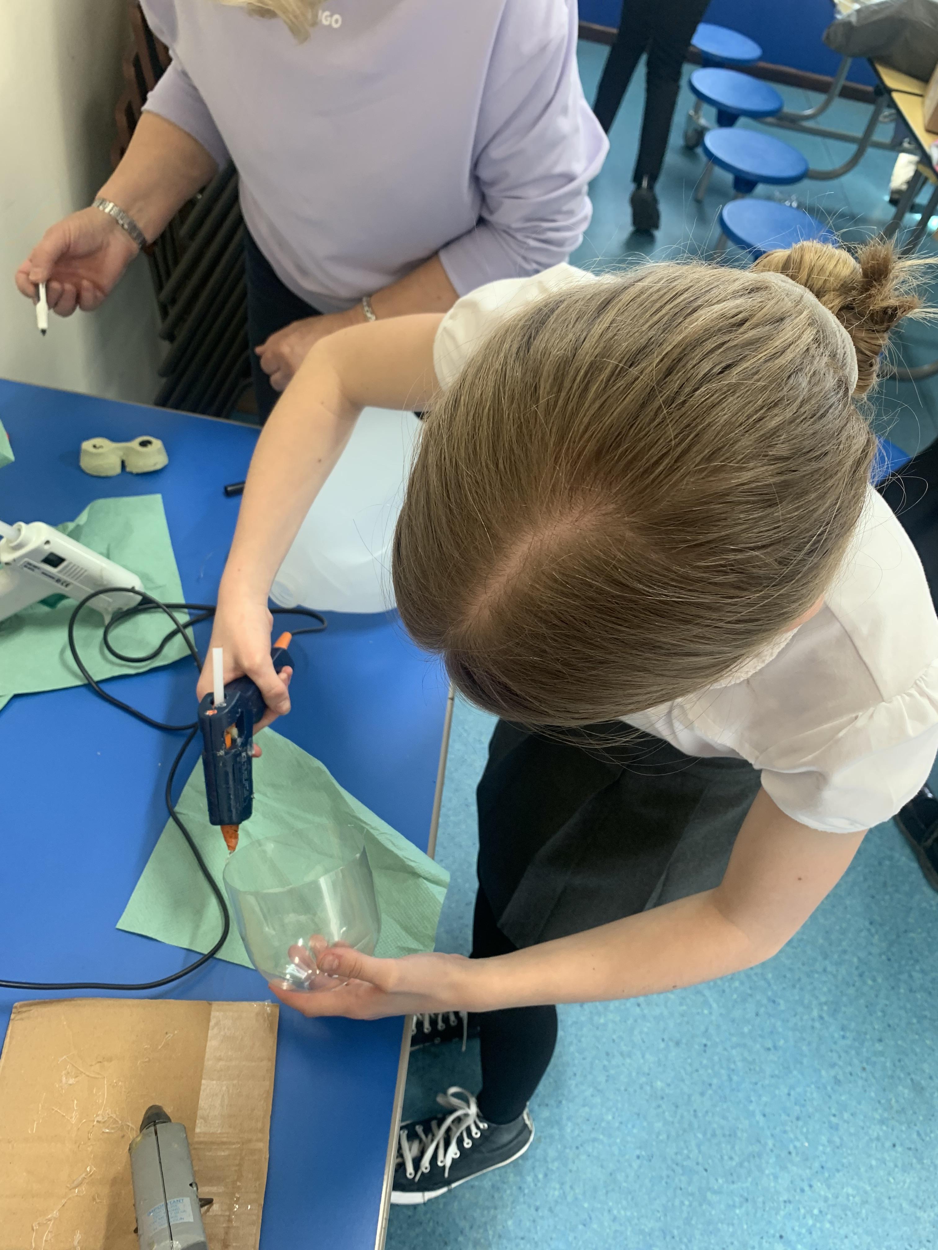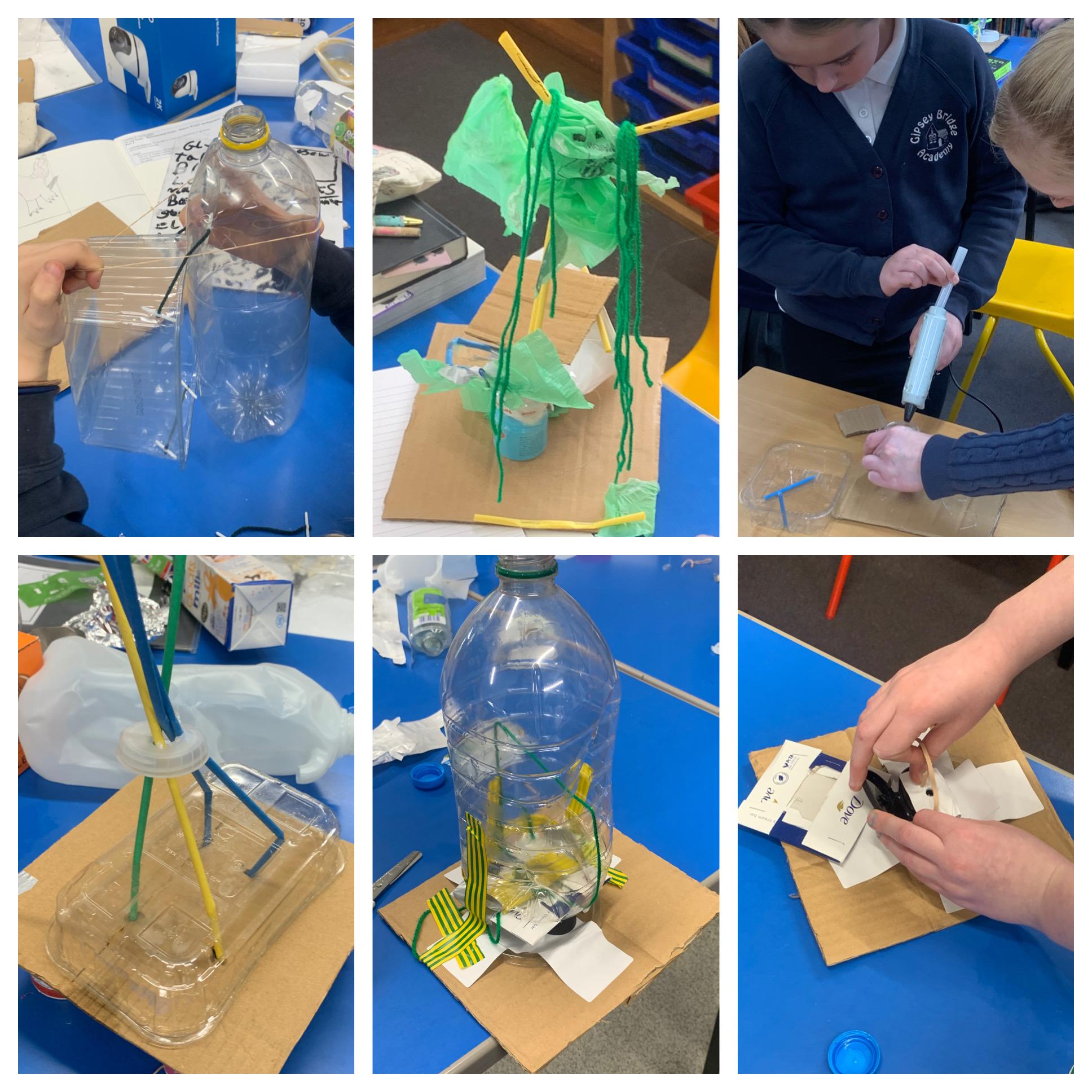 In Art and Design, we have been looking at the various recycled items that were brought in and investigating the best ways to join them. We looked at different tapes and glues, as well as other fastenings such as staples and treasury tags, before identifying which materials were best suited to which joining methods.
