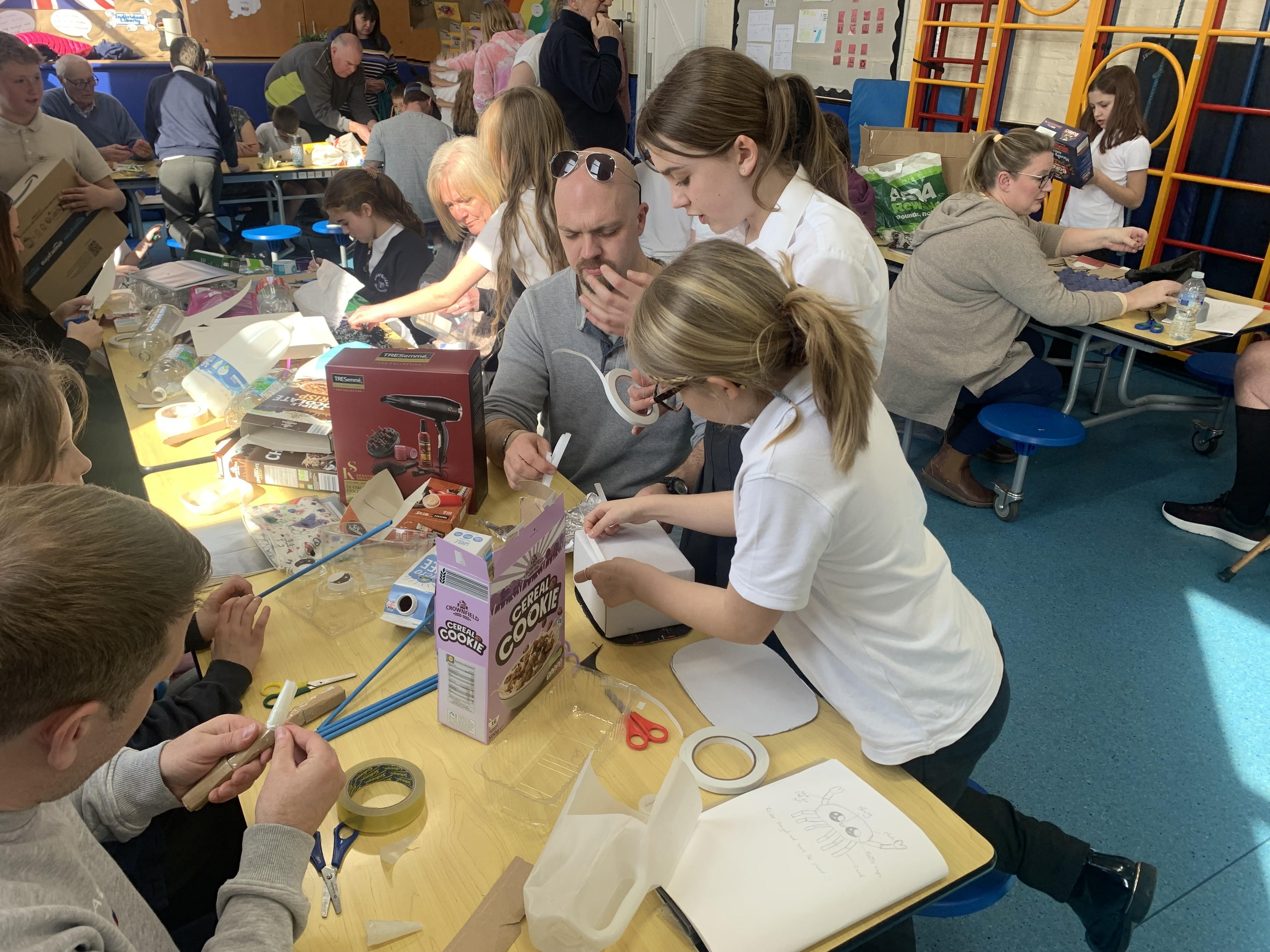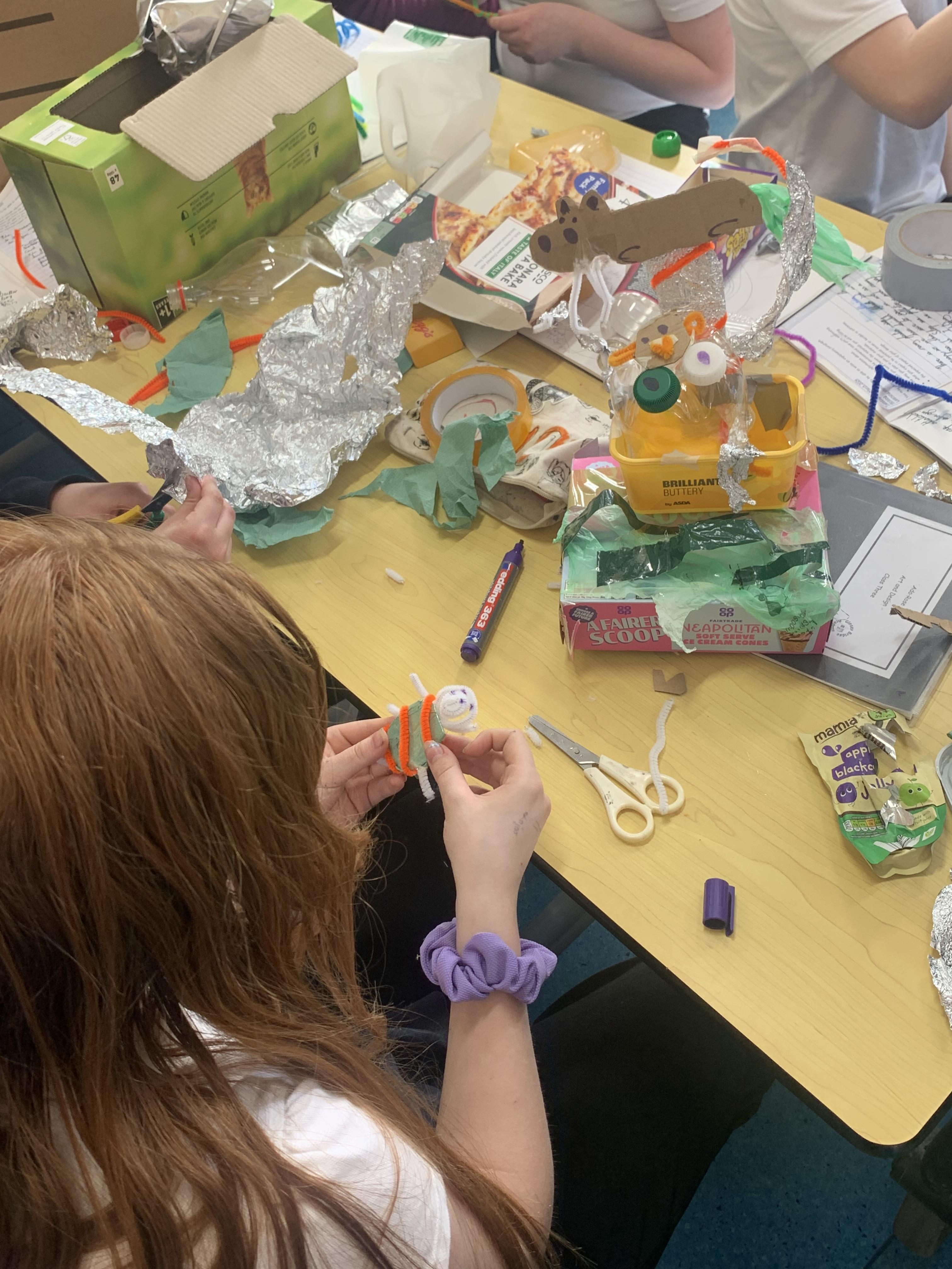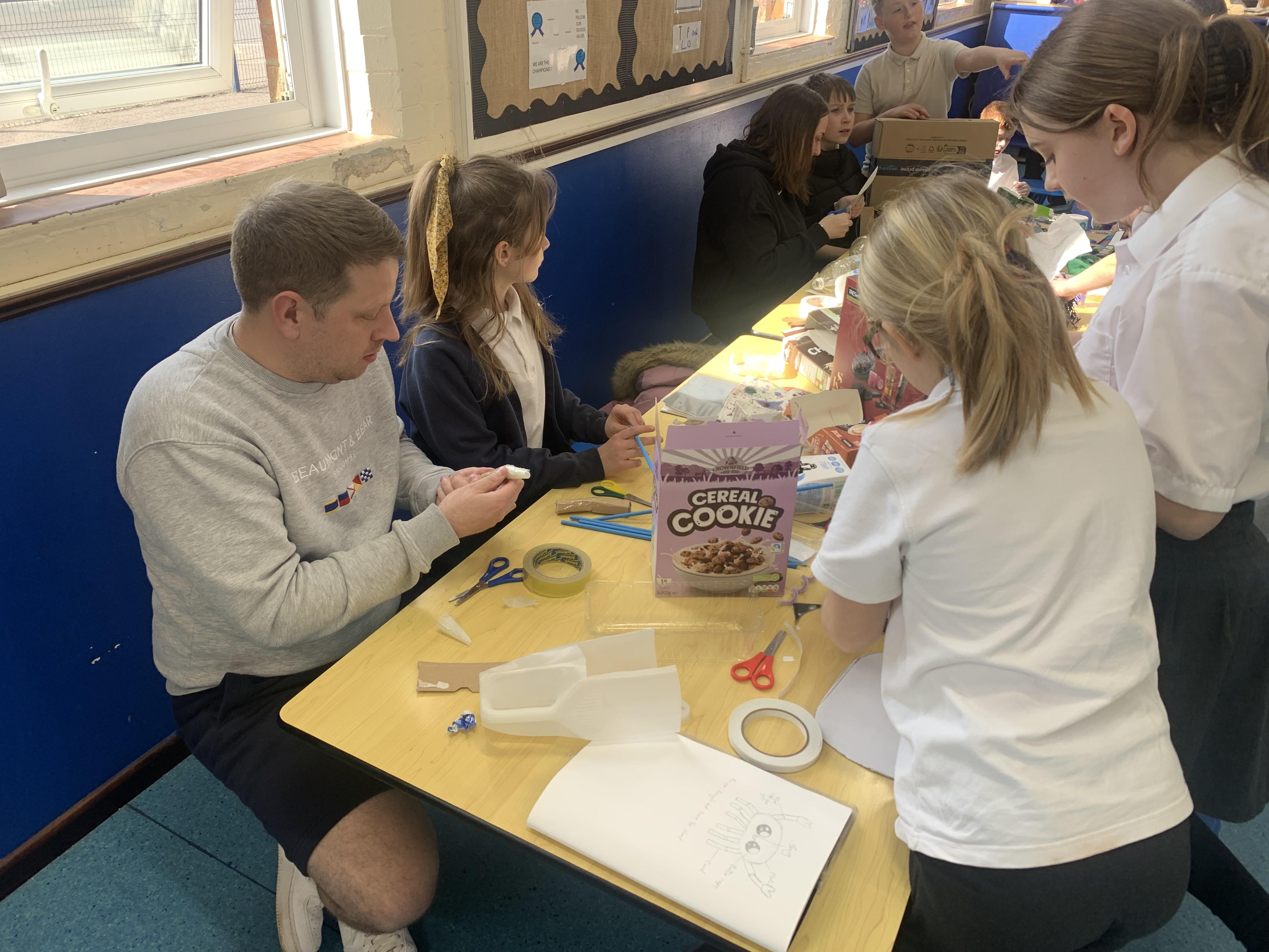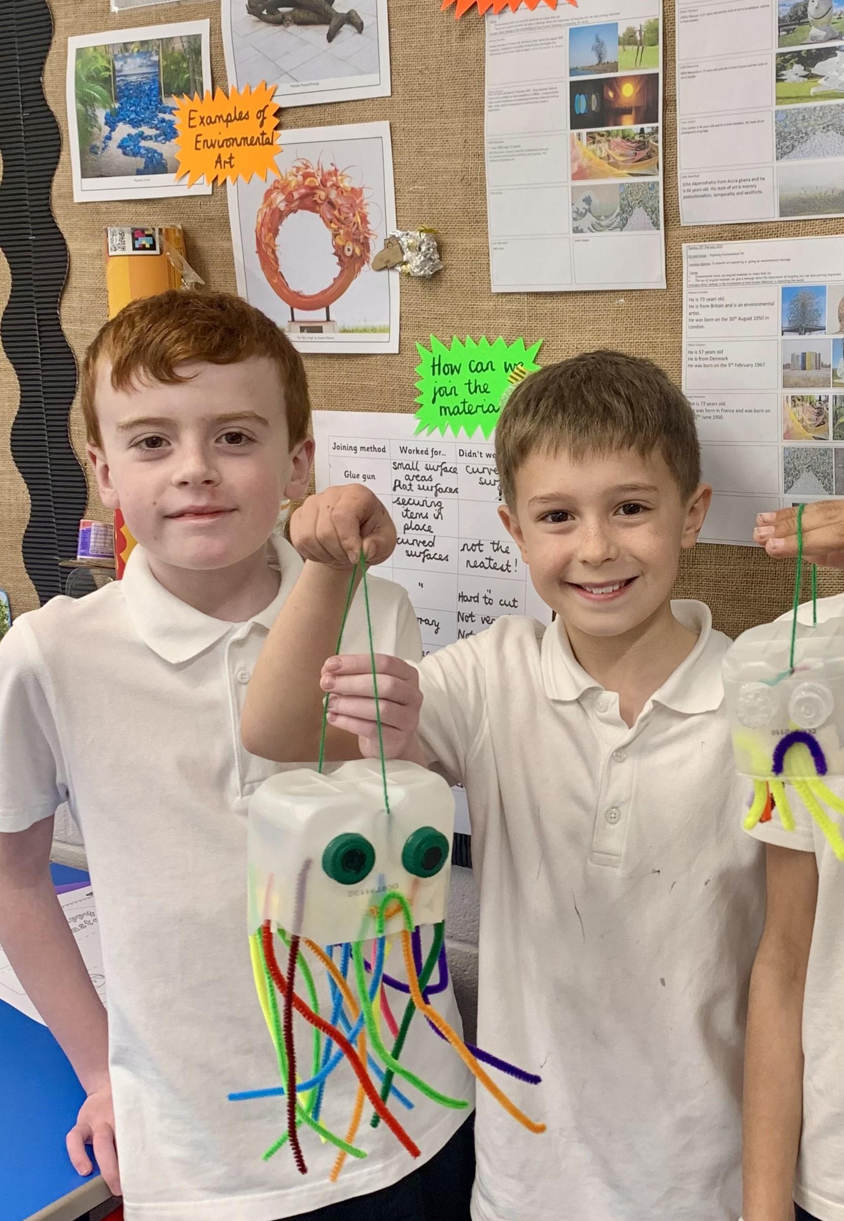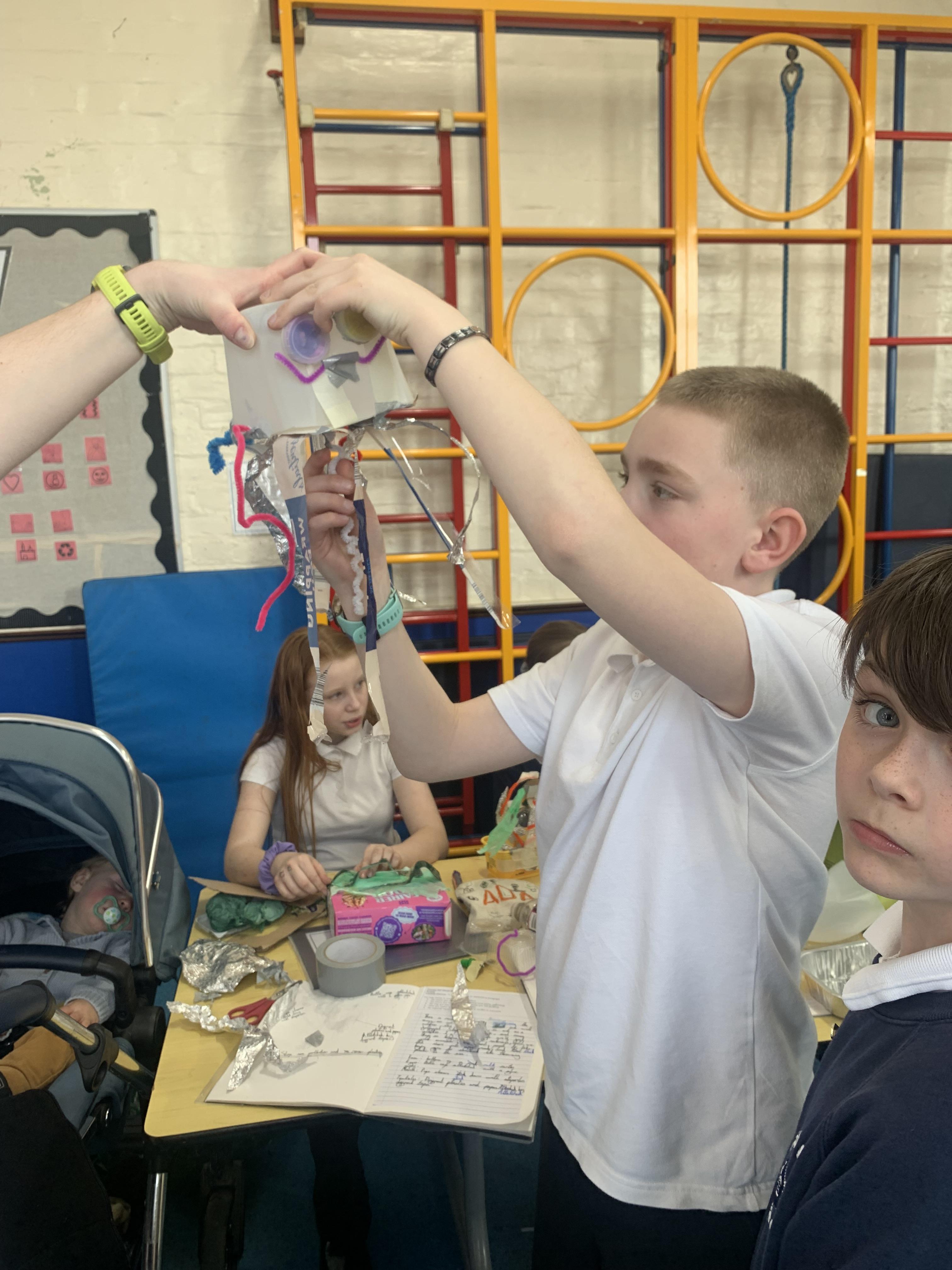 In Art and Design, we have been looking at the various recycled items that were brought in and investigating the best ways to join them. We looked at different tapes and glues, as well as other fastenings such as staples and treasury tags, before identifying which materials were best suited to which joining methods.