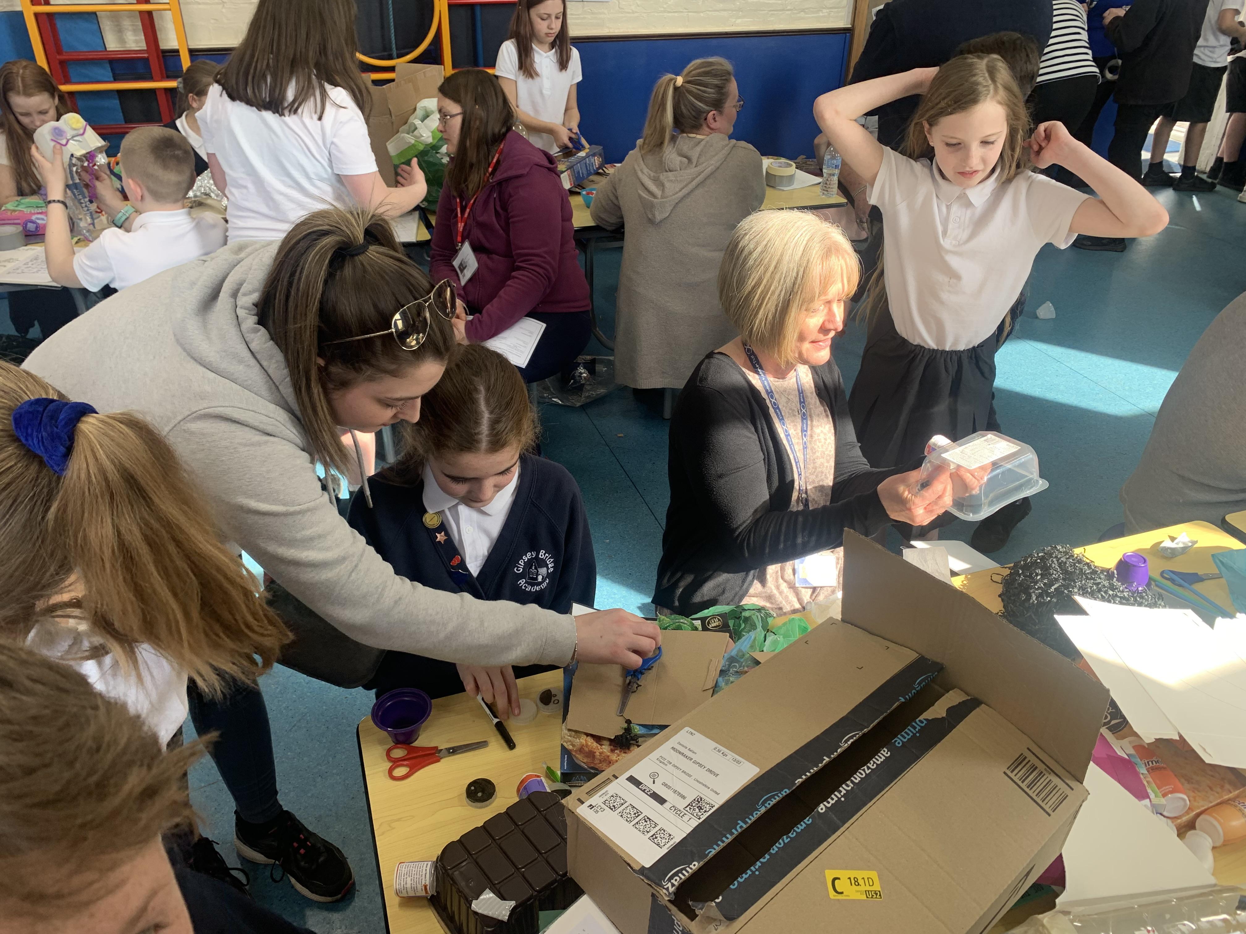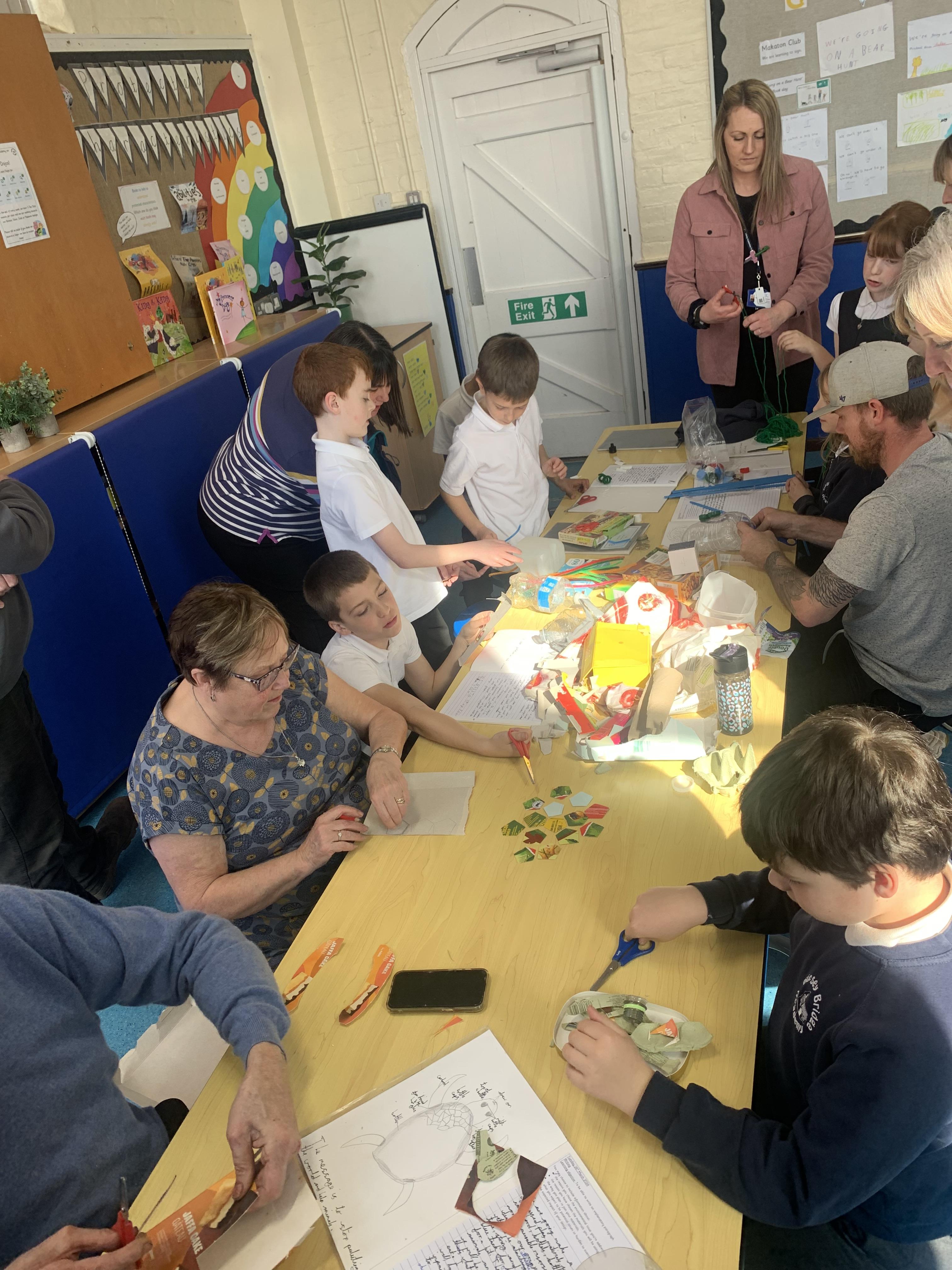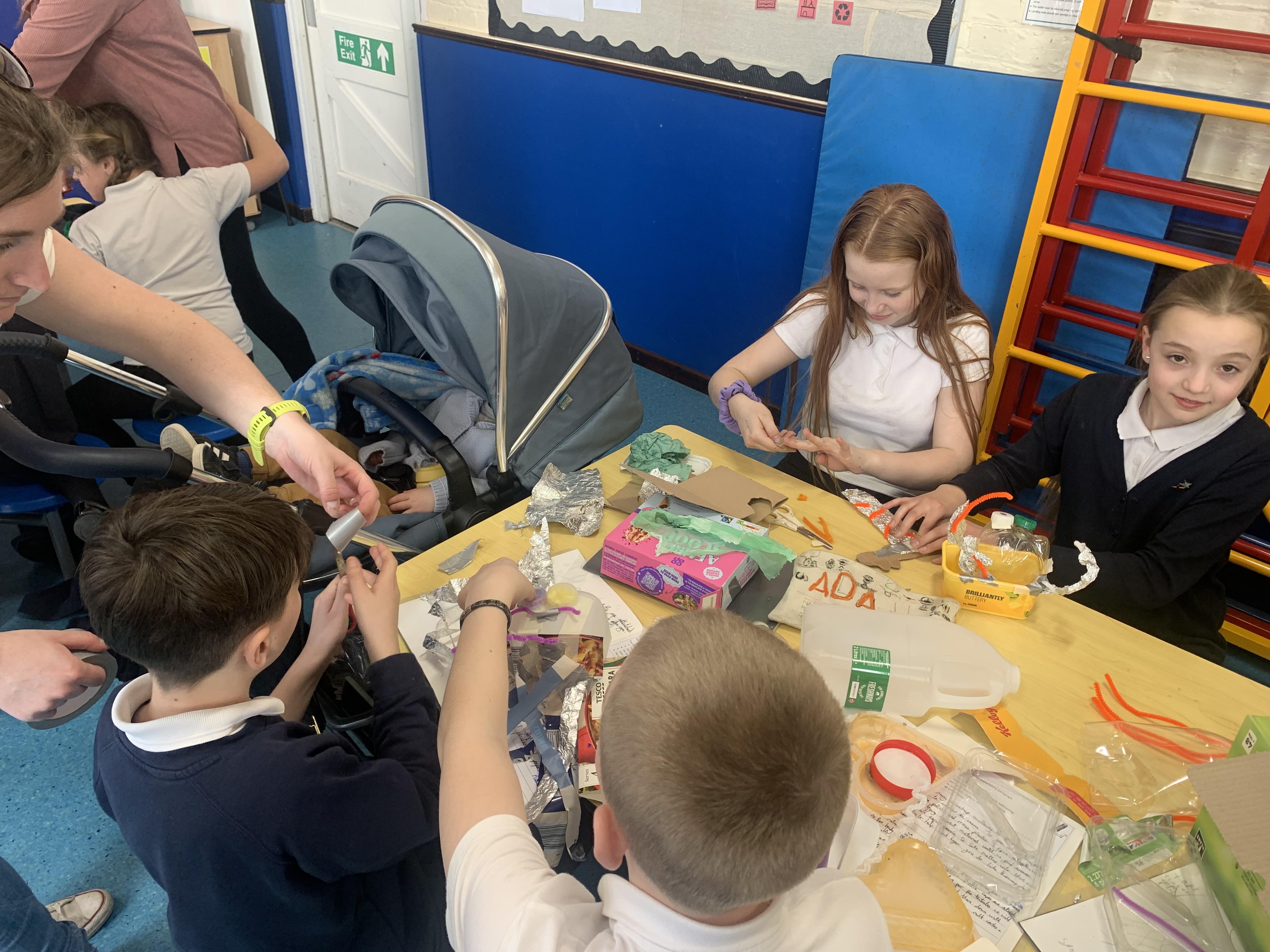 We had a great time creating our environmental art work with our adults! Thank you to all of the parents and carers for coming to help us and for saving up so much recycling! Look how amazing our corridor looks now!