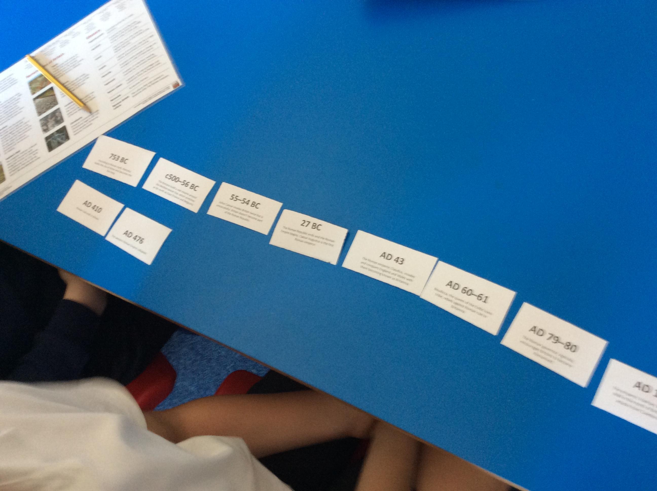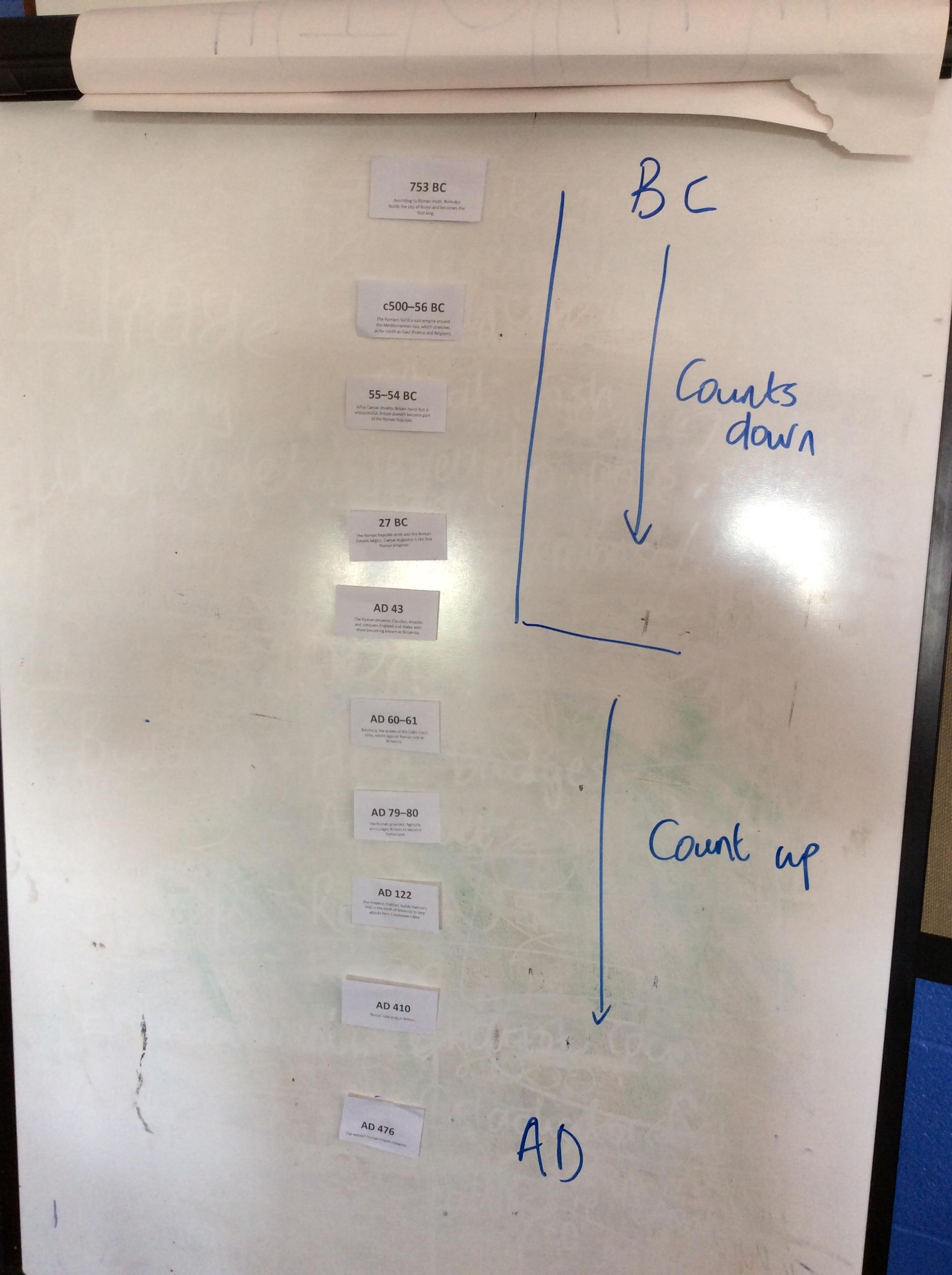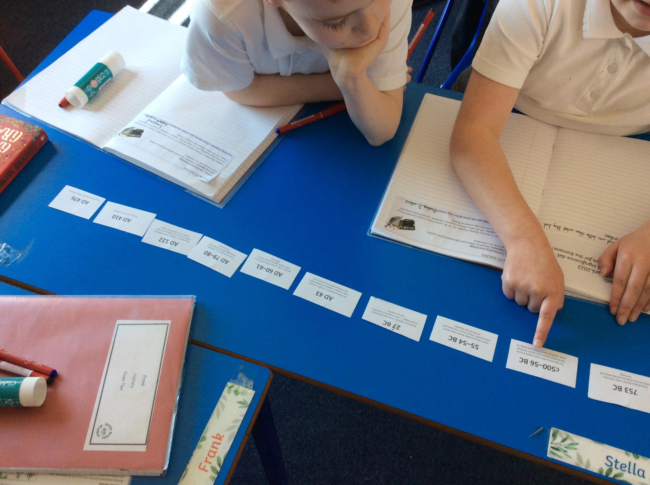 Class 2 began their new History project with a virtual museum in school. They first began by looking at how the Romans fitted in to the World's timeline. Using dated facts they were able to work out the order of events crossing from BC to AD.