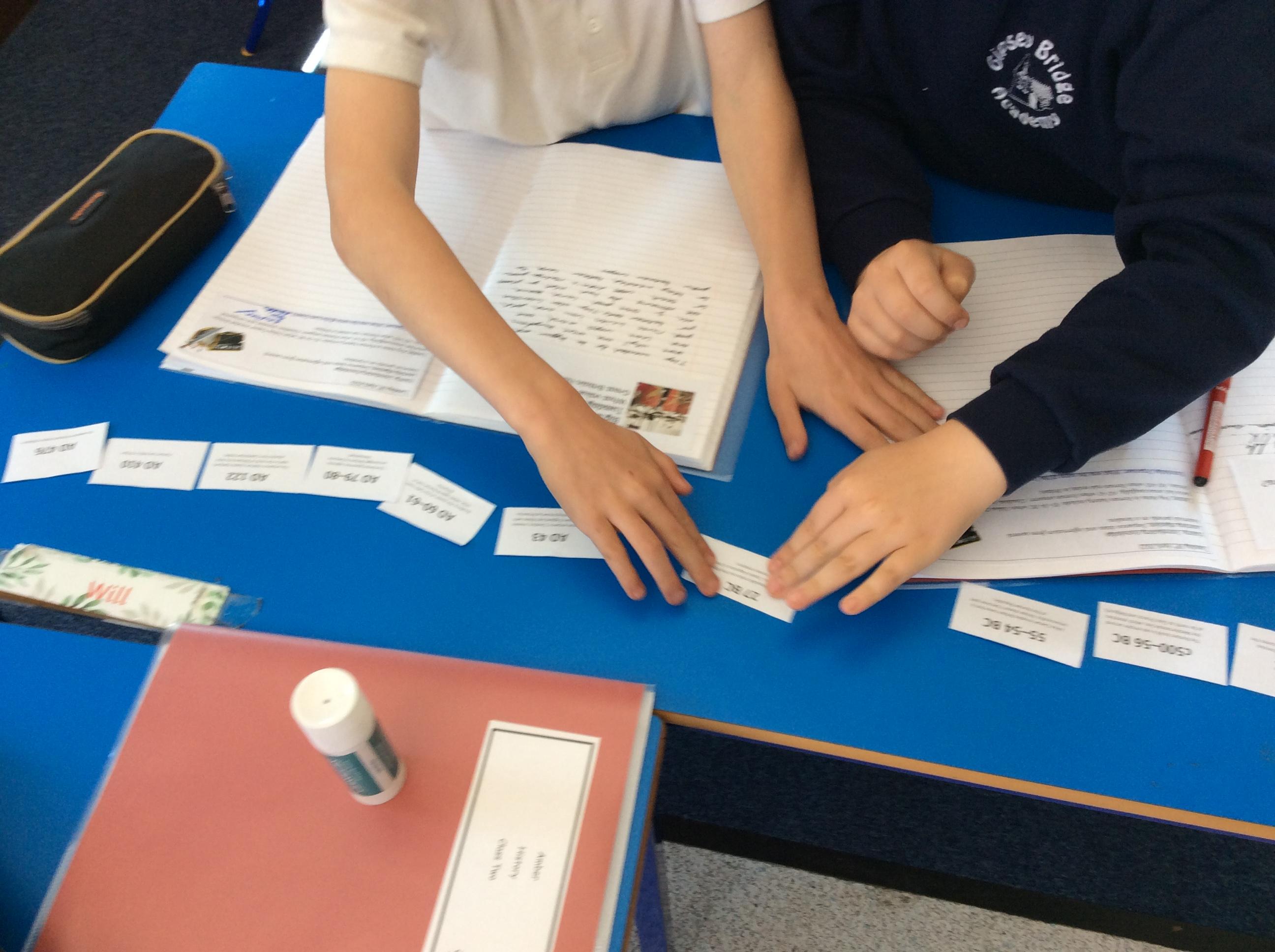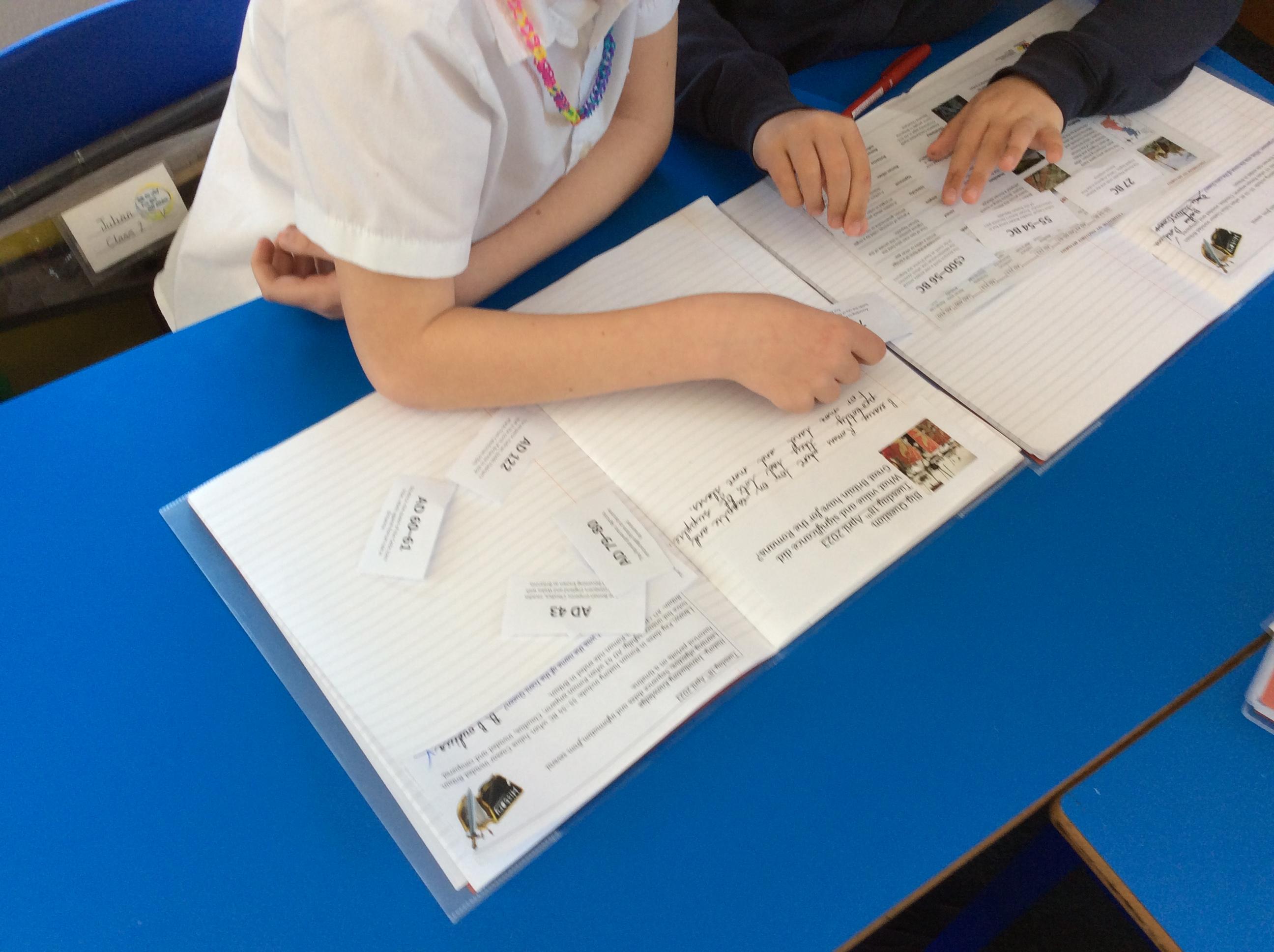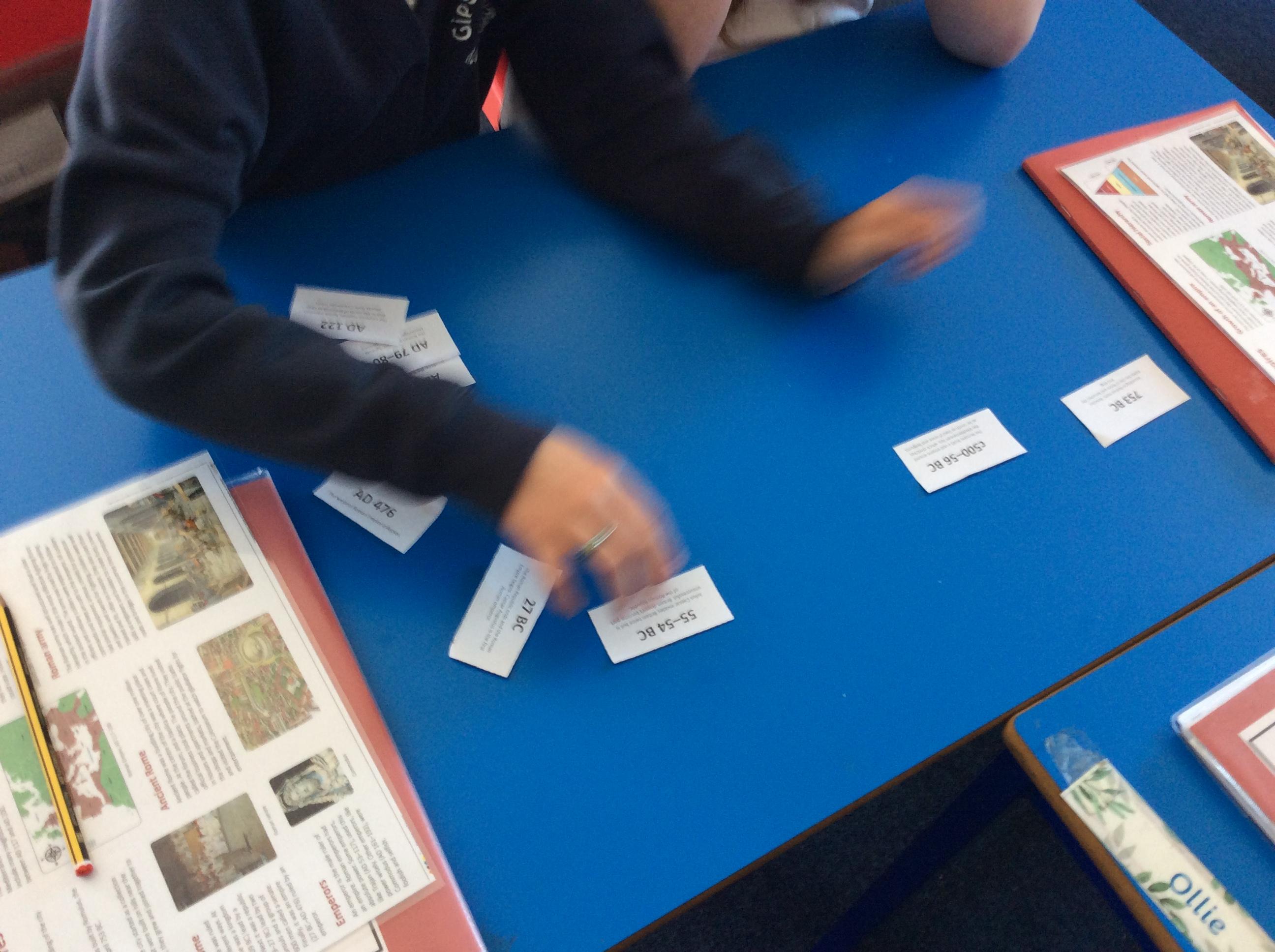 Class 2 began their new History project with a virtual museum in school. They first began by looking at how the Romans fitted in to the World's timeline. Using dated facts they were able to work out the order of events crossing from BC to AD.