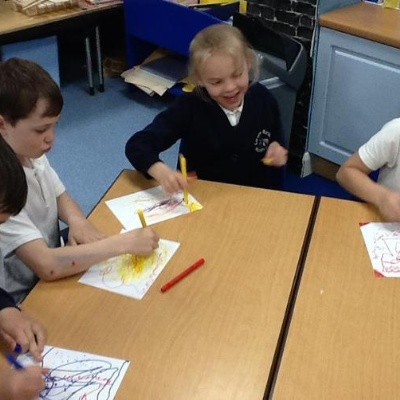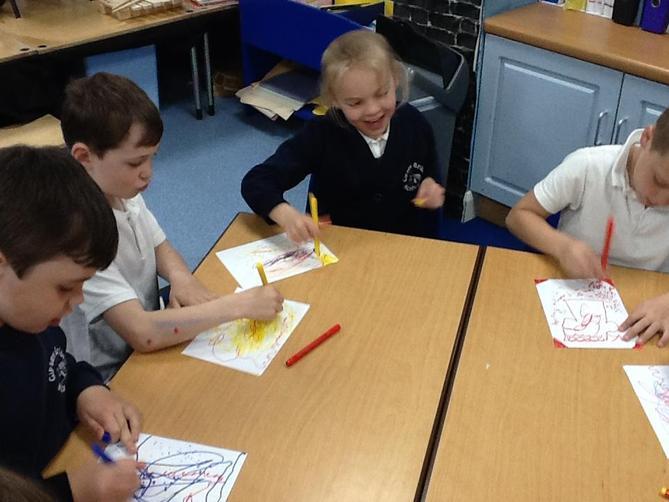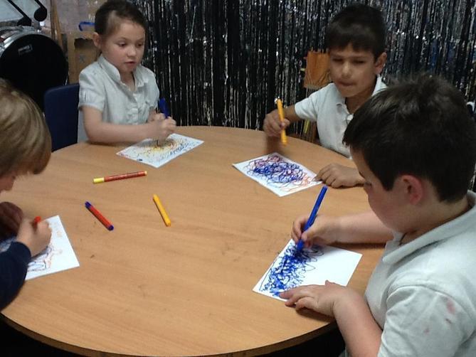 Class 1 have also been listening to different types of music, some fast, some slow and thinking about how the different types of music made us feel. They then spent time experimenting with drawing how it made us feel.