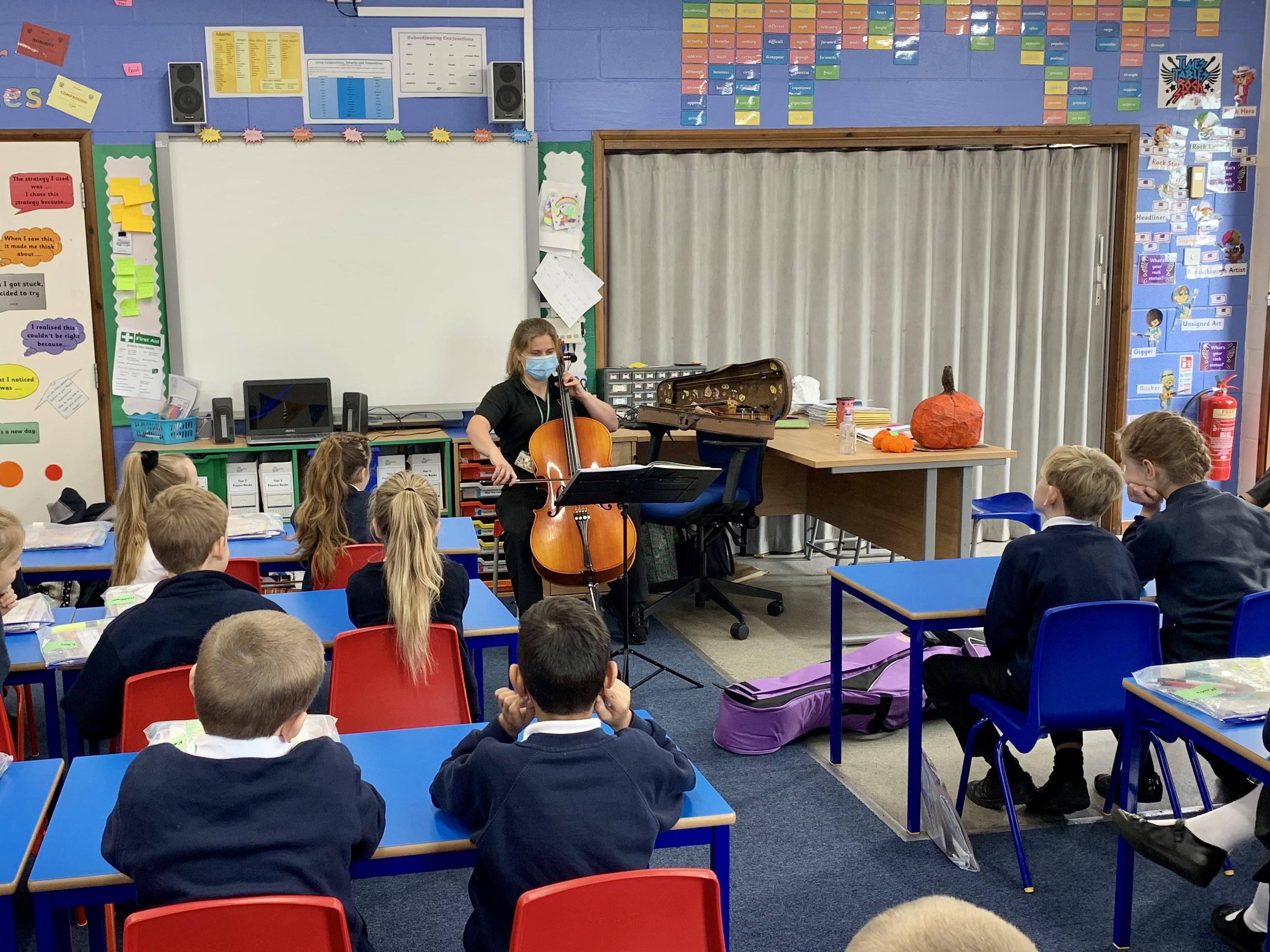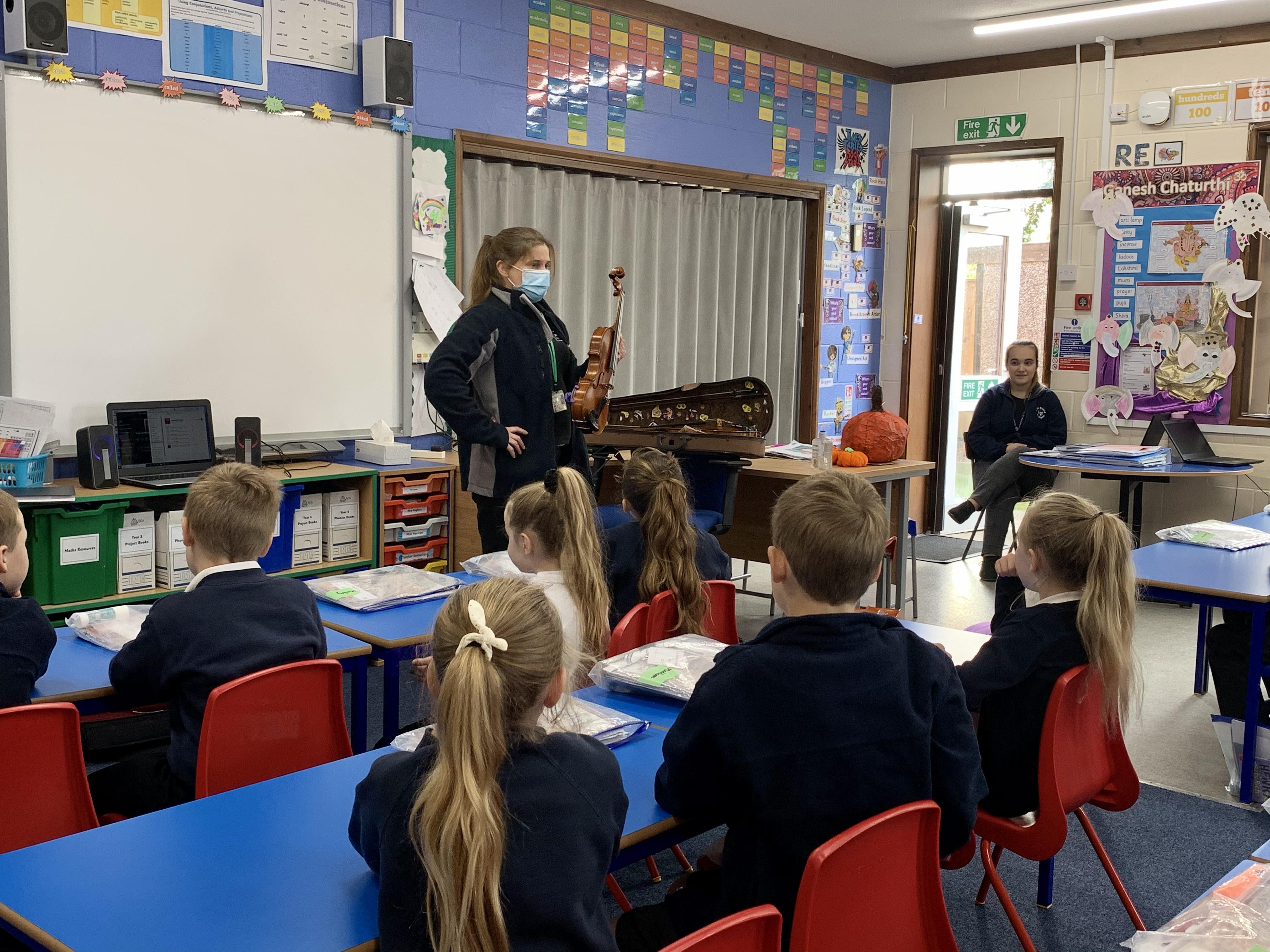 Debbie from Lincs Music Service visited Class 2 to demonstrate her string instruments. We listened to her playing the cello, viola and violin and had a chance to use our newly-learnt musical terminology to ask questions and make comparisons between the sounds the instruments made. We had a wonderful morning and enjoyed listening to some fantastic live music; it was the first time some of the children had heard these instruments in ‘real life’.