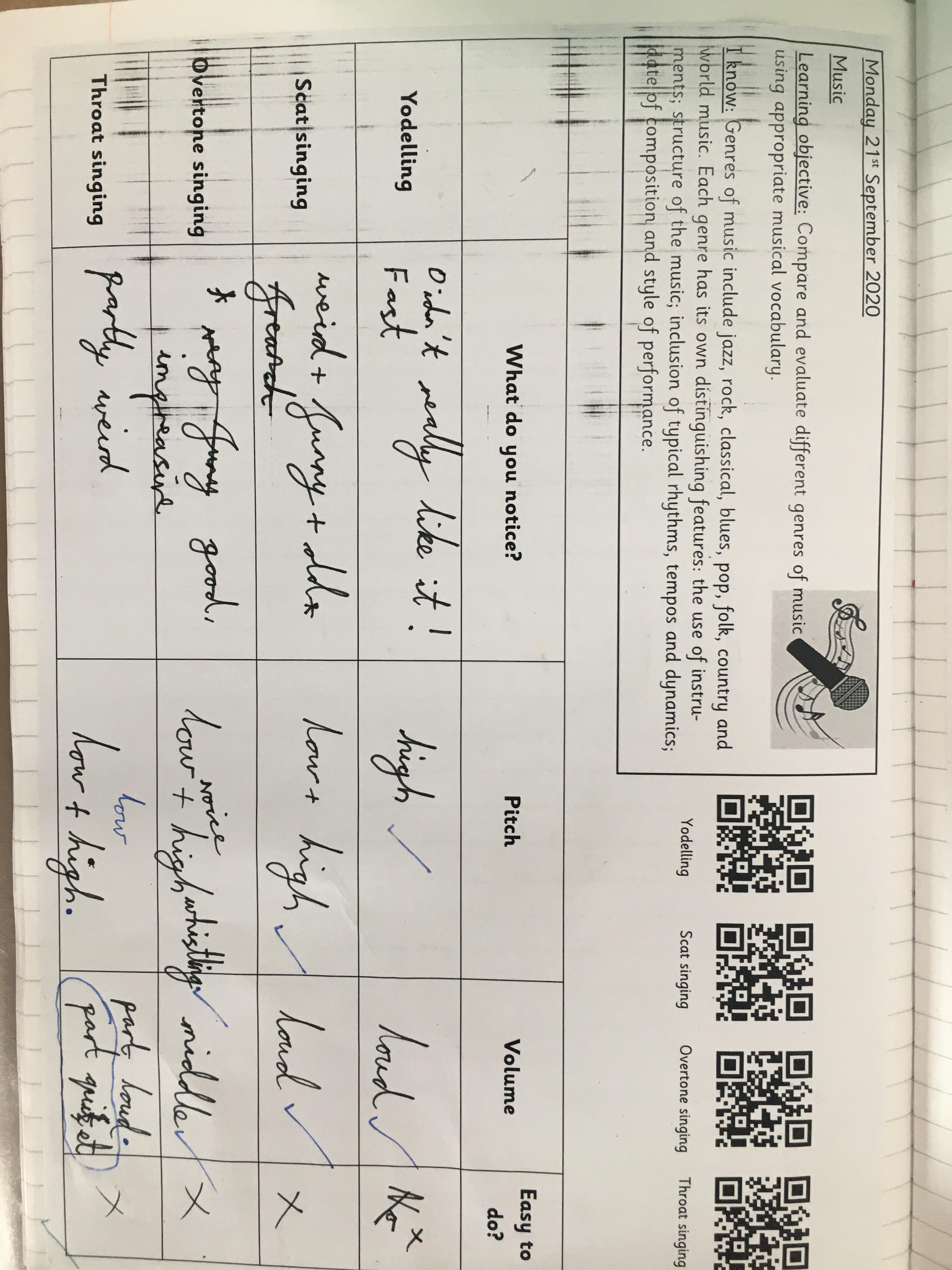 Impressive listening on display in Class 2 as the children listened to compared different genres of music, making sure they used the correct vocabulary too.