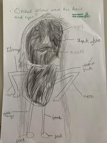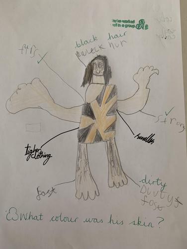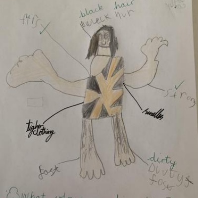 Class 2 worked in groups to use their knowledge of the discovery of 'Cheddar Man', as well as any attributes they thought Stone Age people would need to have, to build up a description of the main character for our historical narratives.