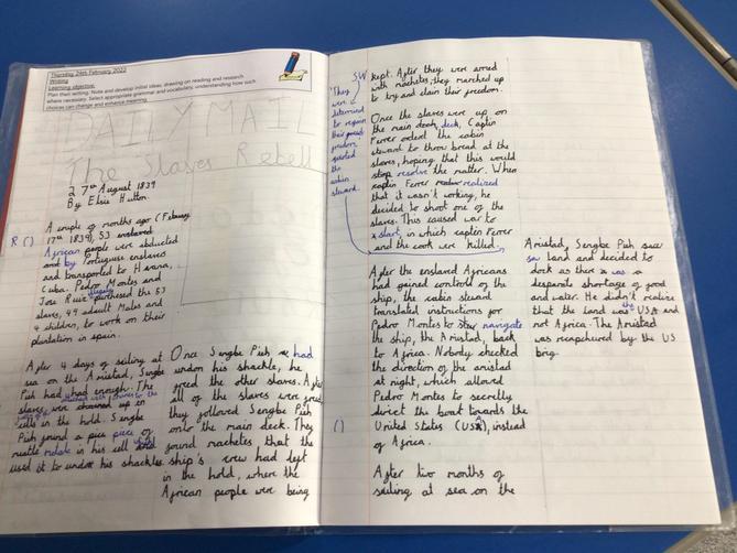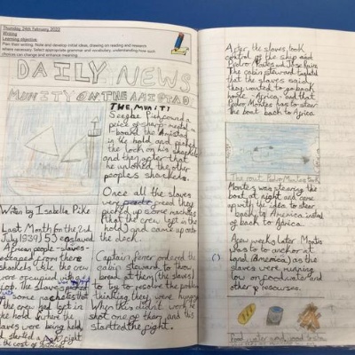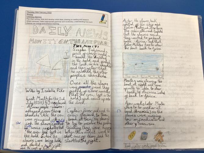 Class 3 have been creating newspaper reports about the Amistad Mutiny.