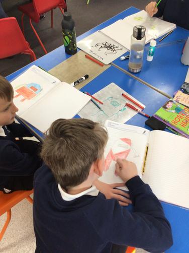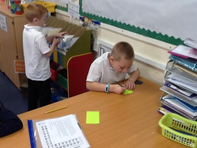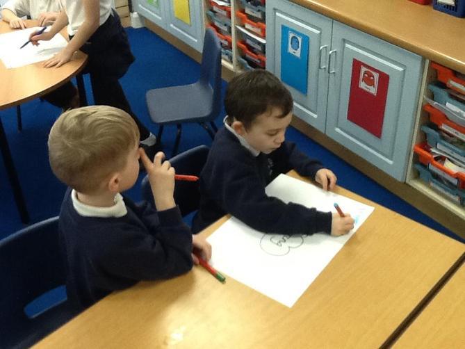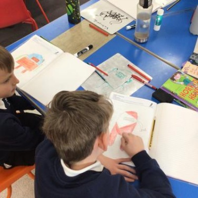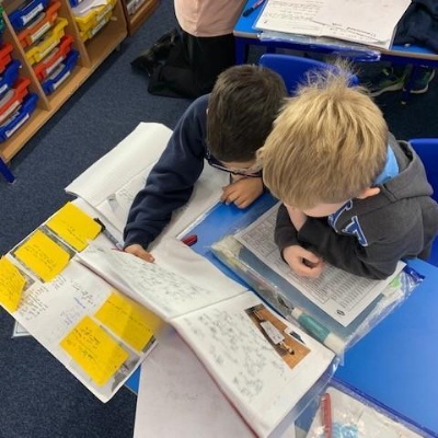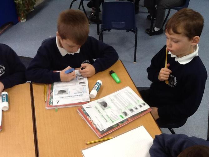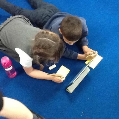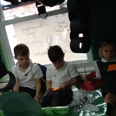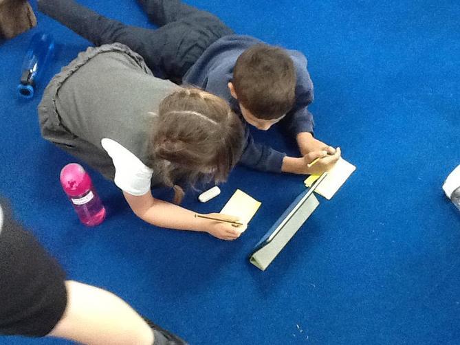Class 1 planning and drafting their mini-beast recounts.
