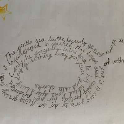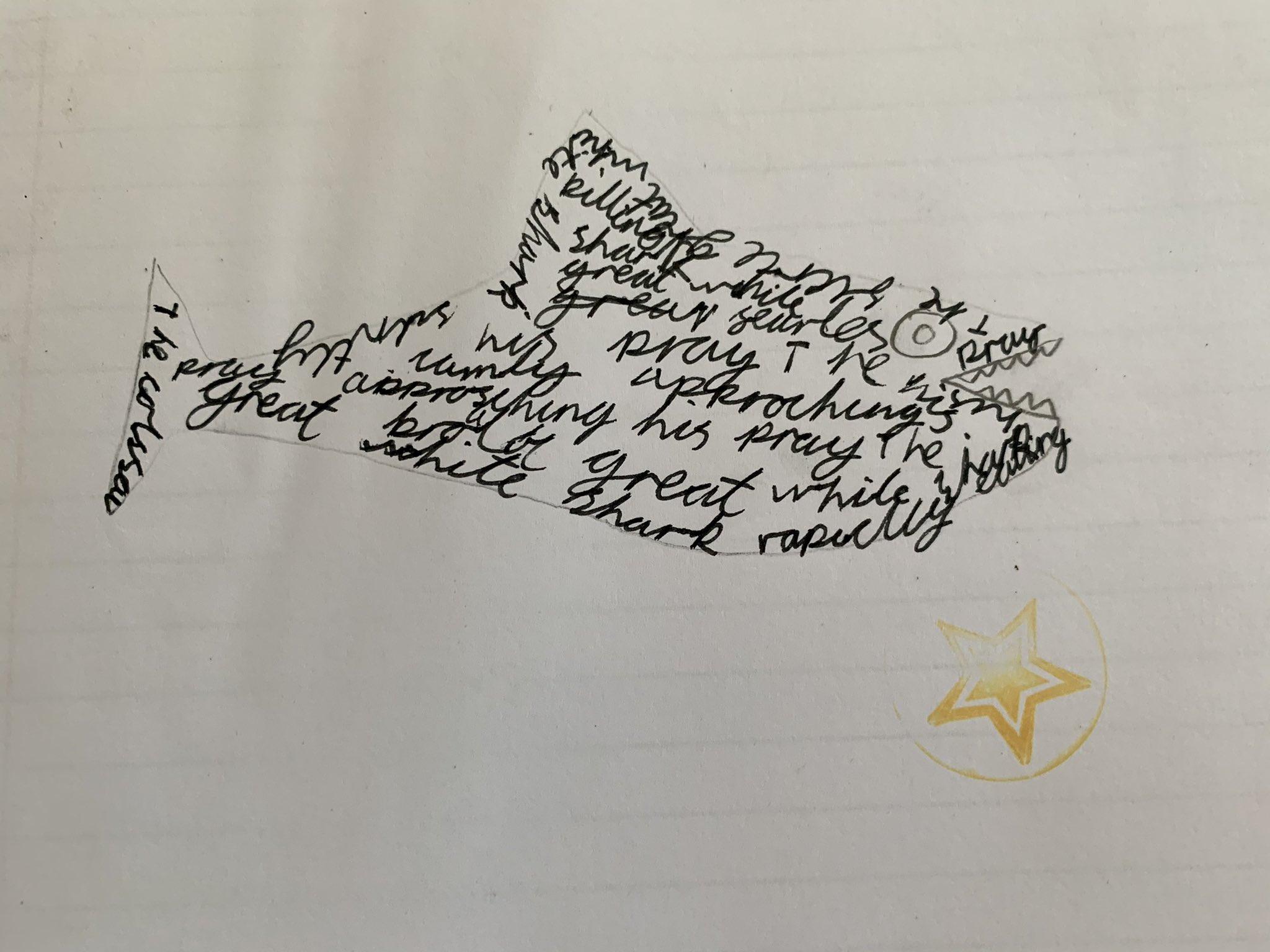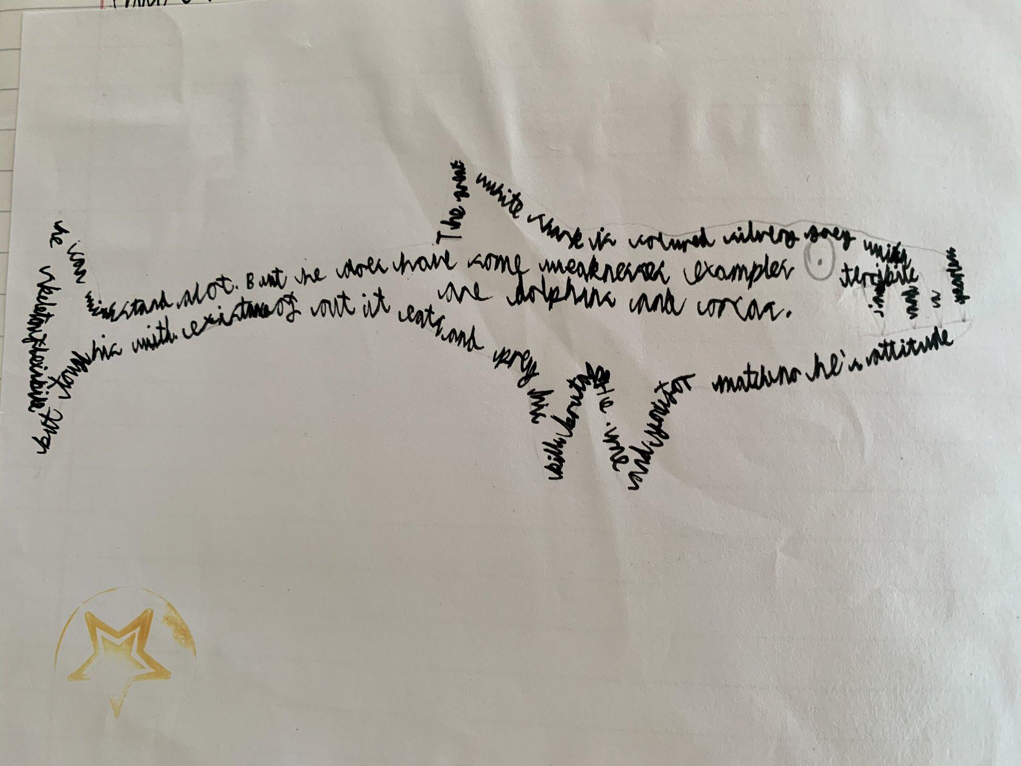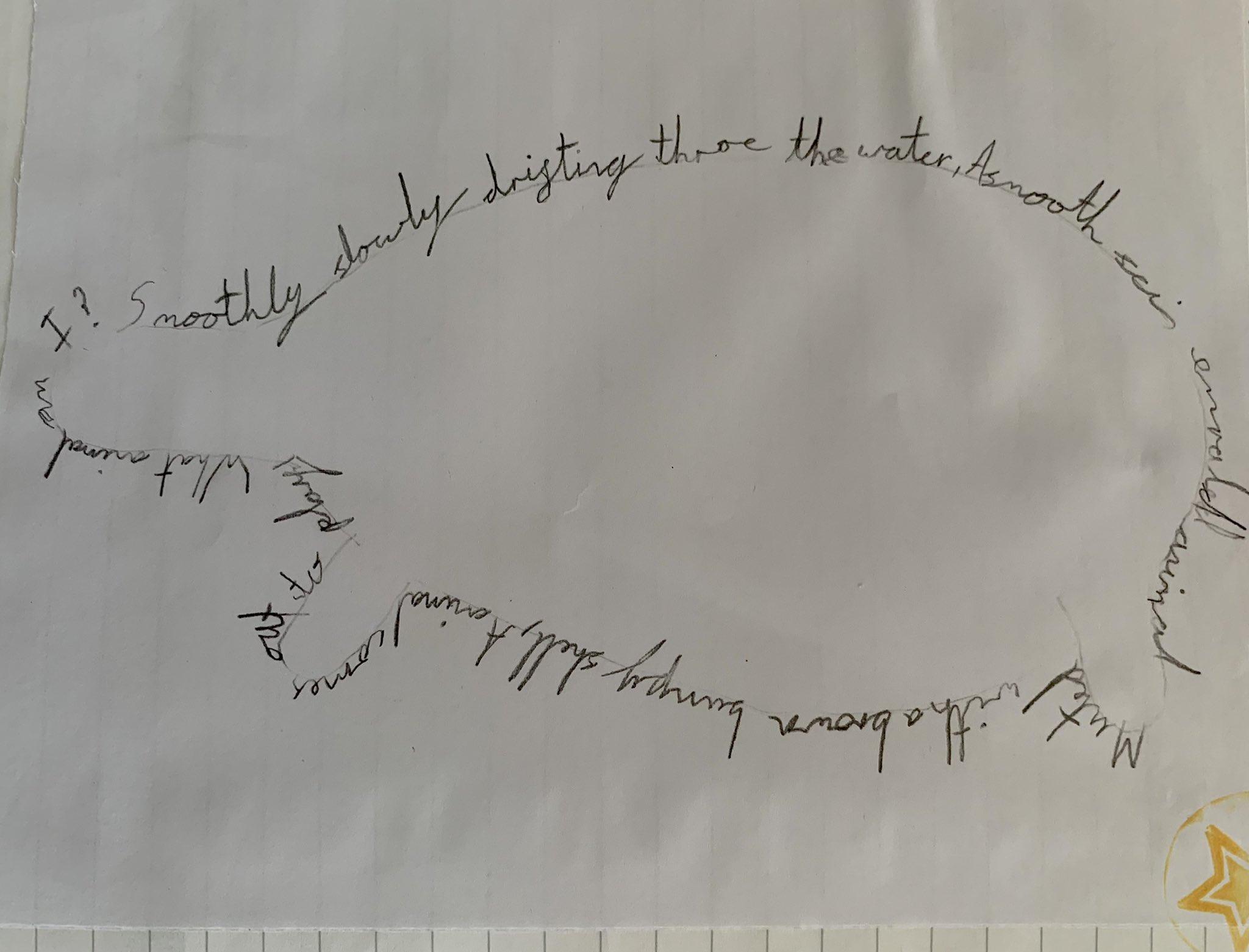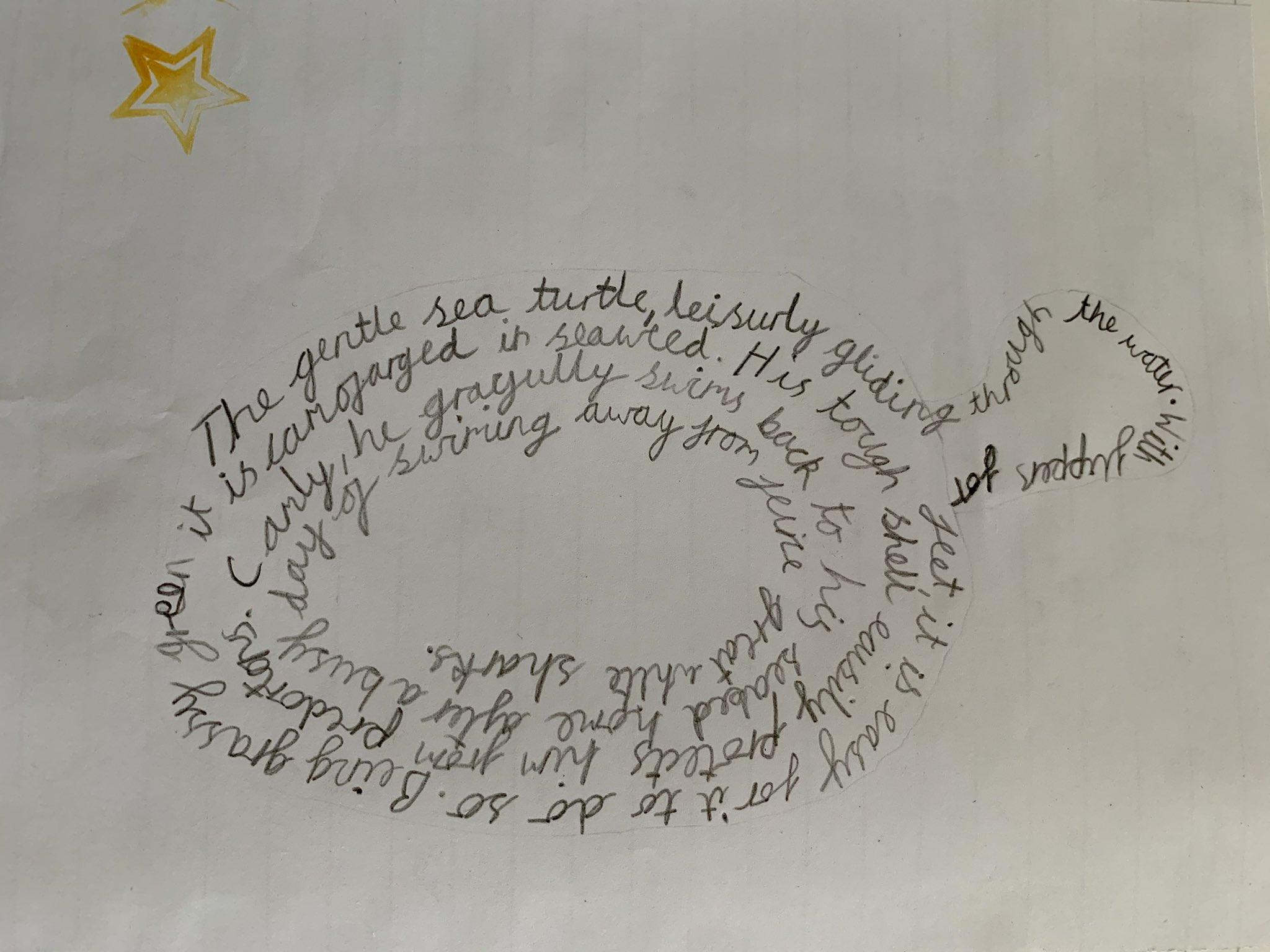 We made some fantastic calligrams in Class 2 today too, all based on the sea creatures we've been classifying in science in our #BlueAbyss project!