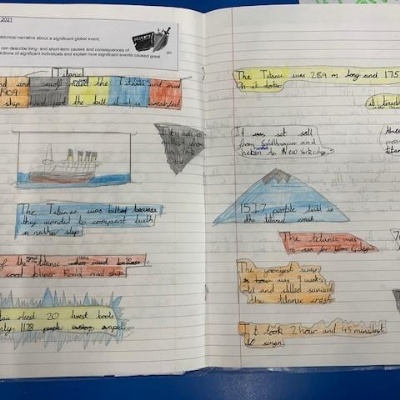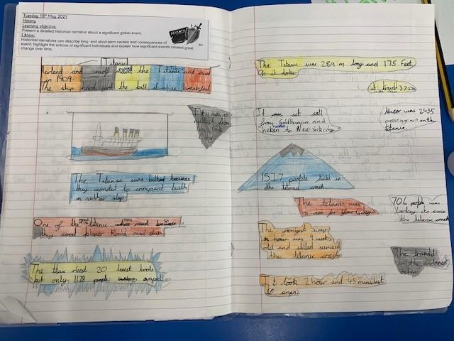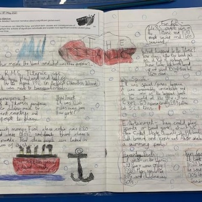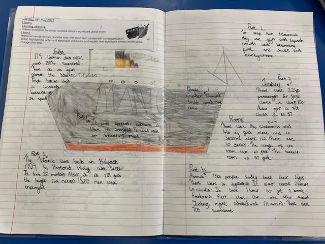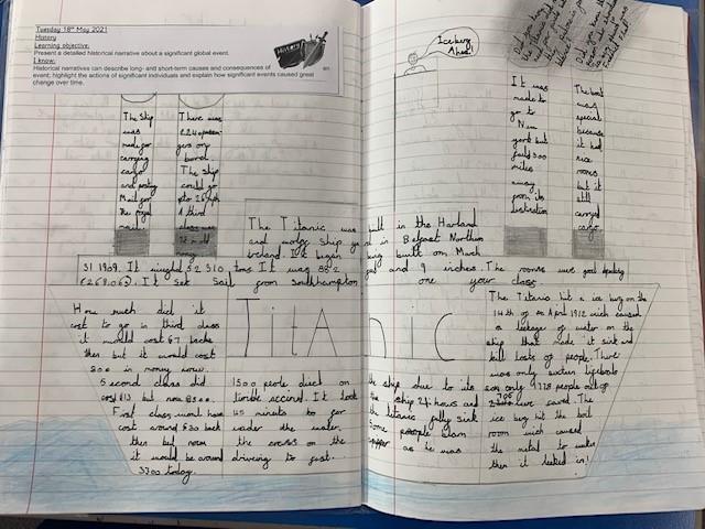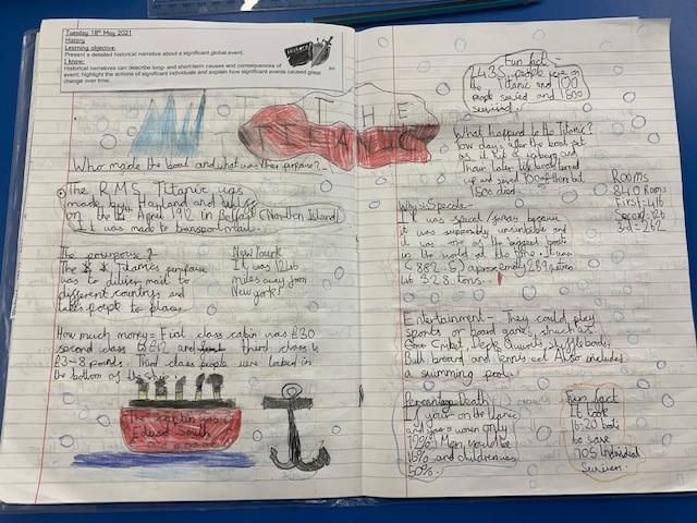 Class 3 have been learning all about the Titanic. They researched about the ship itself, the journey and the disaster. The children created a piece of work about the various aspects of the Titanic and a report about the disaster, giving their opinions on whether the sinking could have been avoidable or not.