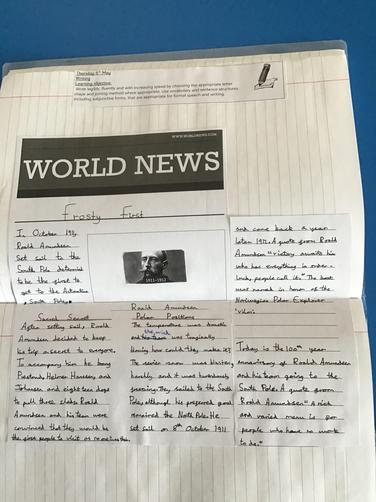 The third week of our project saw Class 3 children research explorers who had tried to reach the Antarctic or South Pole. Once they had chosen an explorer to research, they then had to write it up in a newspaper report.