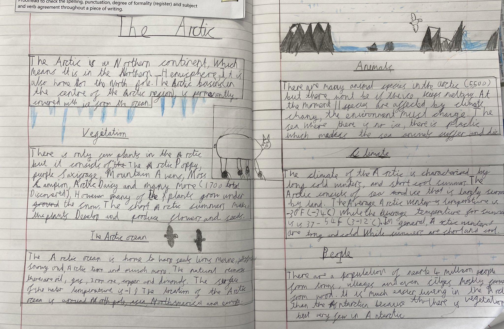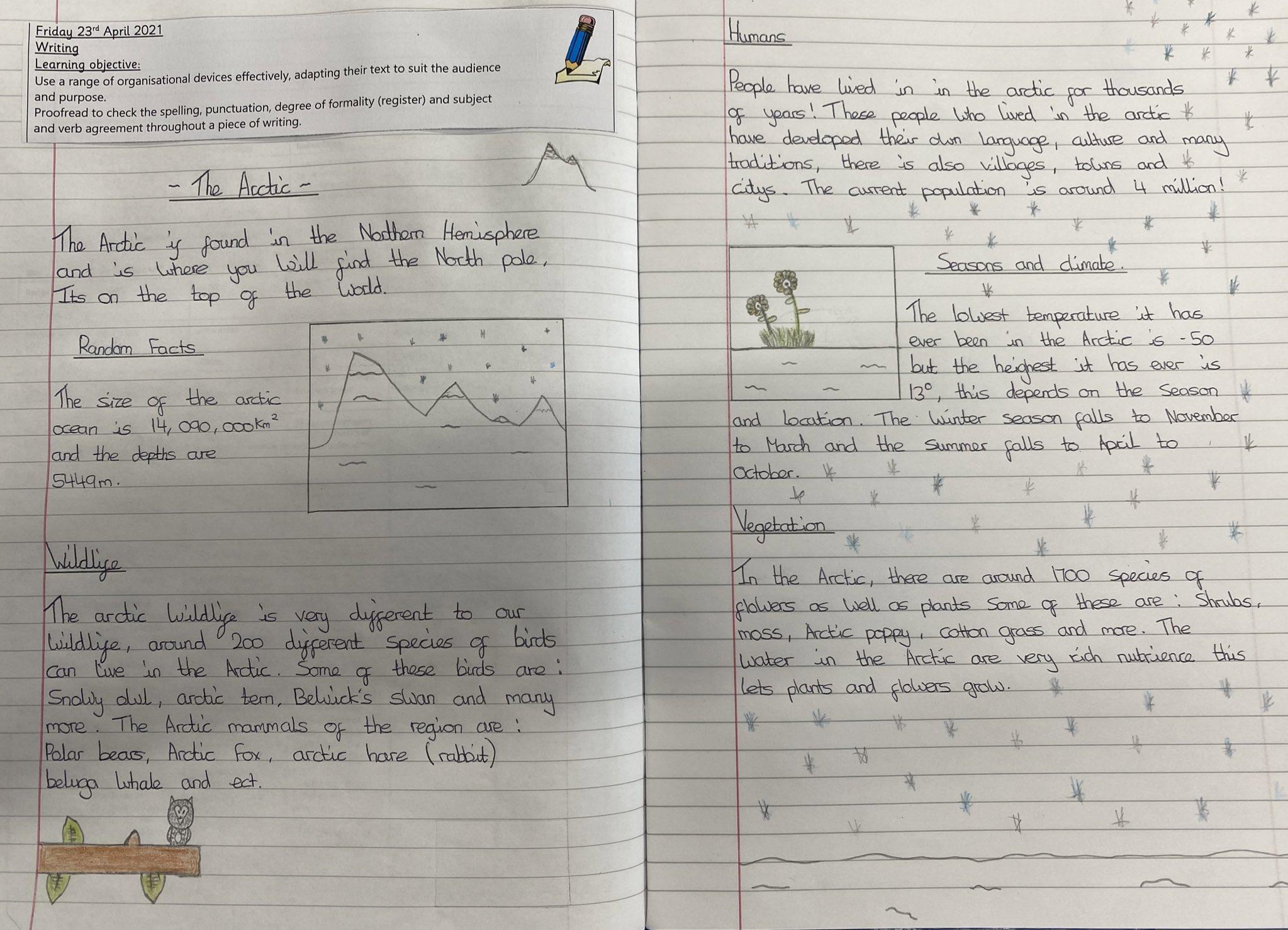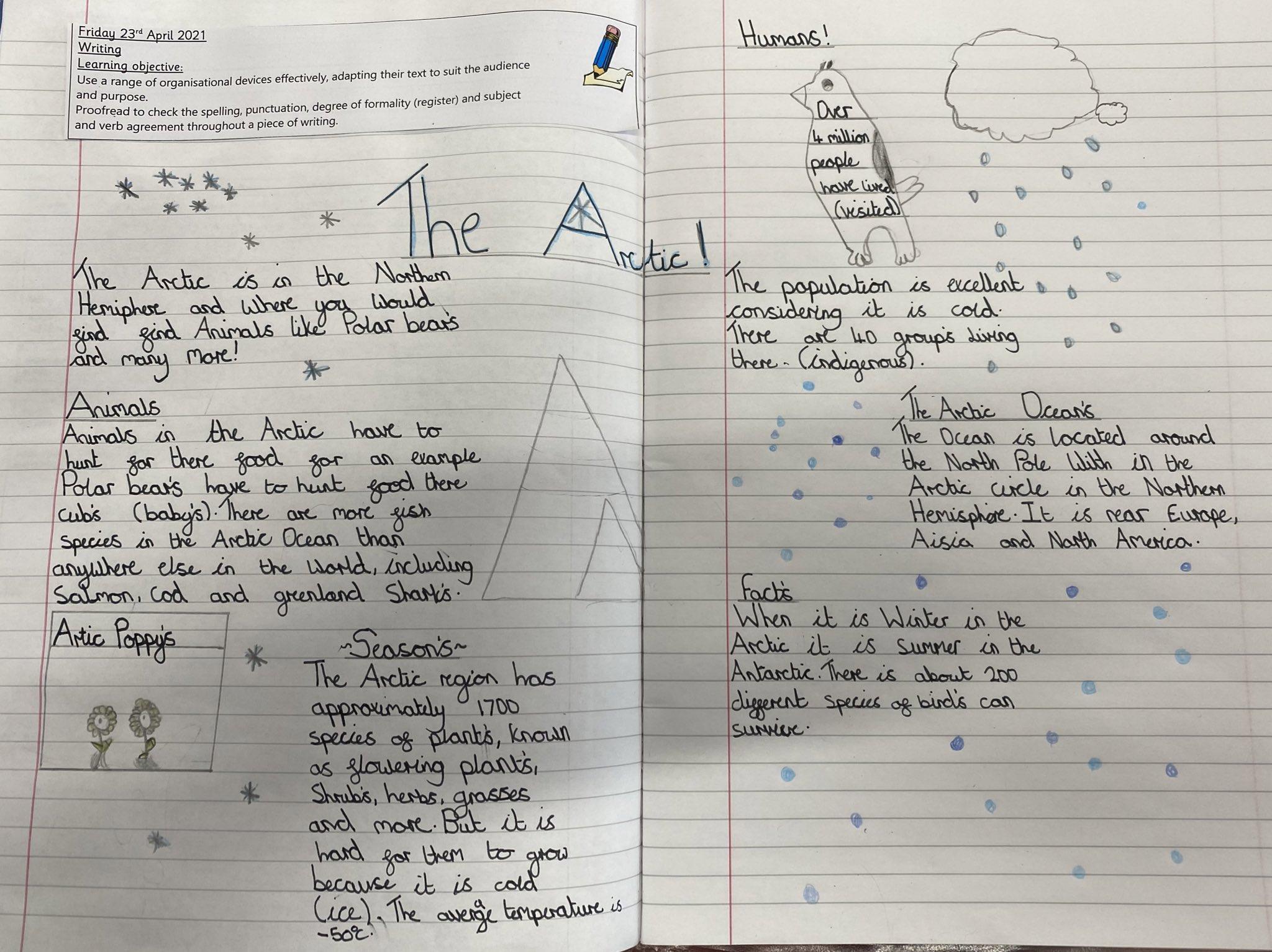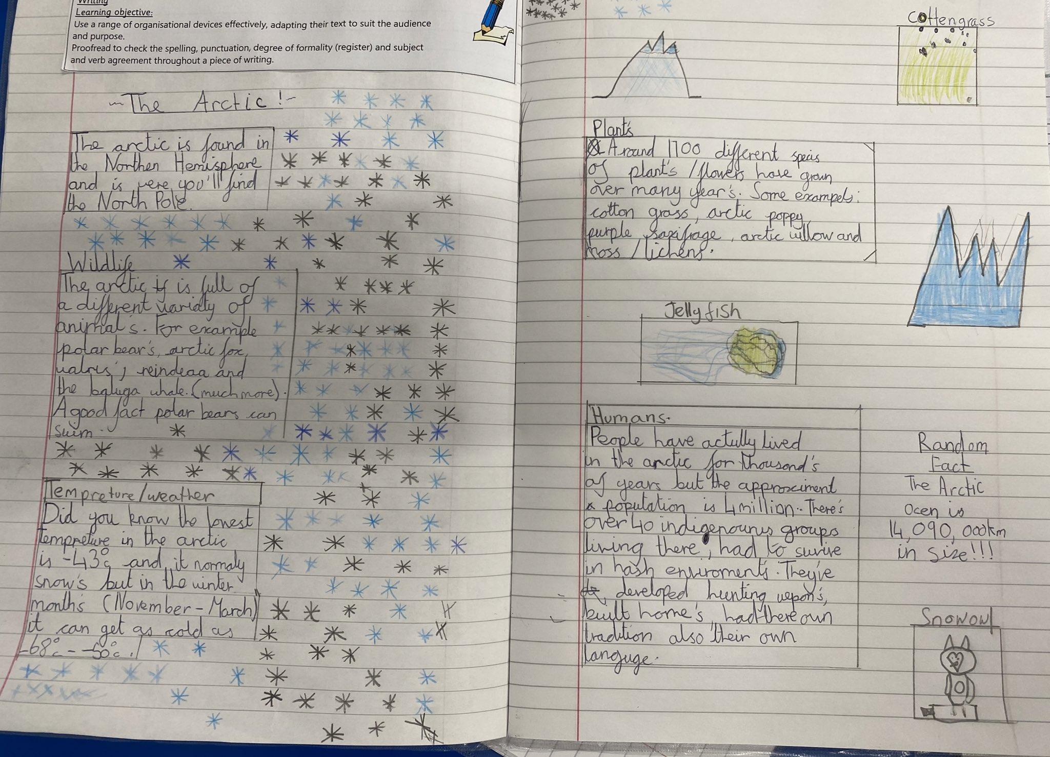 Absolutely brilliant Arctic reports from our Class 3 children today. Great to see all their 'Frozen Kingdoms' knowledge being brought together in a two-paged spread.
