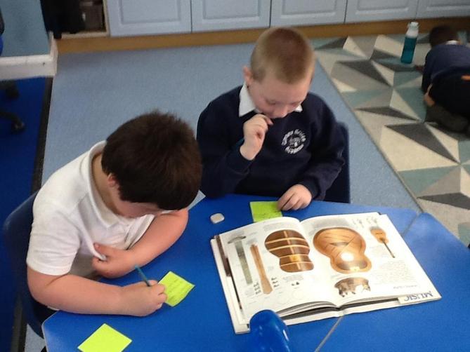 The children in Class 1 have been busy researching facts about different musical instruments in preparation for writing their own non-chronological reports.