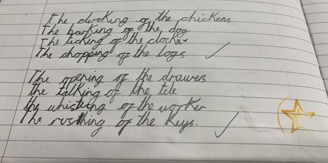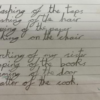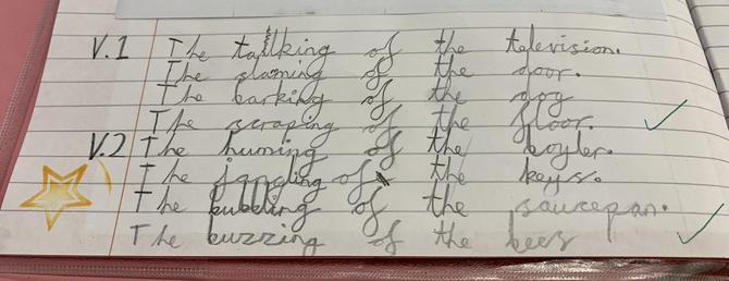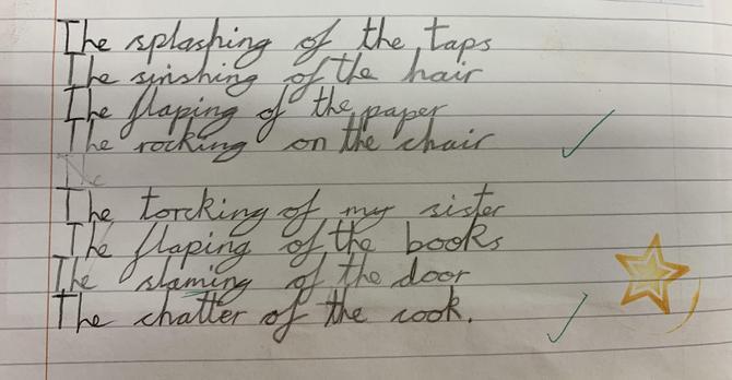 This week, we have been working together in small groups to create our own version of the poem 'The Sound Collector'. We shared our ideas about the sounds we could hear around school and put our individual ideas together to create a group poem, which we then read aloud together. We had to think about our intonation and expression and as a challenge, we were asked to think of ways we could incorporate some of the sounds we were describing into the poem!
