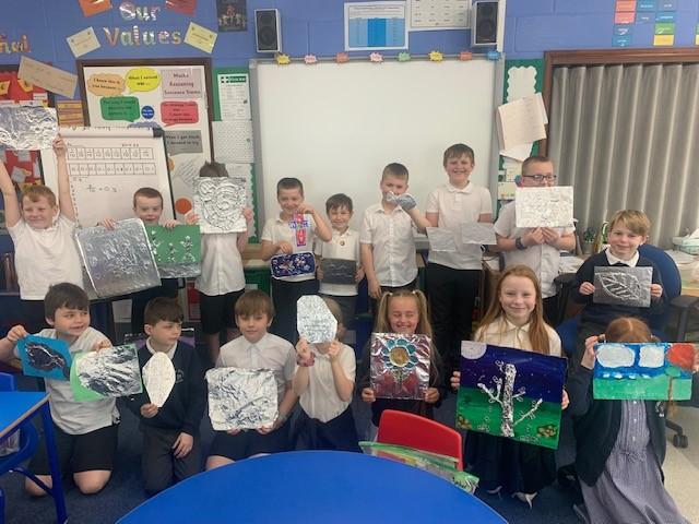 To get our new project off to a brilliant start, Class 2 have created some amazing art work using tin foil! The children have used a variety of techniques, including painting, scrunching and embossing to create their artwork; it is very impressive!