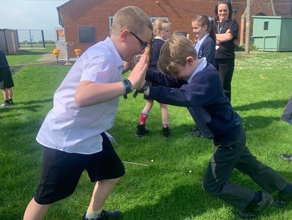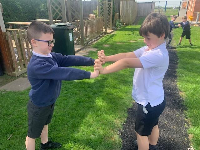 Then we looked at what would happen if one of us pushed and one of us pulled!