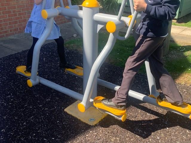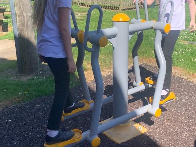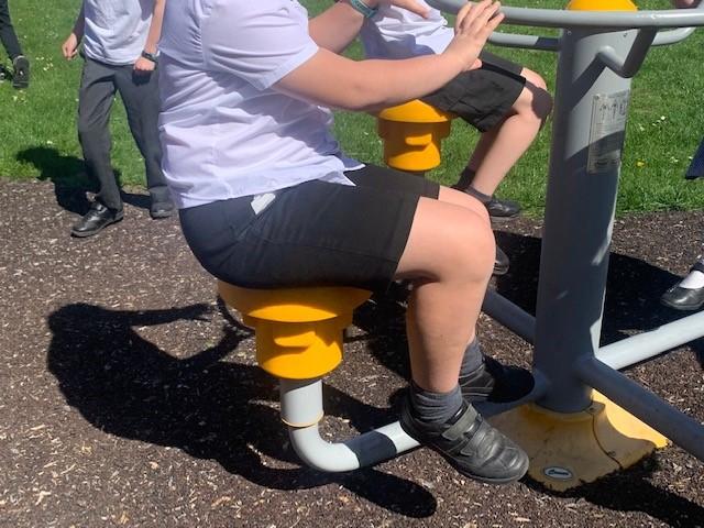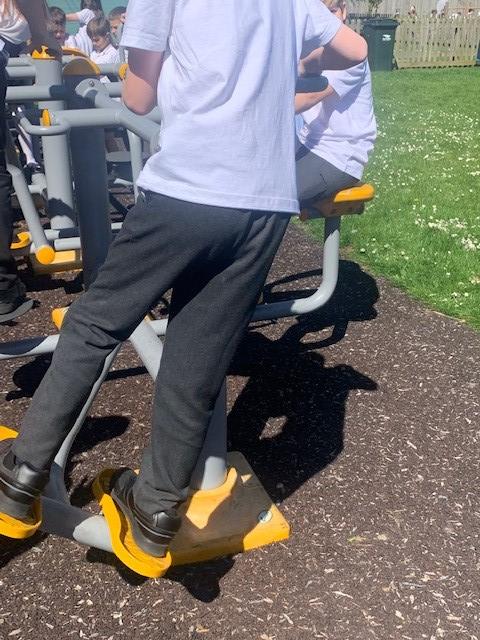 Later, we used the exercise equipment to investigate the forces that we had to apply to create motion. We found that we had to push and pull in different directions. We talked about gravity and realised that the more force we applied, the faster the motion.