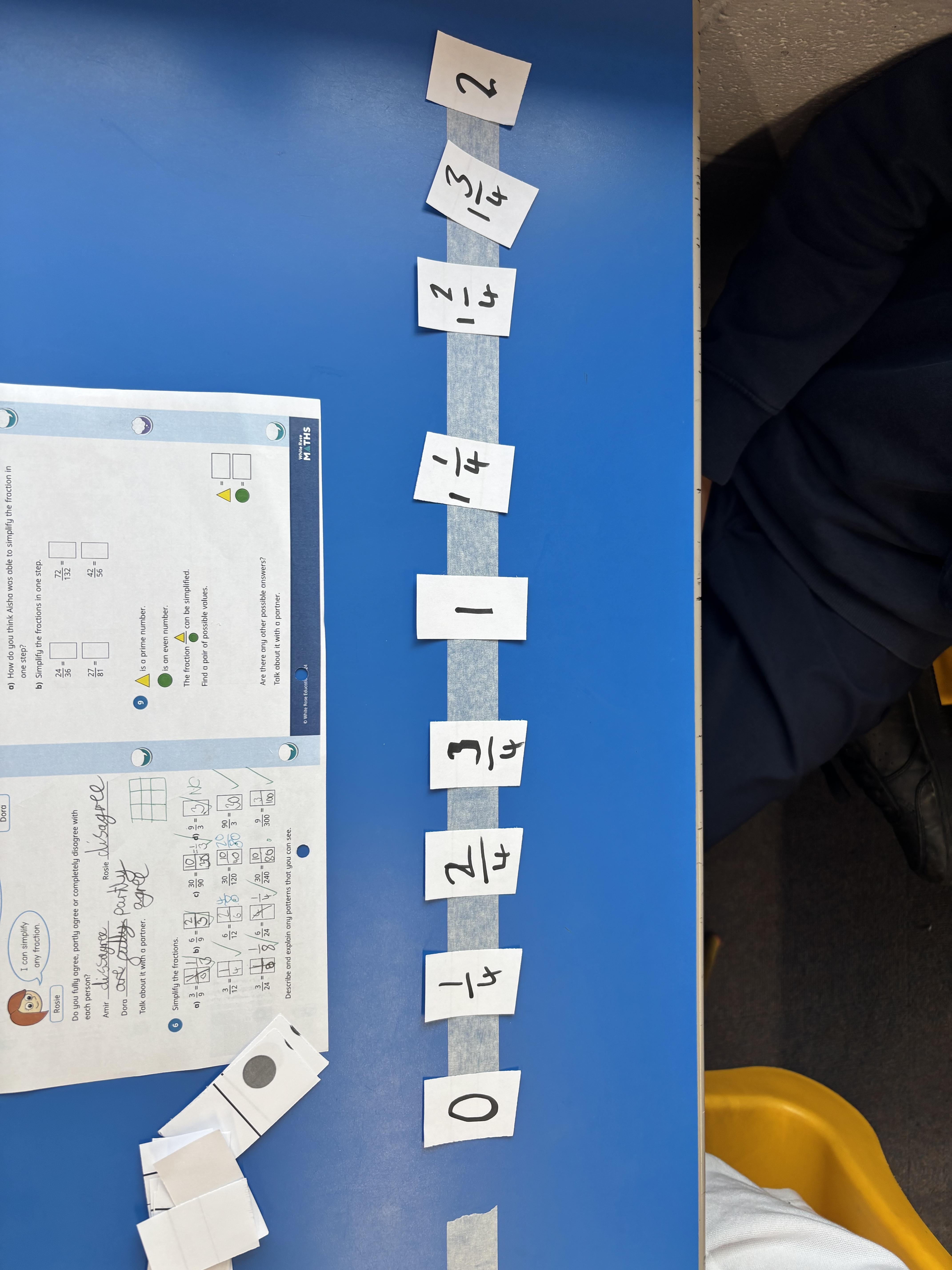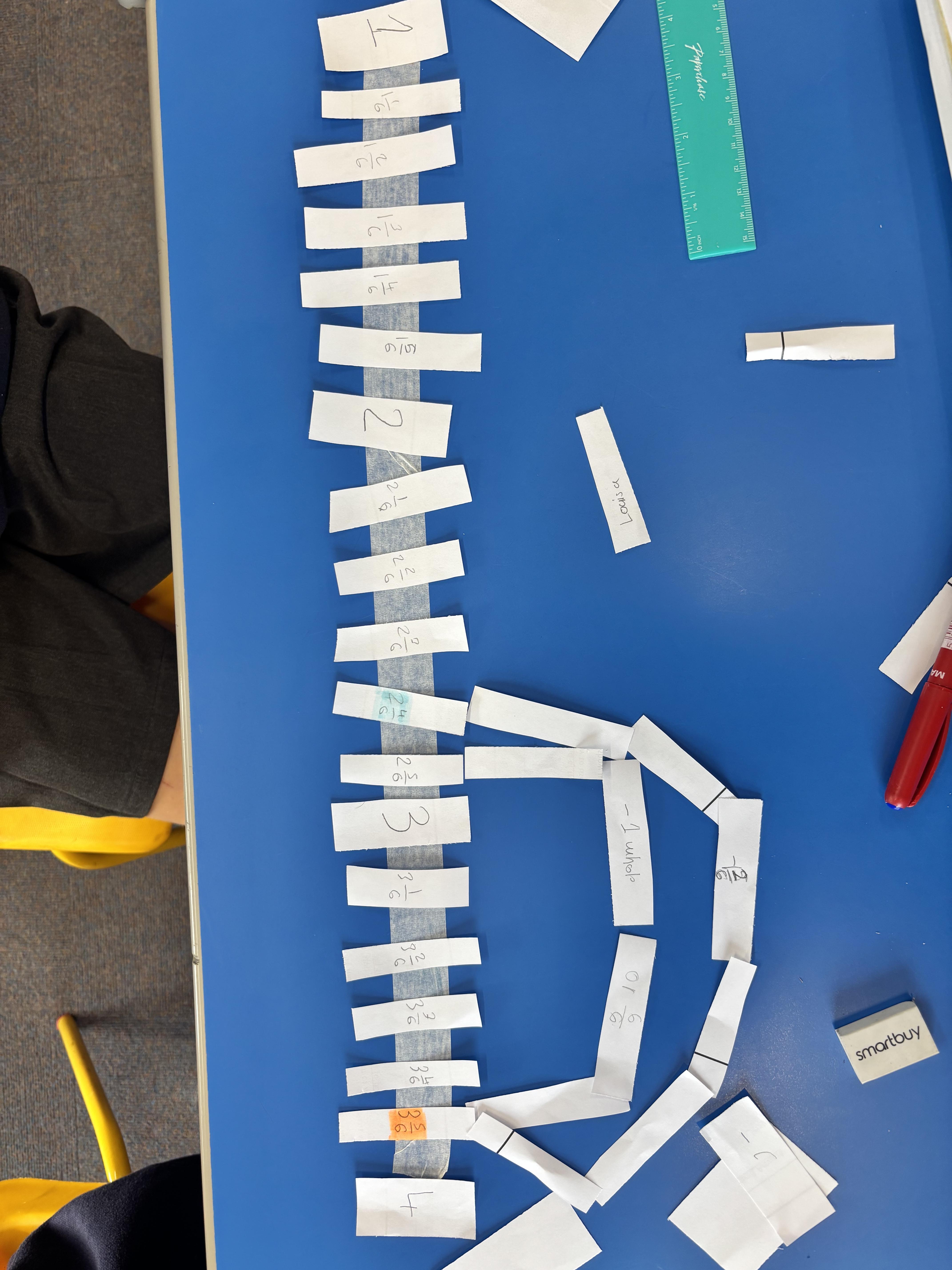 Another hands-on session, this time with a masking tape number line to help us with equivalent fractions.