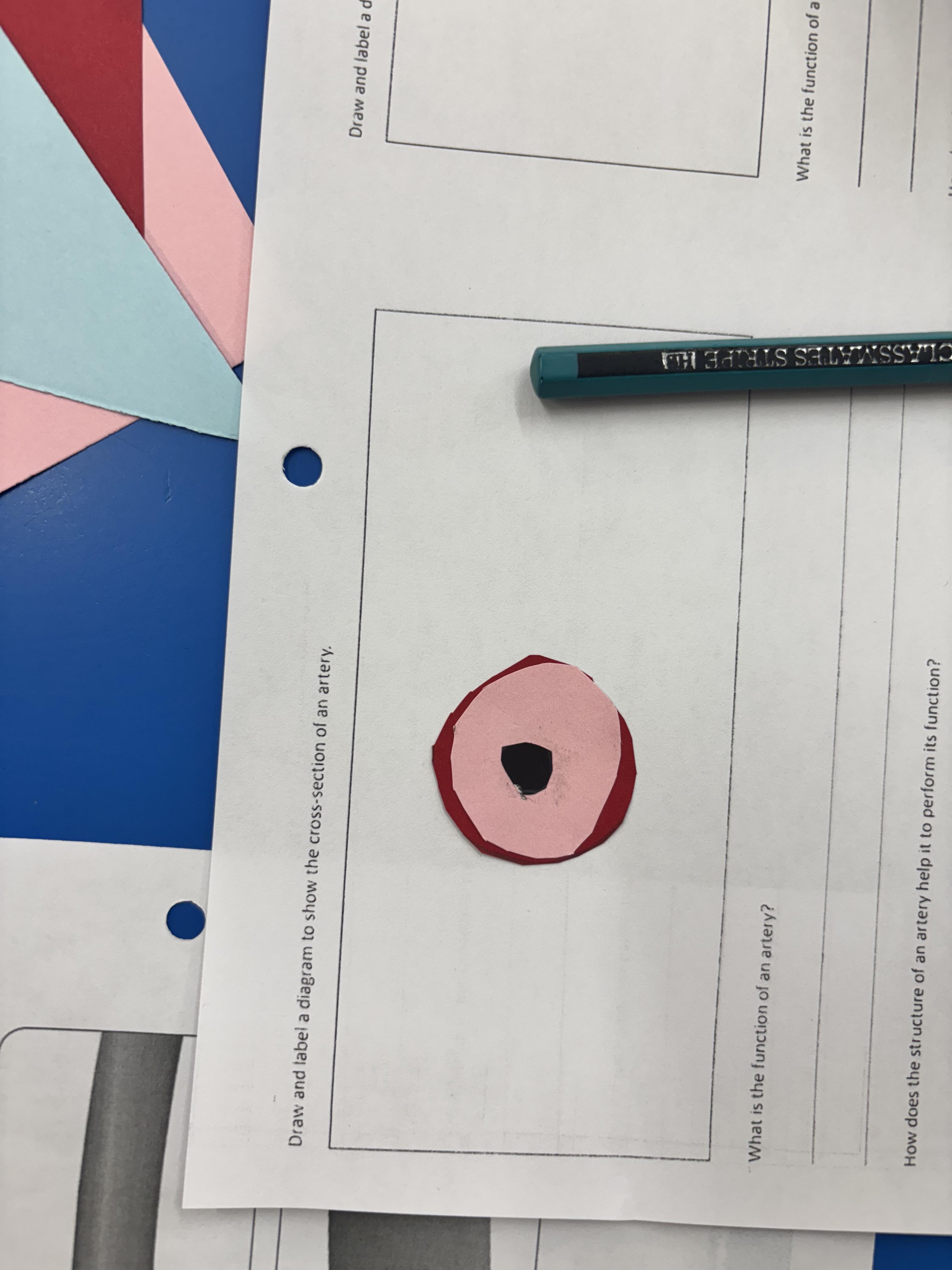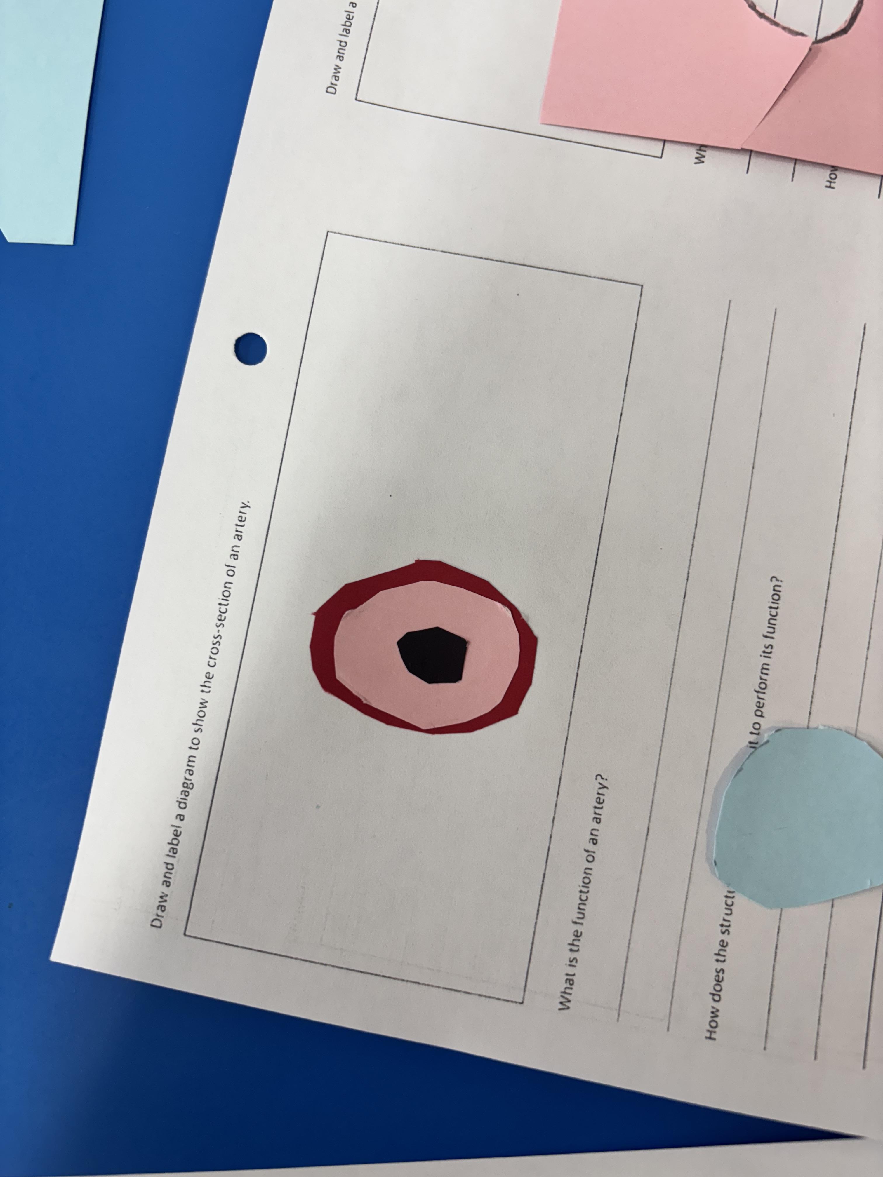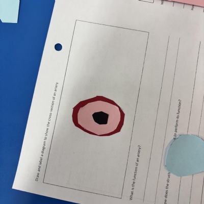 Today, we learned about the different blood vessels: veins, arteries and capillaries. We talked about their different characteristics and made our own representations, with labels.