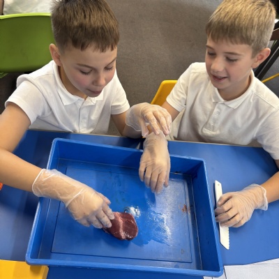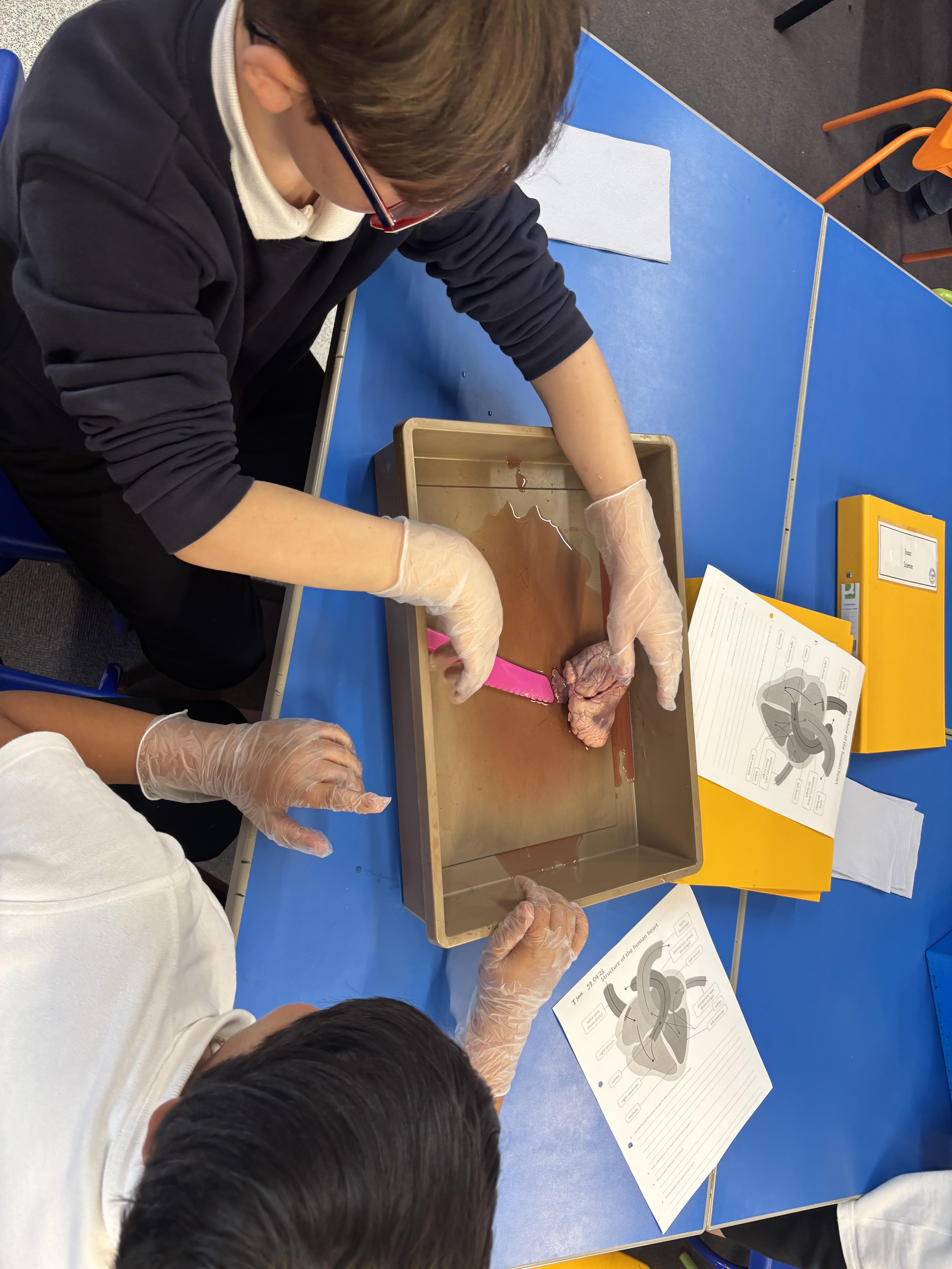Today we had a really hands-on Science lesson: we dissected real hearts! We used diagrams and videos to understand the various blood vessels and chambers and to look at how the heart pumps blood around the body. There were lots of oohs and ahhs in what was, hopefully, a truly memorable experience.