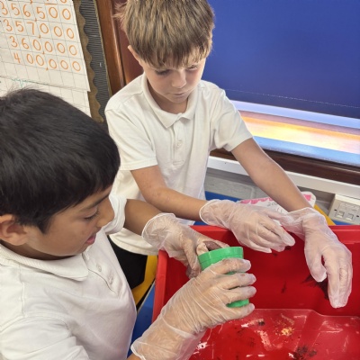 Today’s Science lesson involved using every day items to recreate the different components of our blood, including platelets and red and white blood cells. We talked about their roles in our blood.