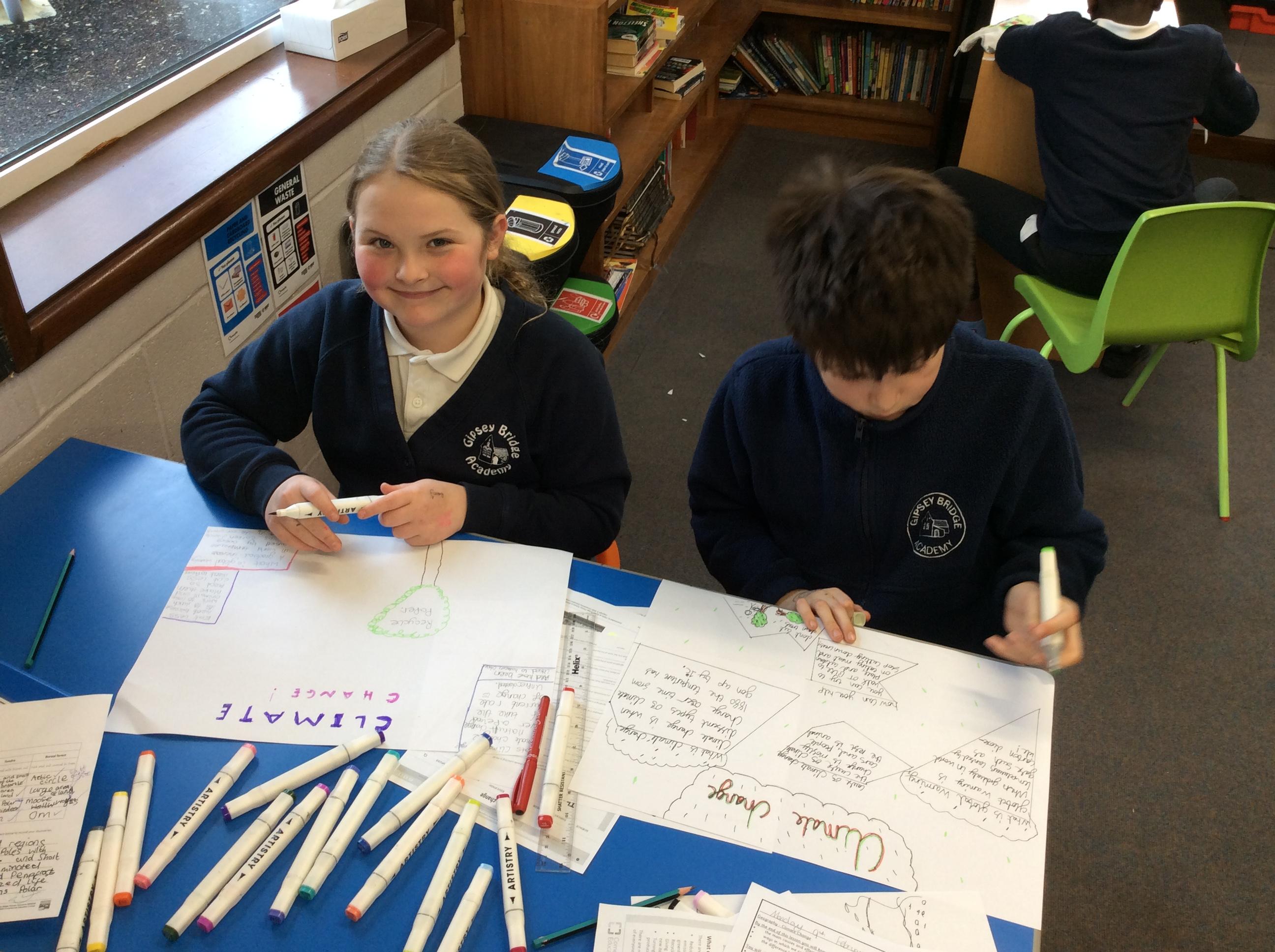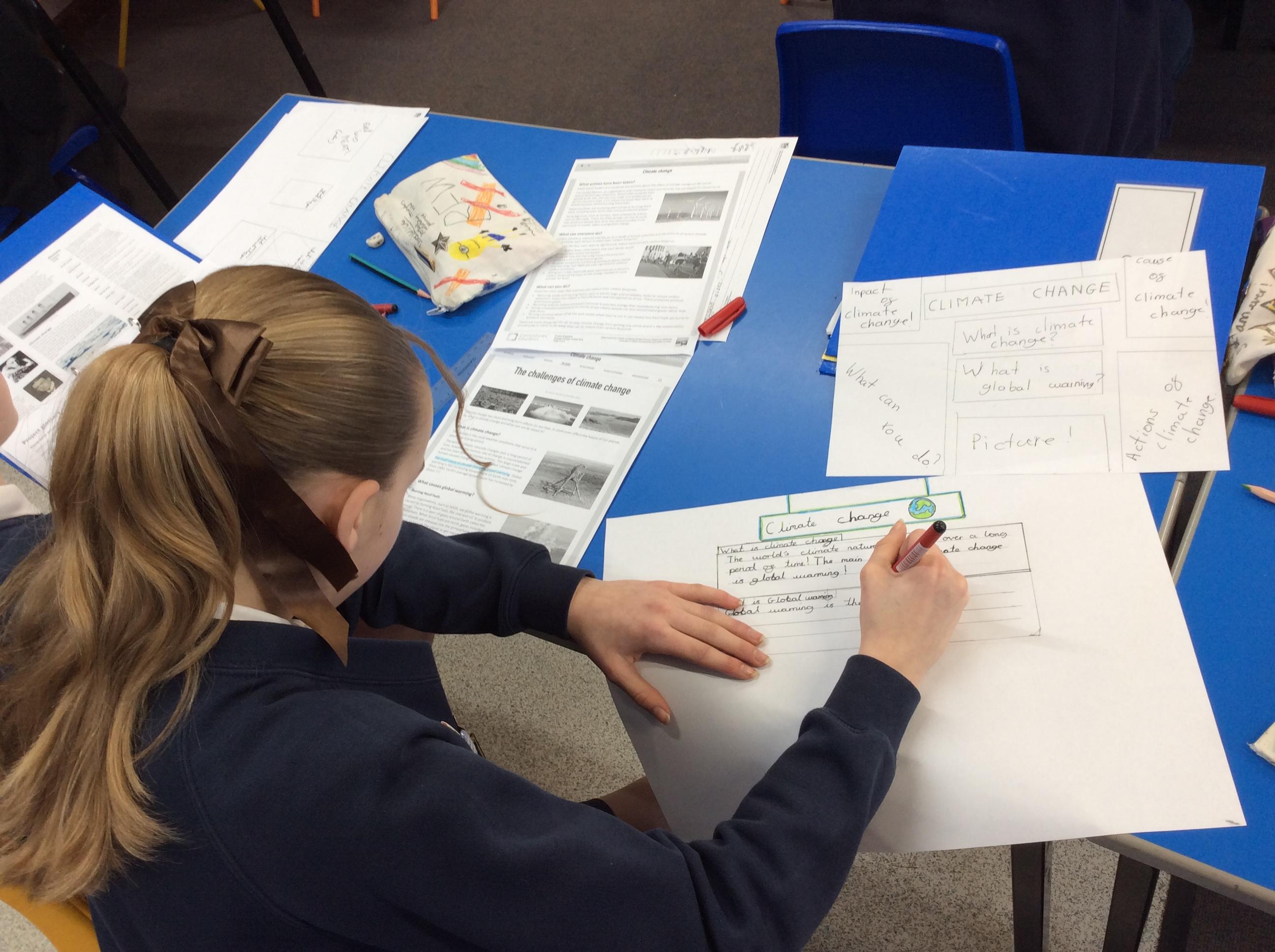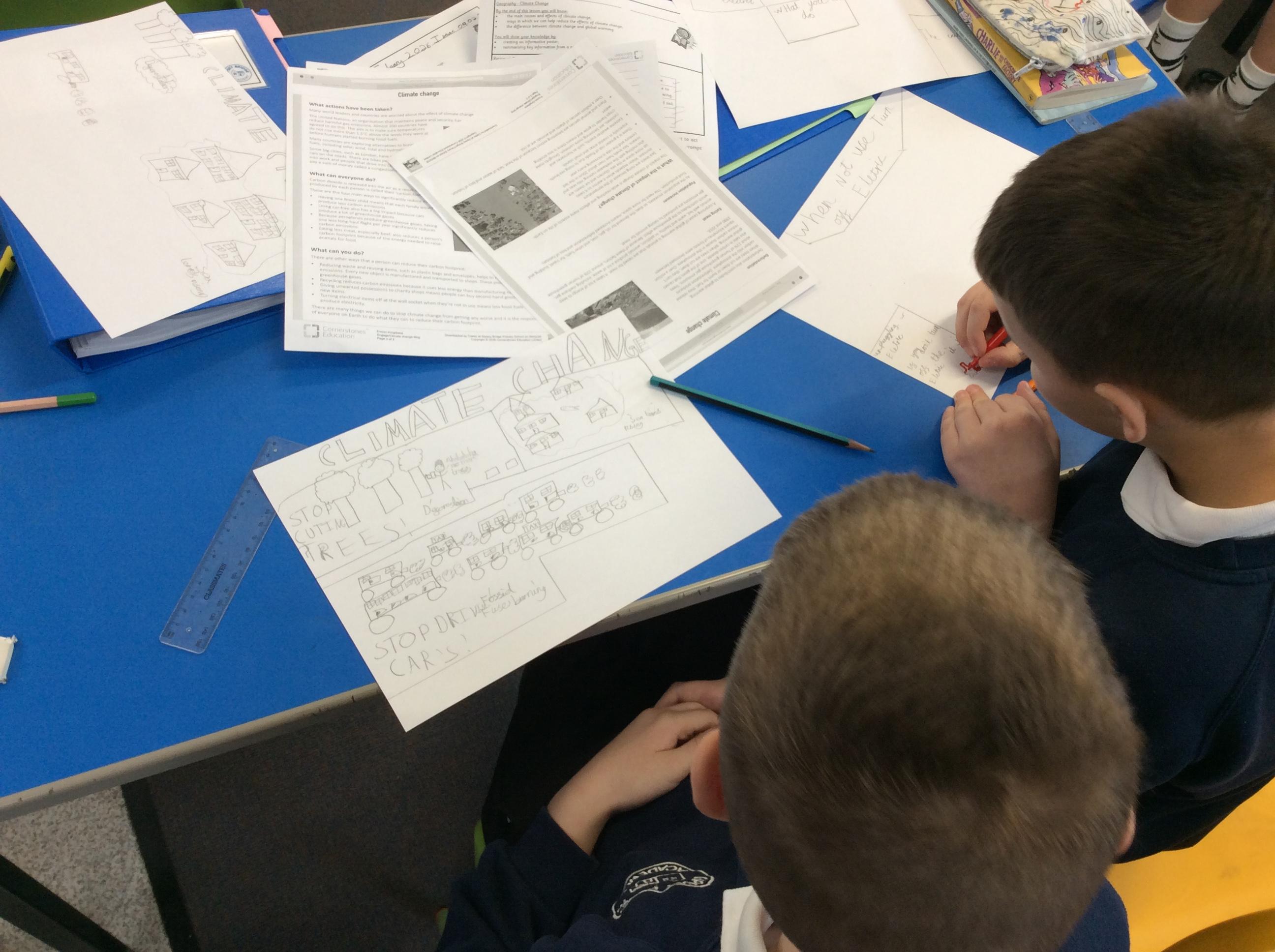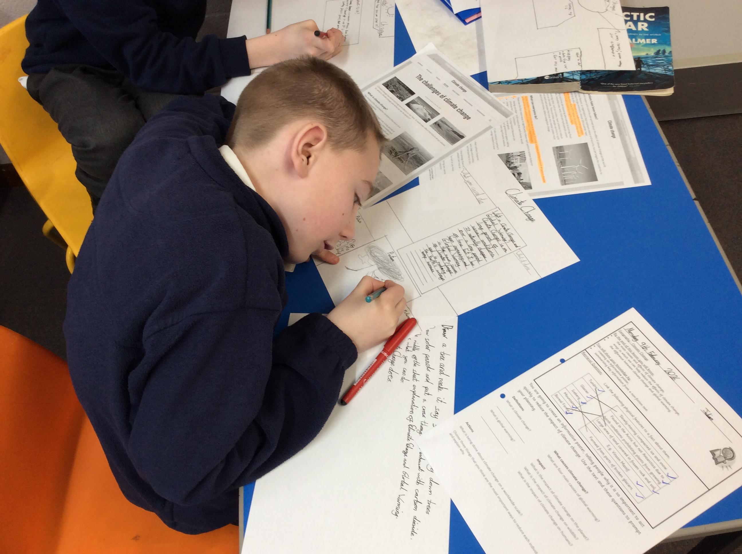 Today, we have been exploring climate change. We learned about the difference between climate change and global warming and talked about what we can do to reduce the effects and impact of climate change. The children made posters to highlight the most important information, summarising their learning.