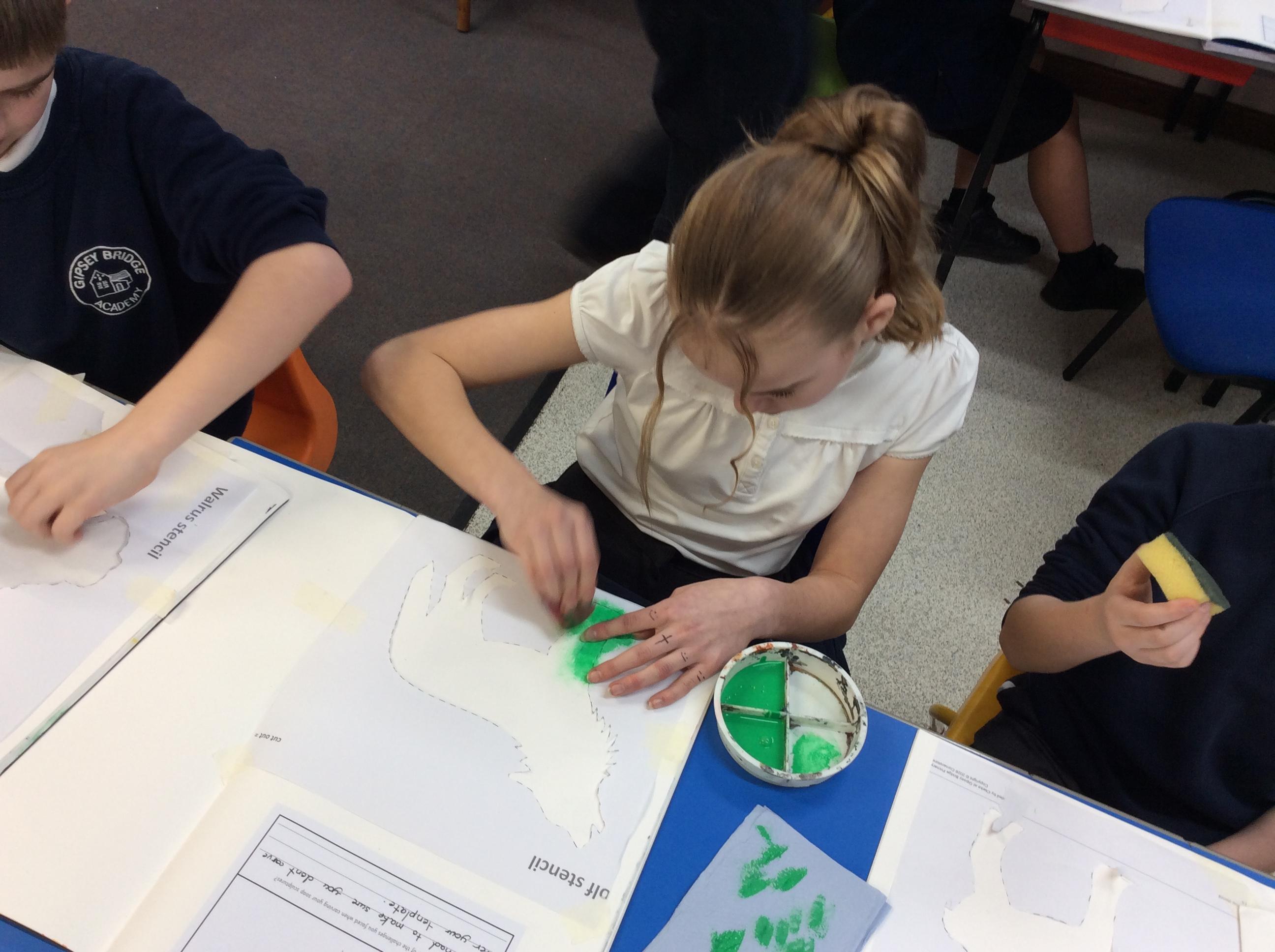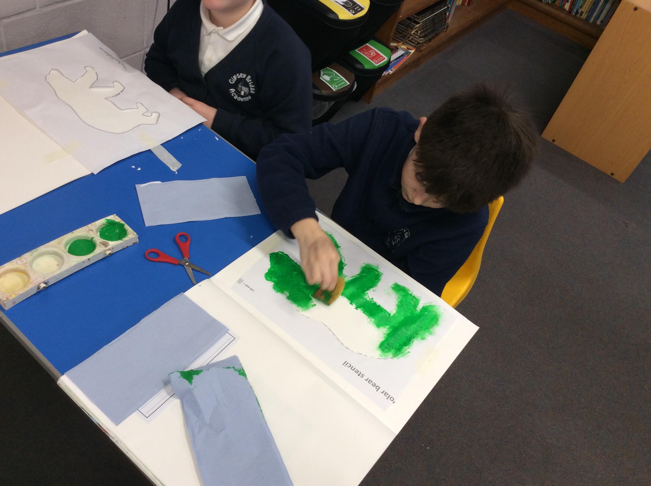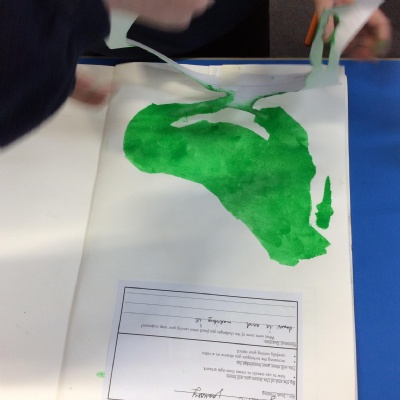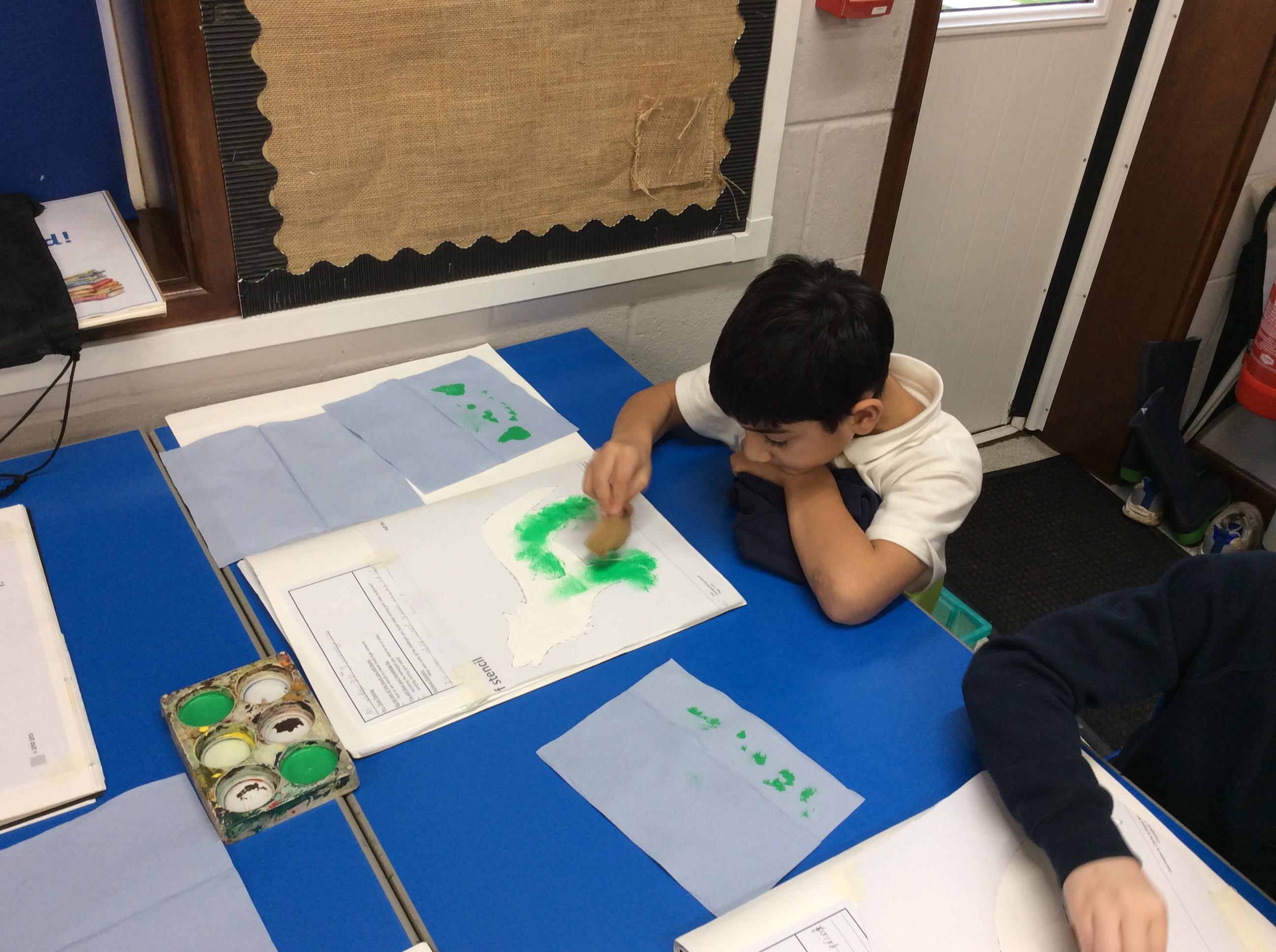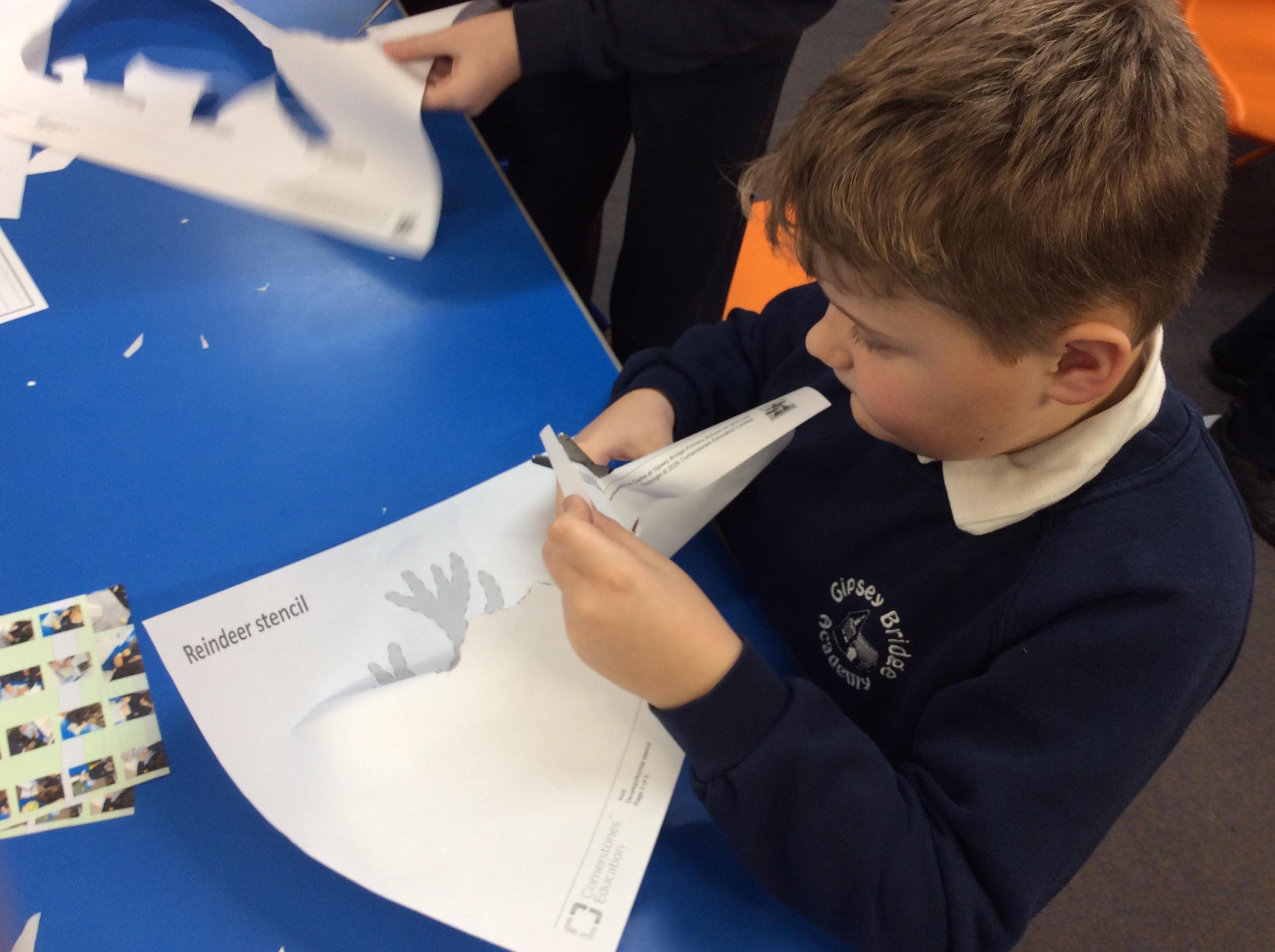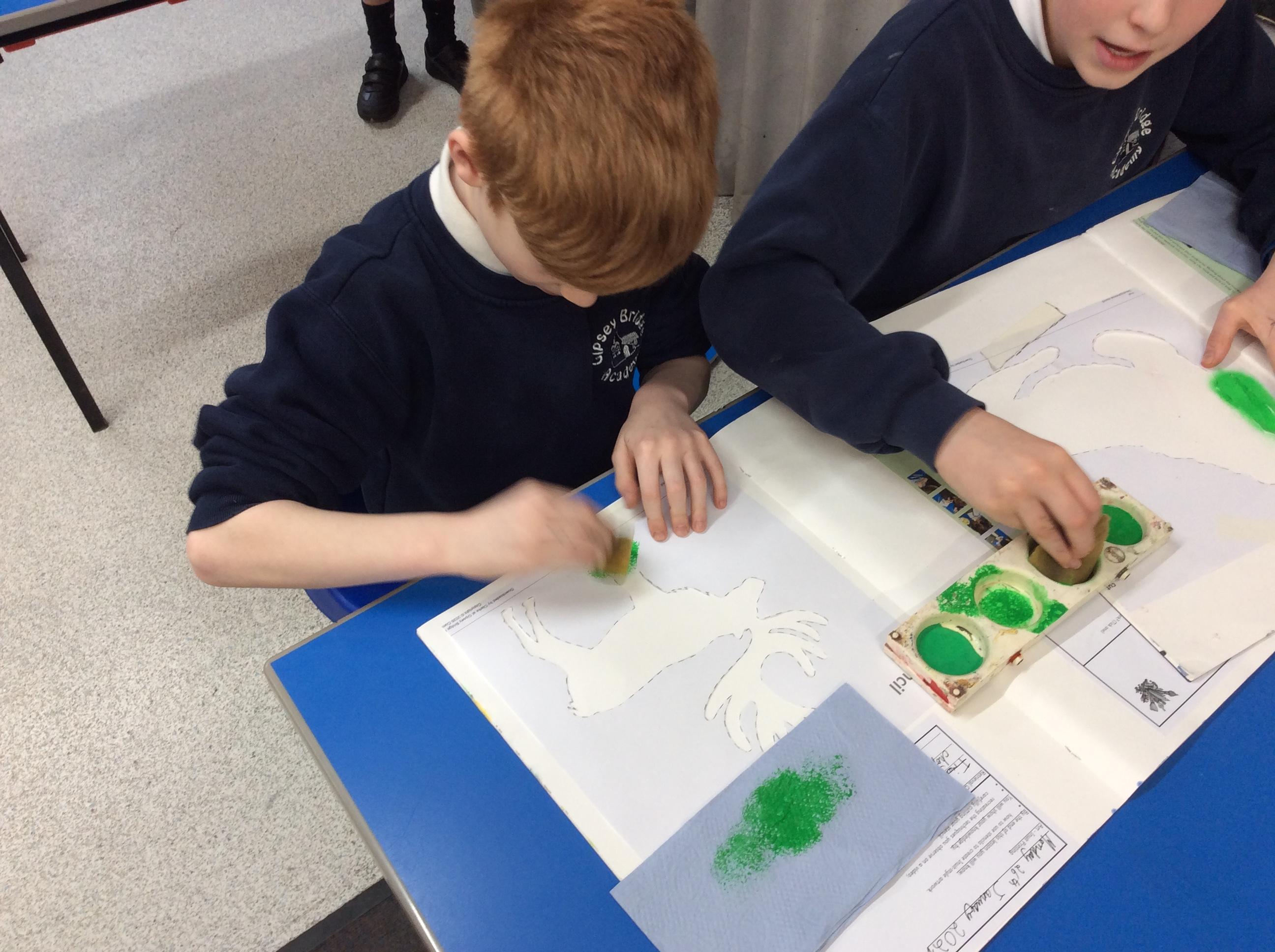 We’ve been exploring stencilling this week! We prepared our stencils by carefully cutting them out. We then taped them into our sketch books, ready to paint in the next session.