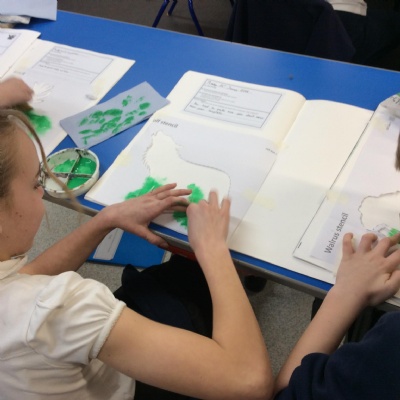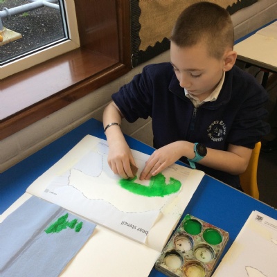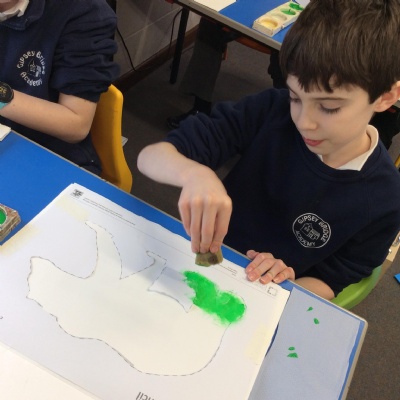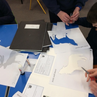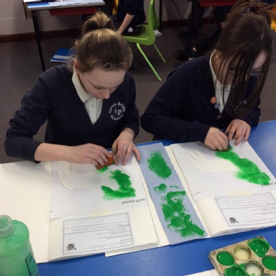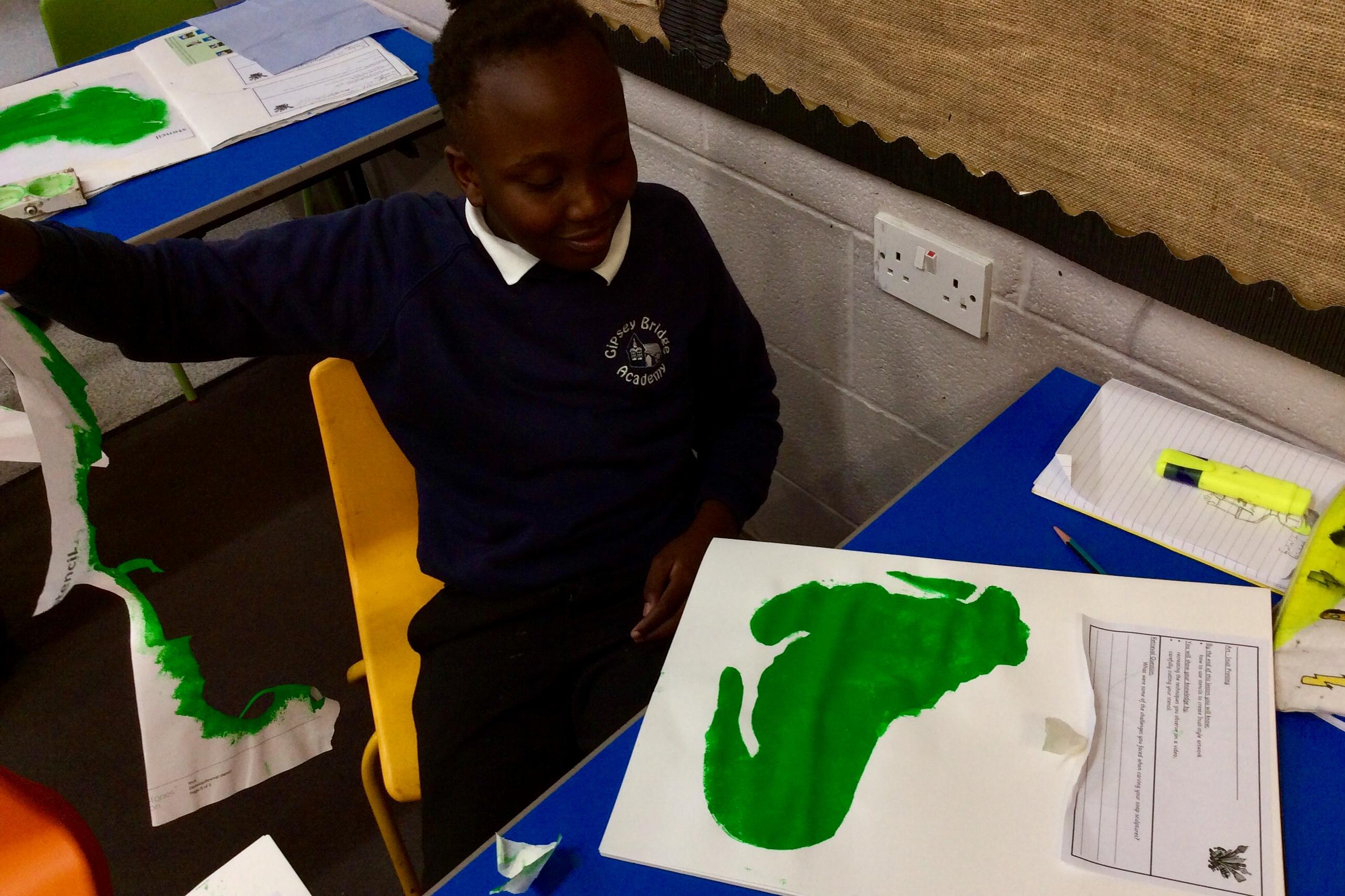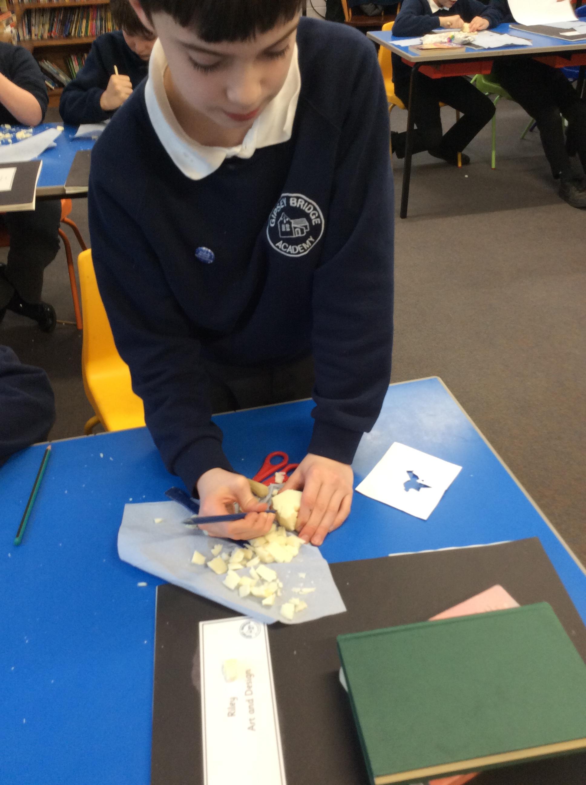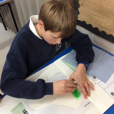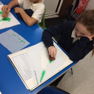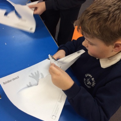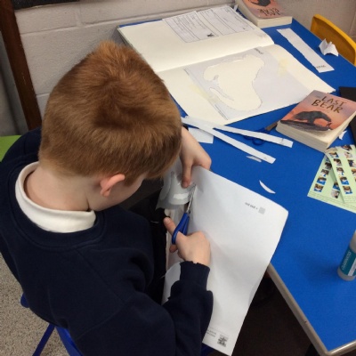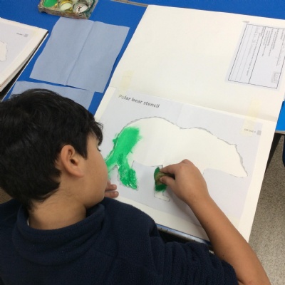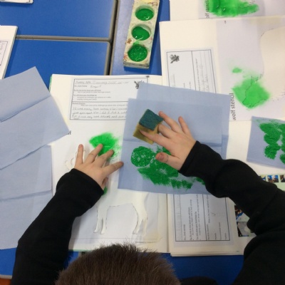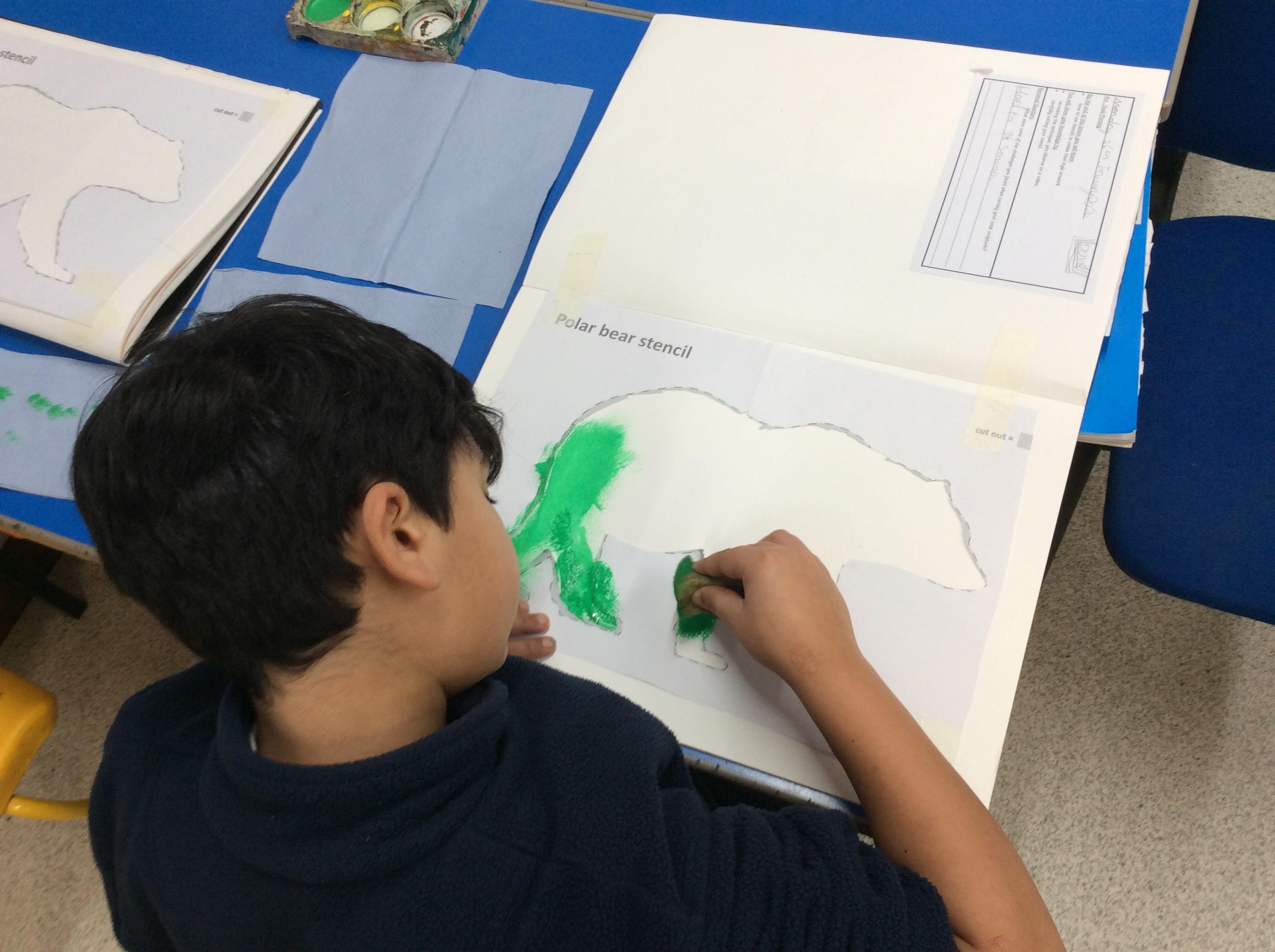 We’ve been exploring stencilling this week! We prepared our stencils by carefully cutting them out. We then taped them into our sketch books, ready to paint in the next session.