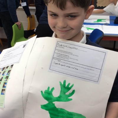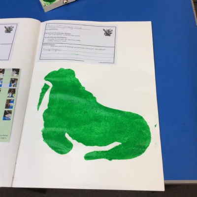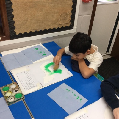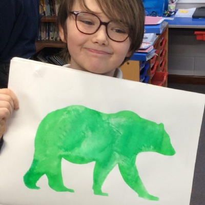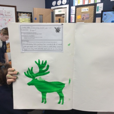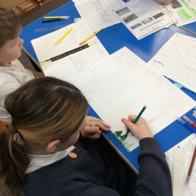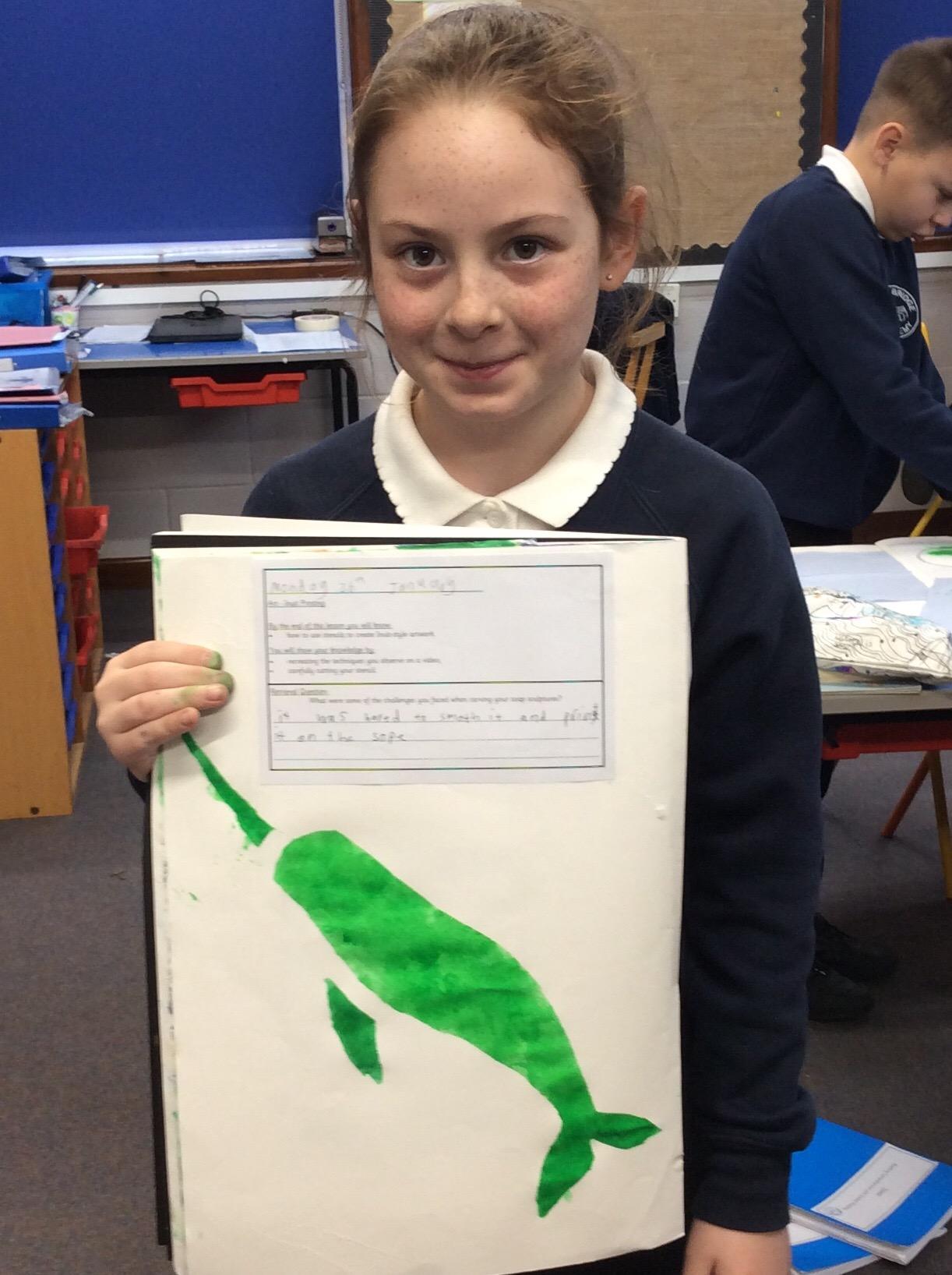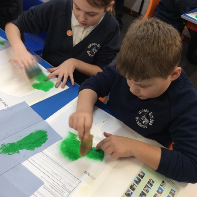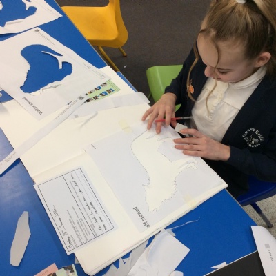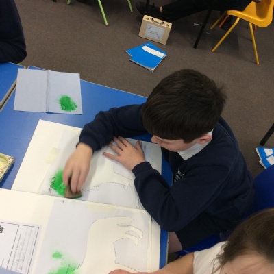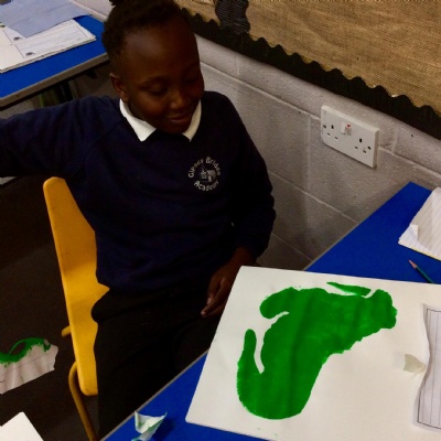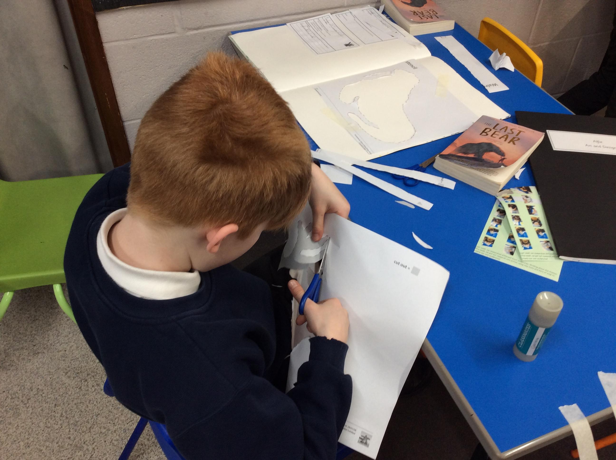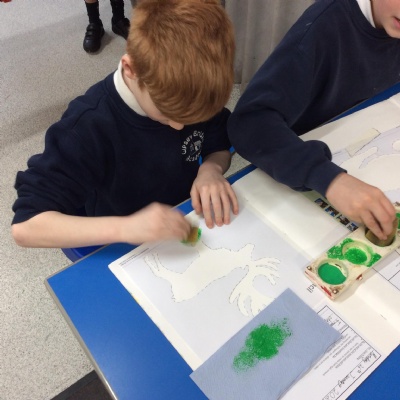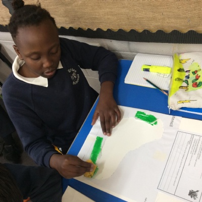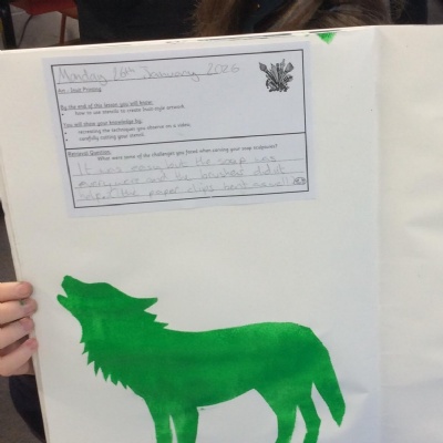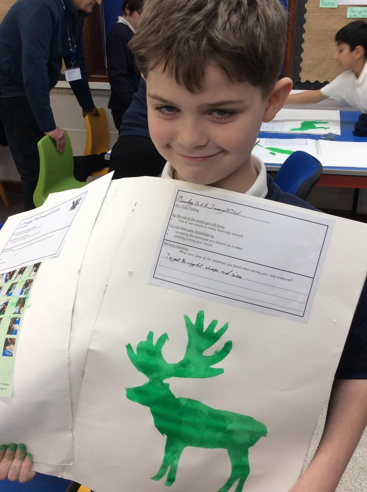 We’ve been exploring stencilling this week! We prepared our stencils by carefully cutting them out. We then taped them into our sketch books, ready to paint in the next session.