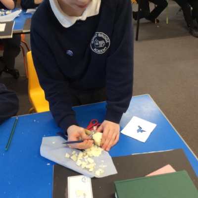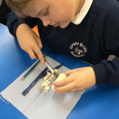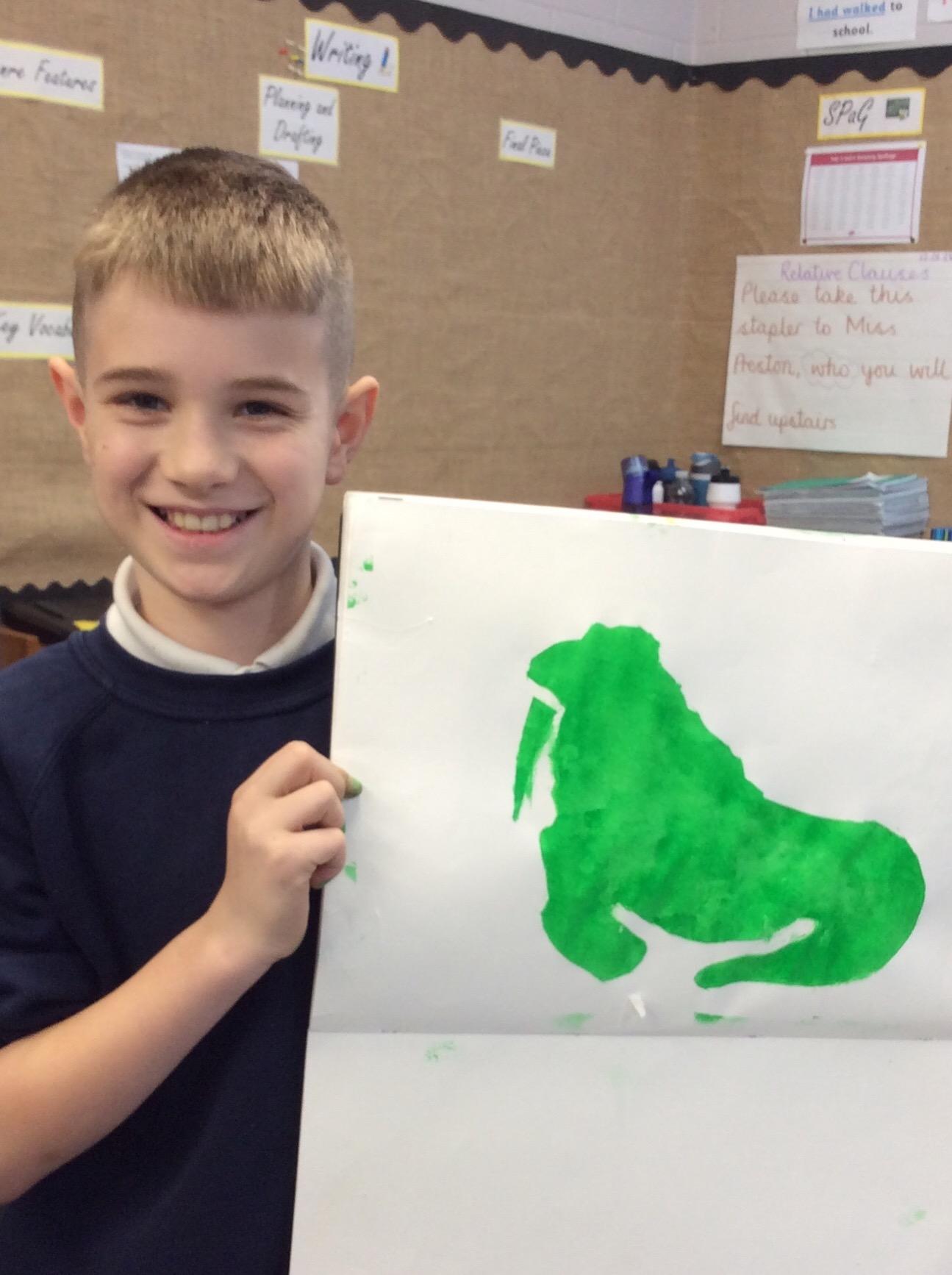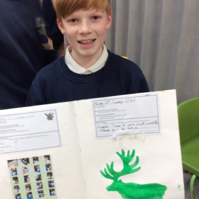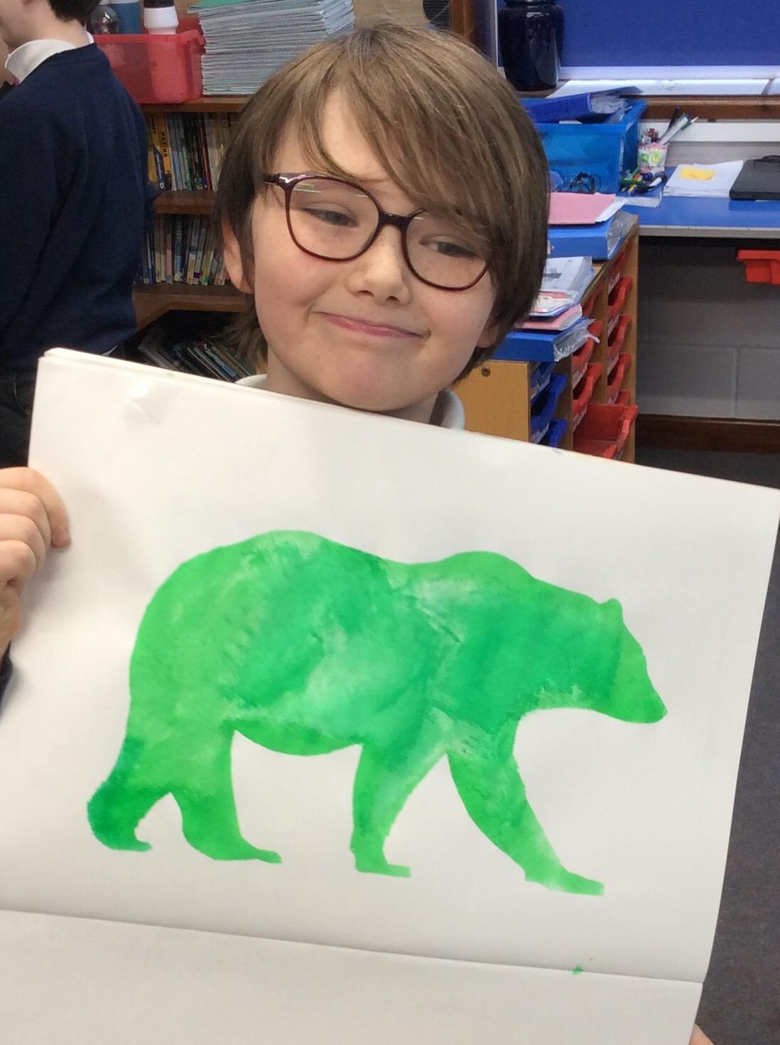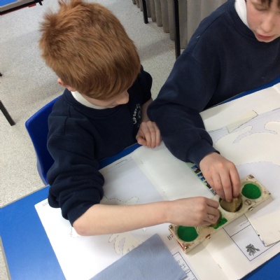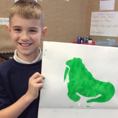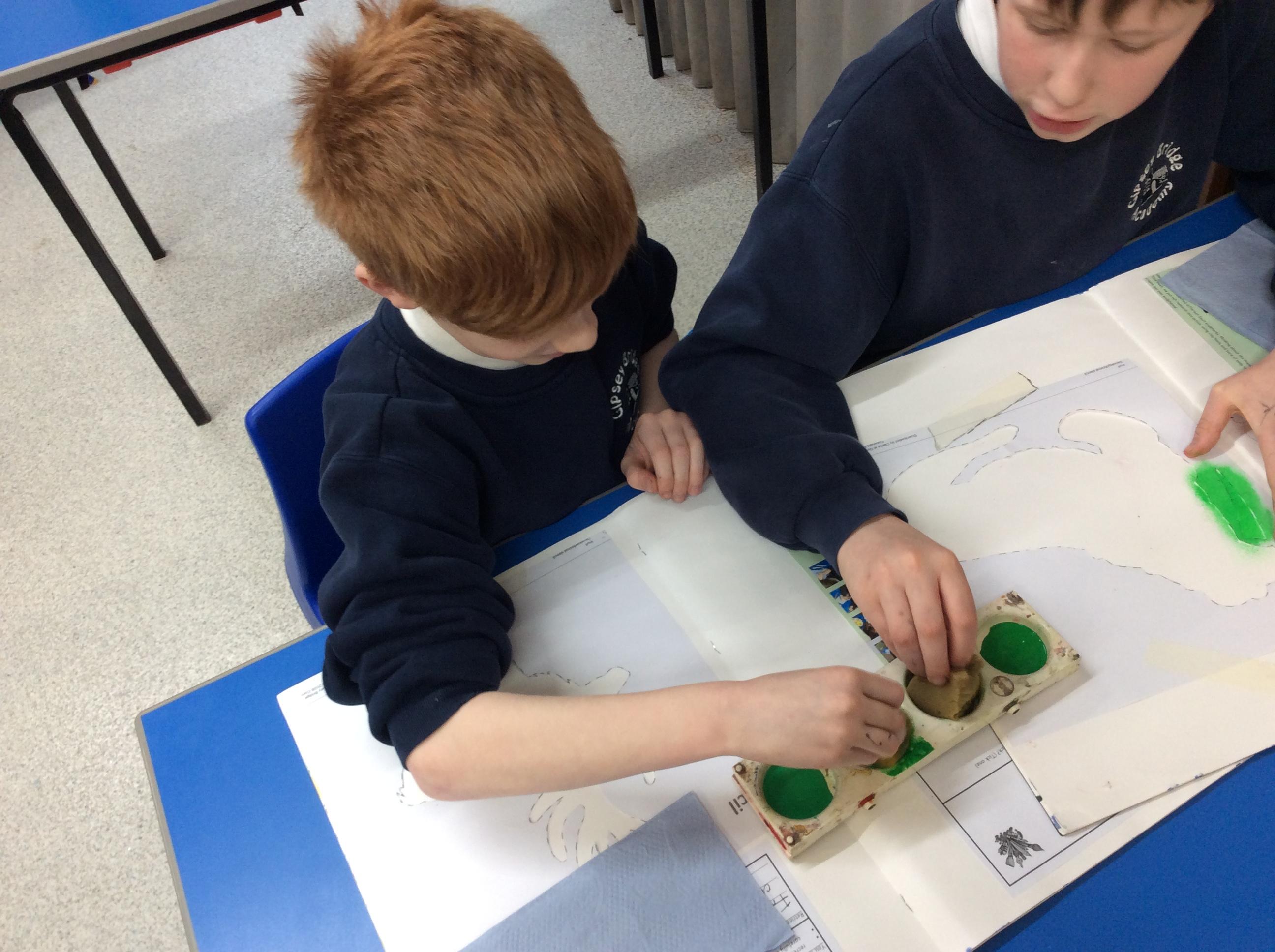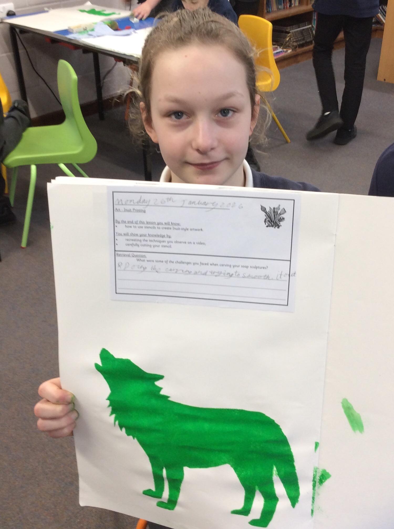 We’ve been exploring stencilling this week! We prepared our stencils by carefully cutting them out. We then taped them into our sketch books, ready to paint in the next session.