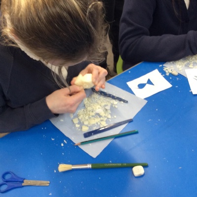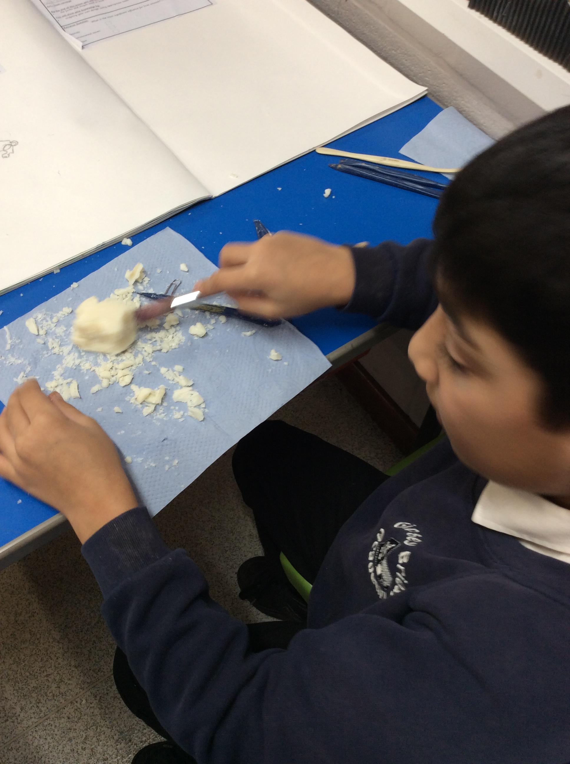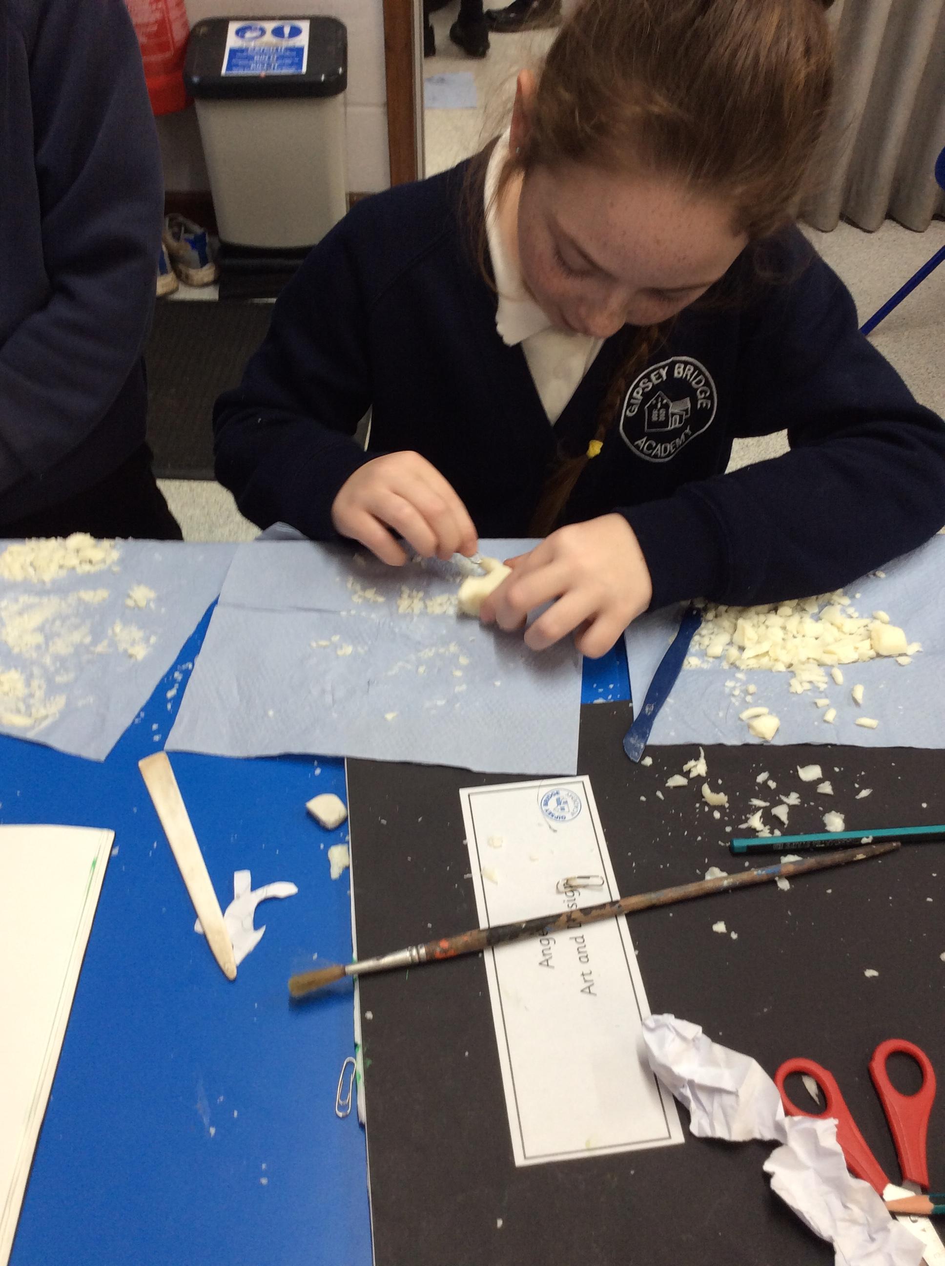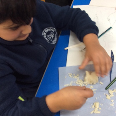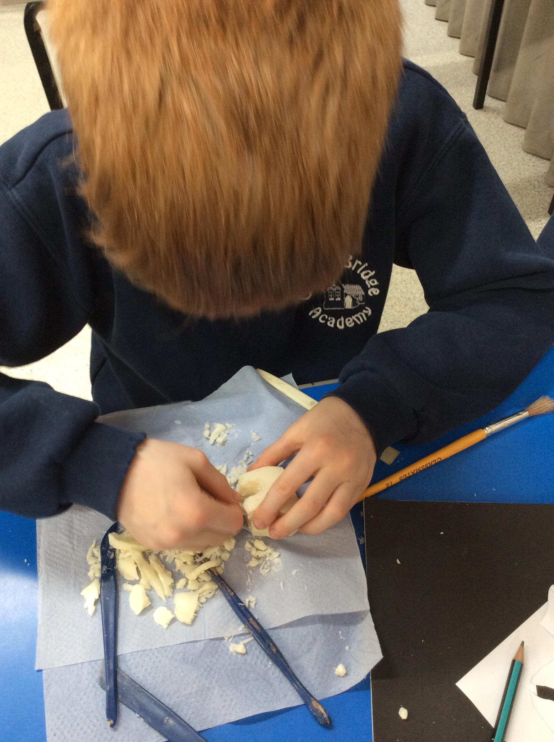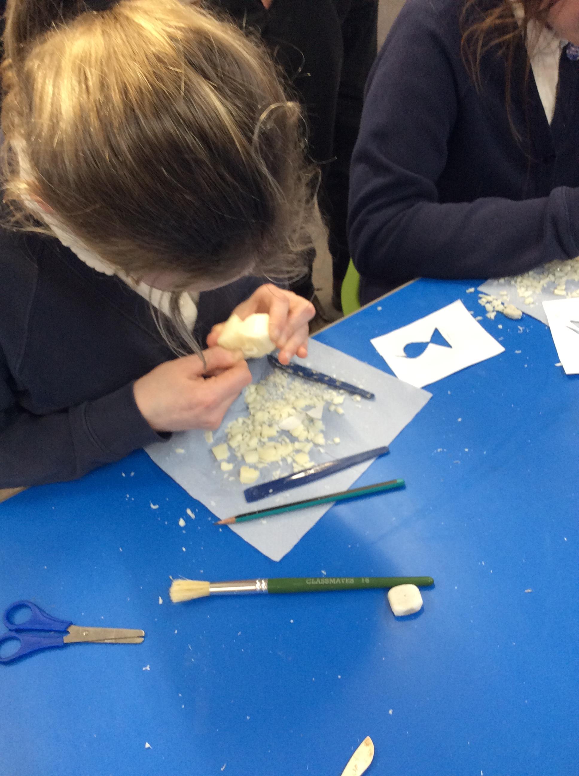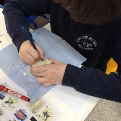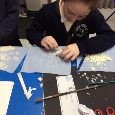 Last week, we researched different Inuit sculptures, thinking about the themes. This week, we put out research into action, using clay tools and bars of soap to create our own sculptures!