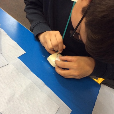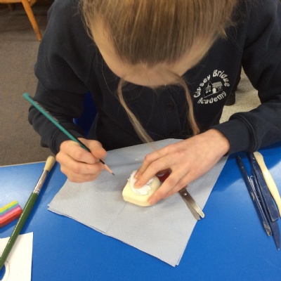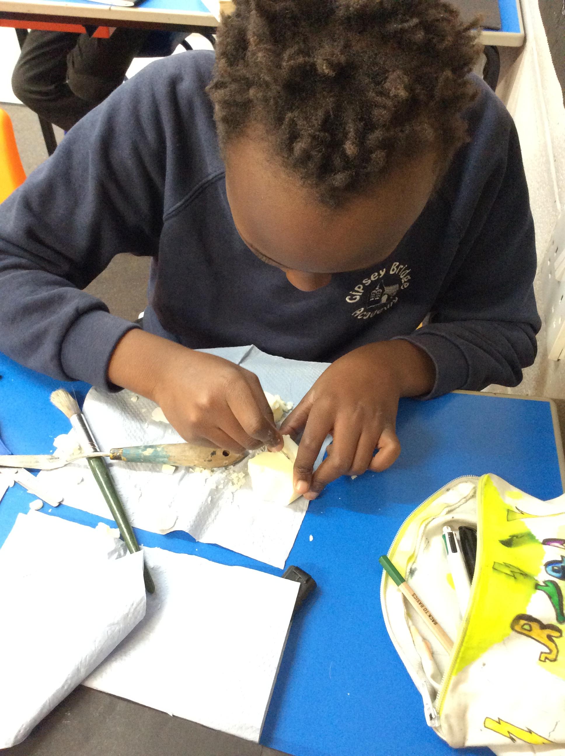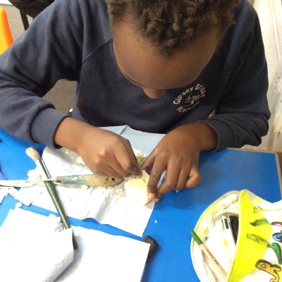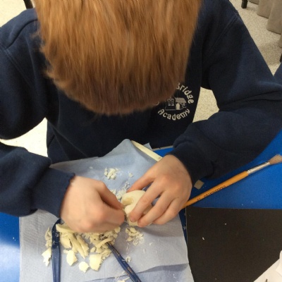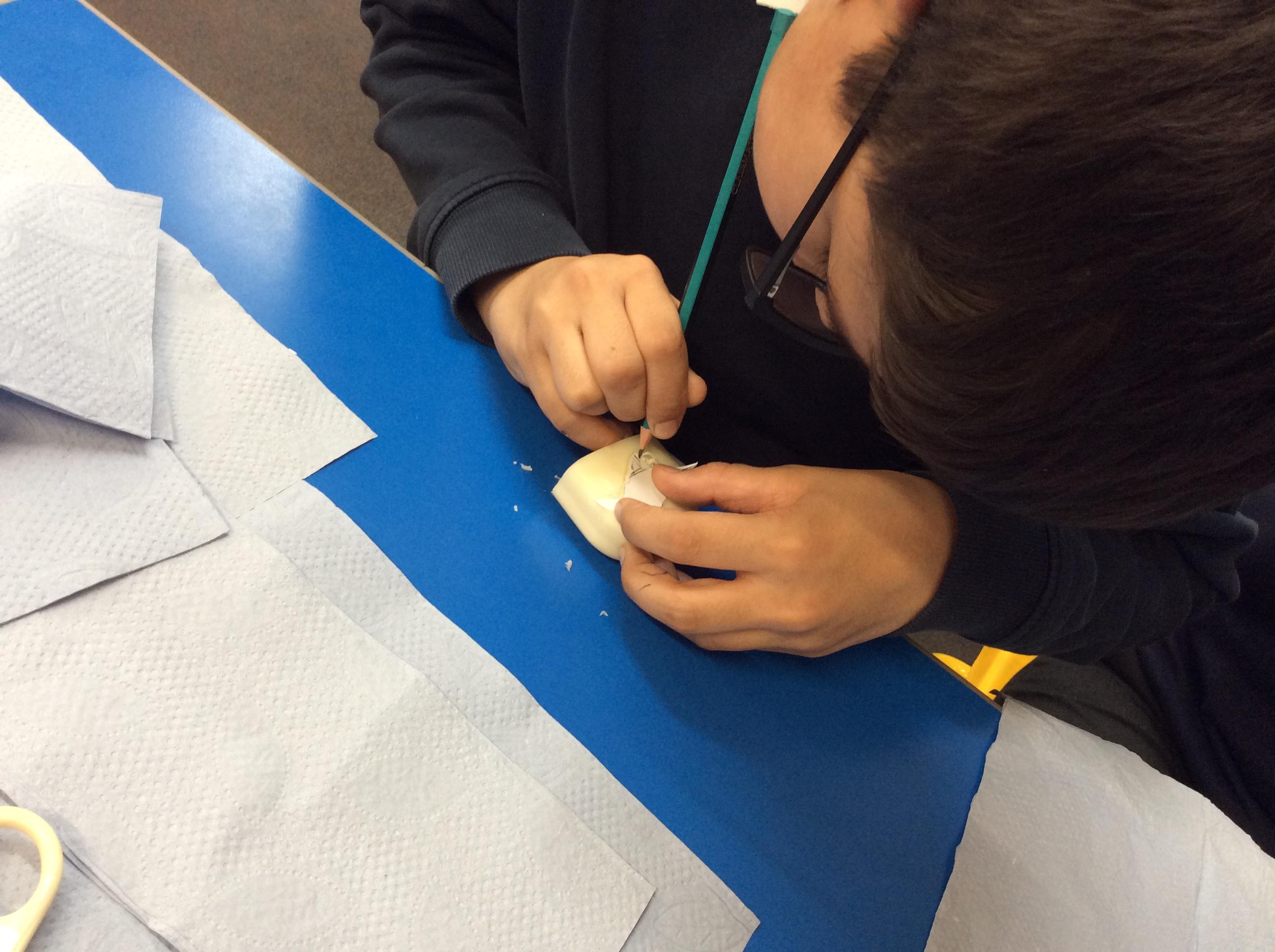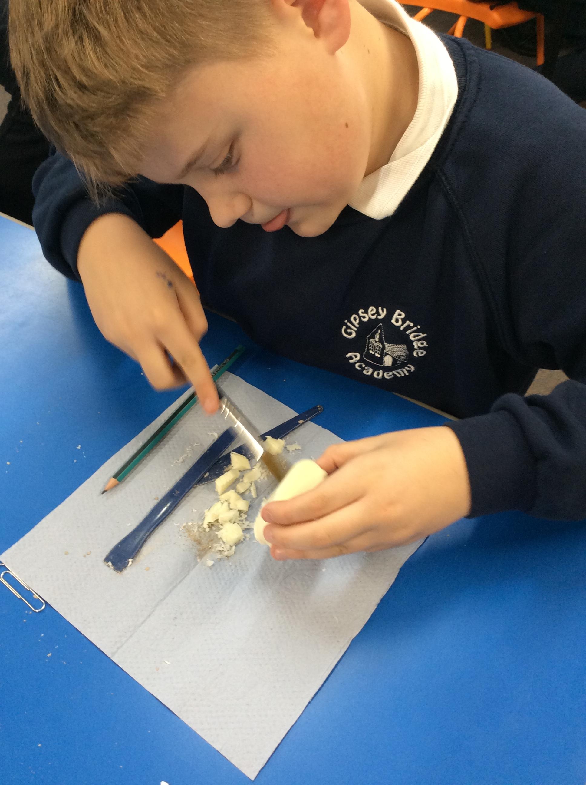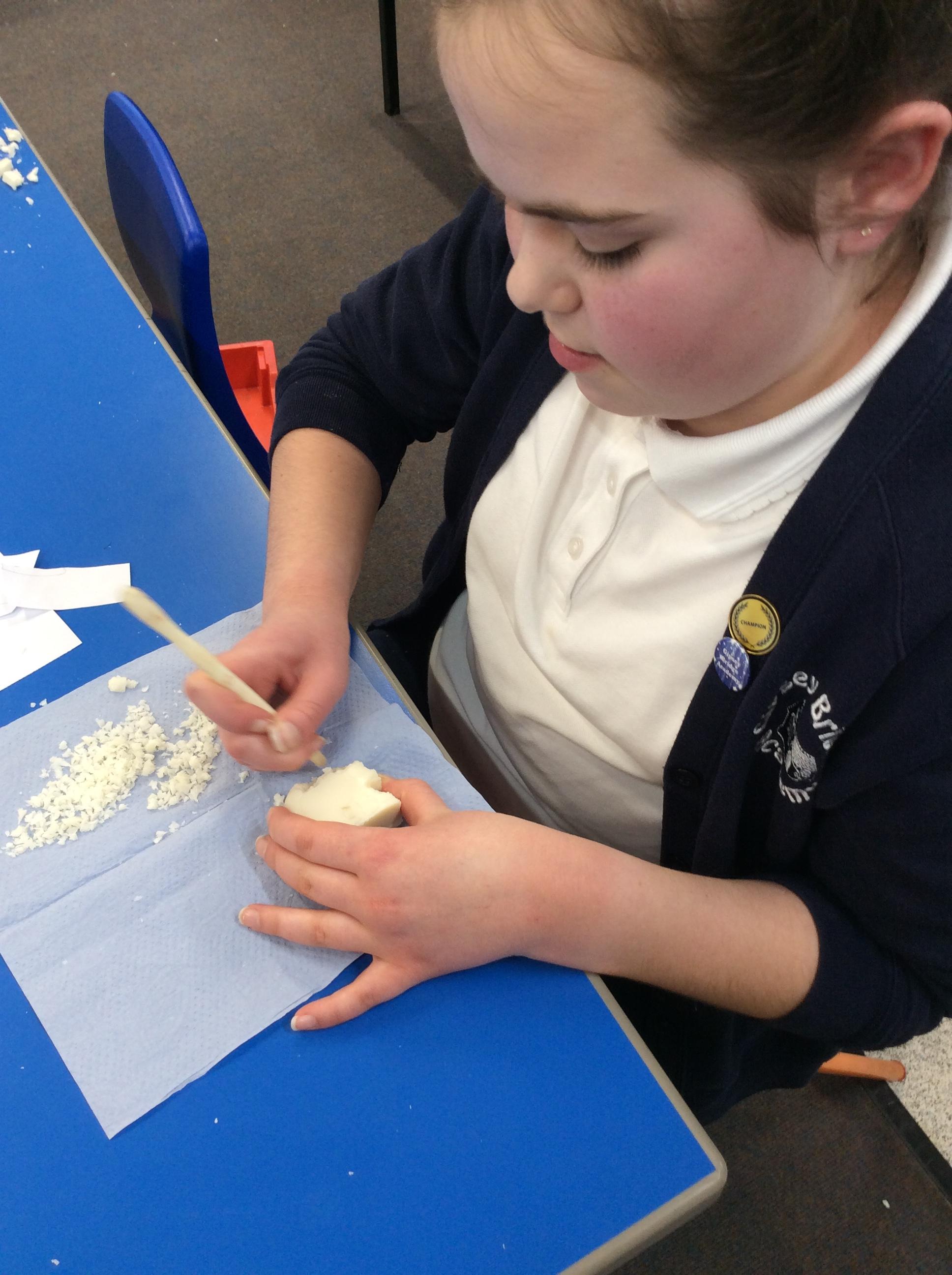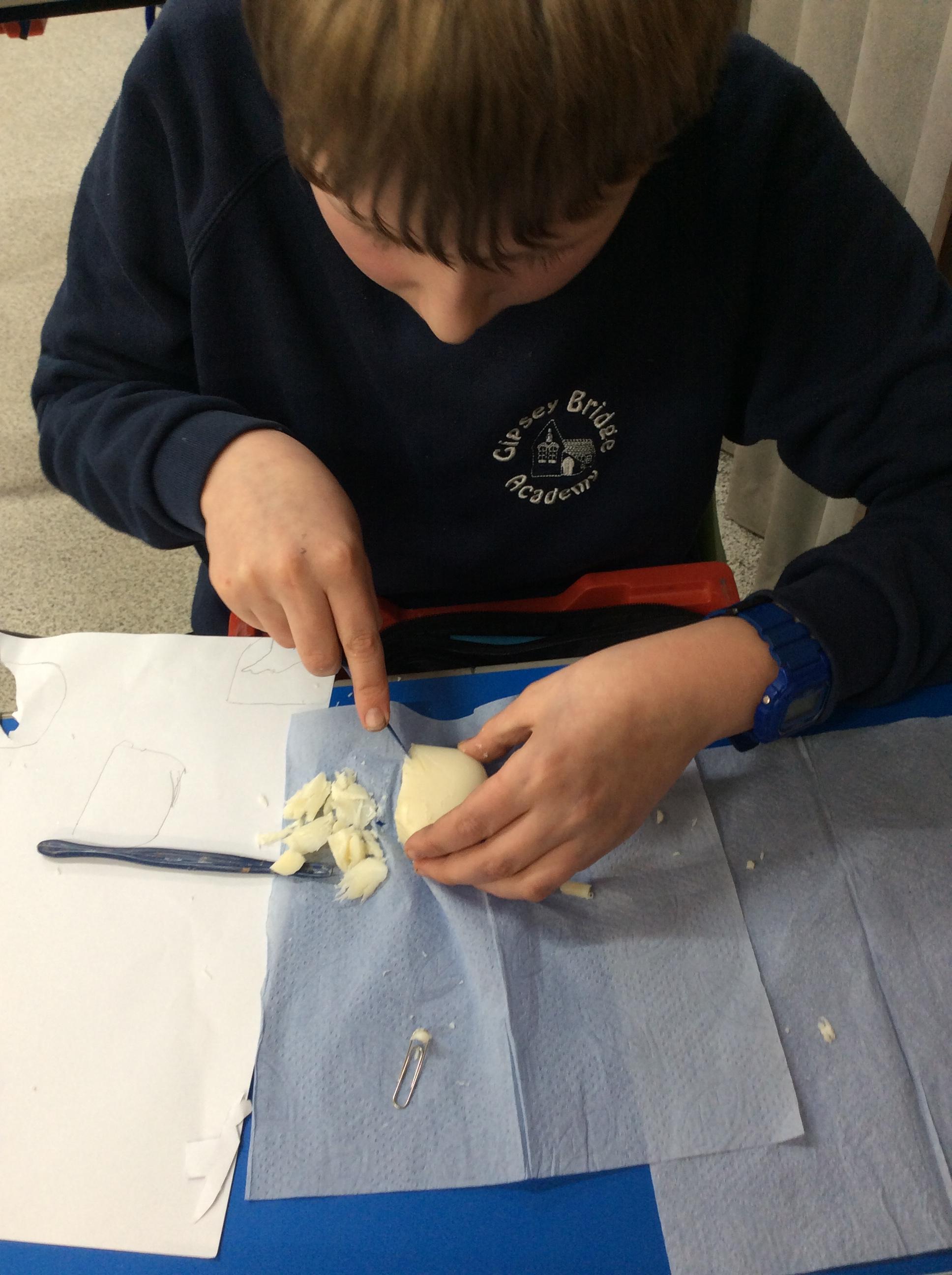 Last week, we researched different Inuit sculptures, thinking about the themes. This week, we put out research into action, using clay tools and bars of soap to create our own sculptures!