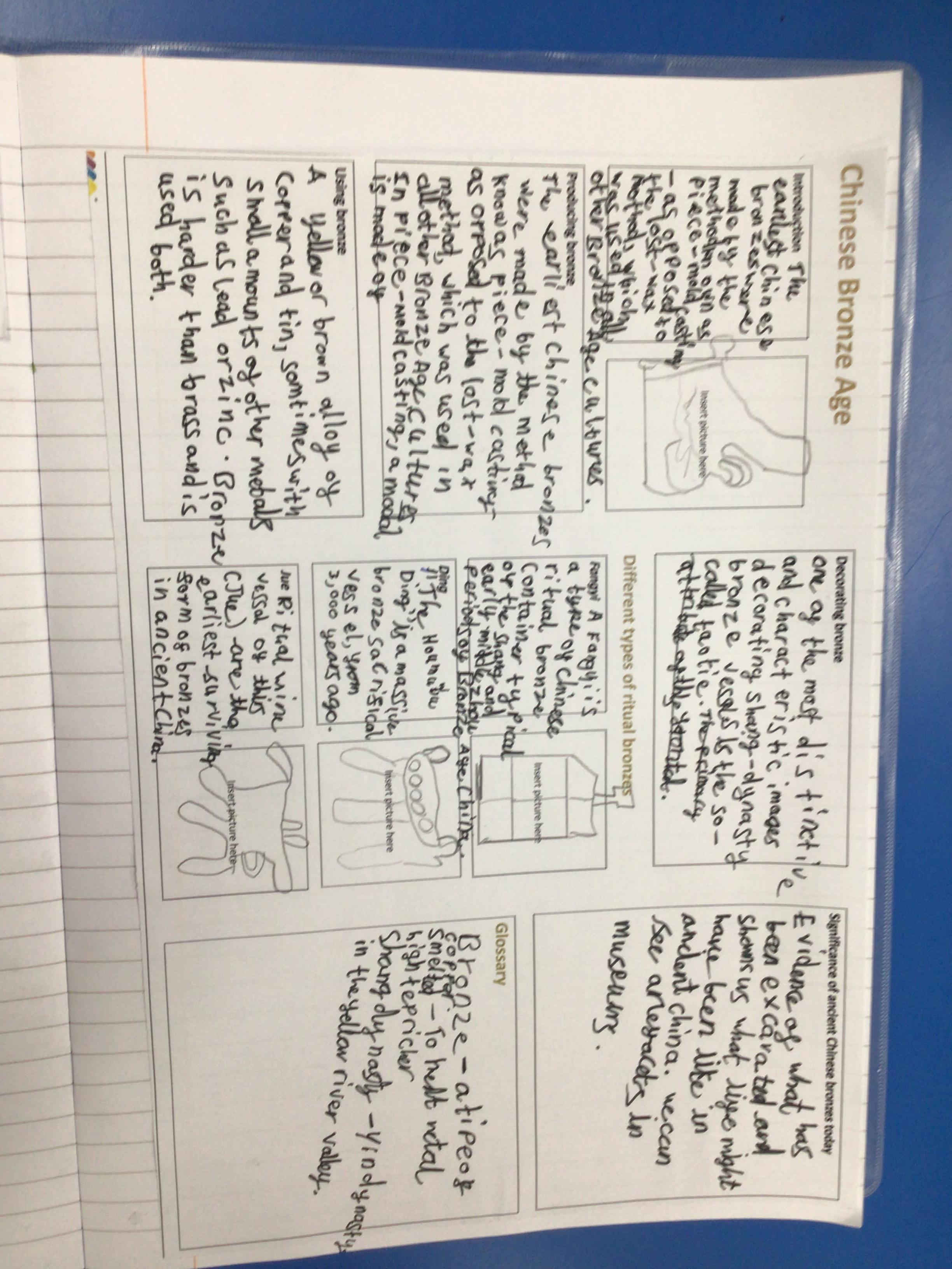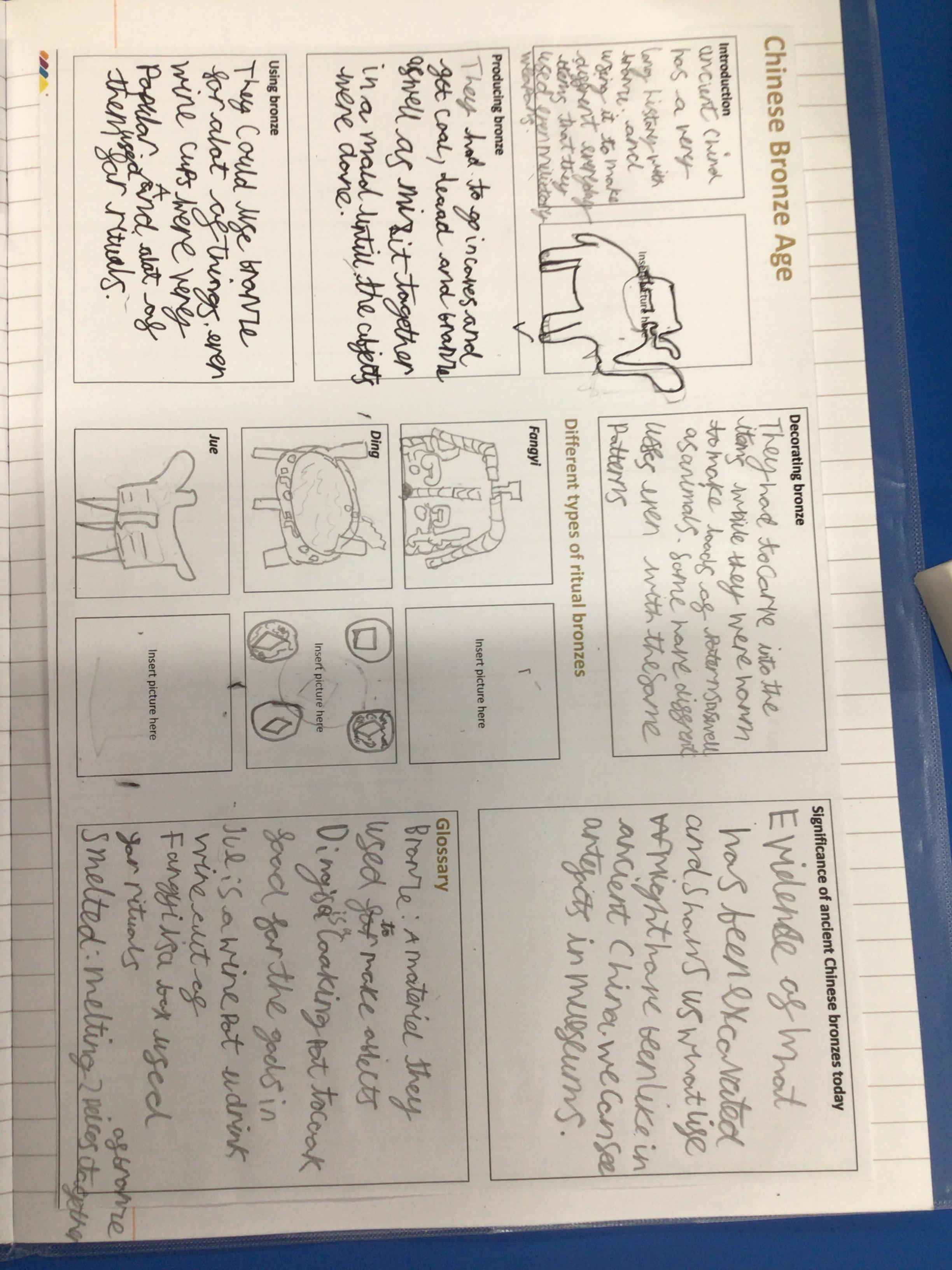 This week, the children have continued with history part of our Dynamic Dynasties project. They have been researching the significance of bronze in ancient China and created their own knowledge organiser for it.