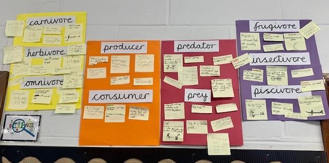 In Science, we have started thinking about the vocabulary associated with food chains, including 'predator', 'prey', 'consumer', 'producer', 'herbivore', 'carnivore', 'omnivore' and even 'insectivore', 'frugivore' and 'piscivore'!