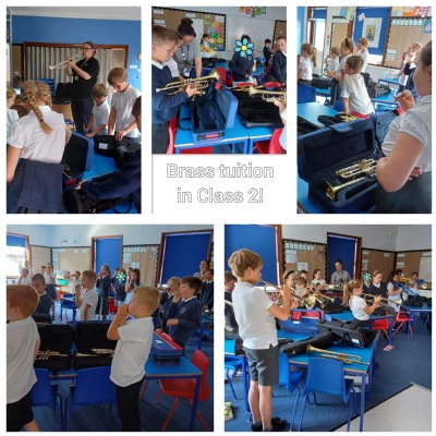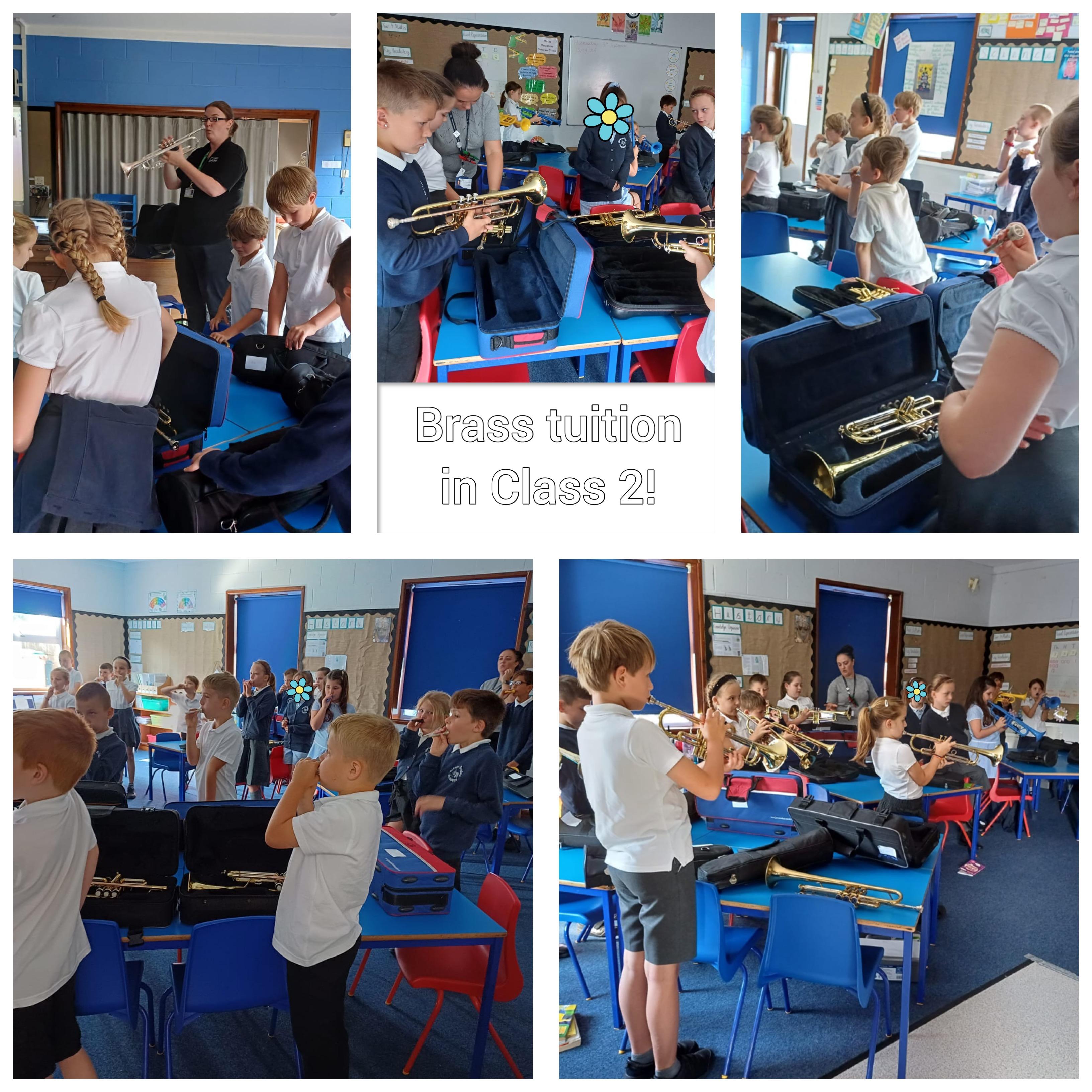 We have been lucky to participate in our new music lessons which involve brass instruments! We enjoyed exploring the instruments and having a go ourselves.