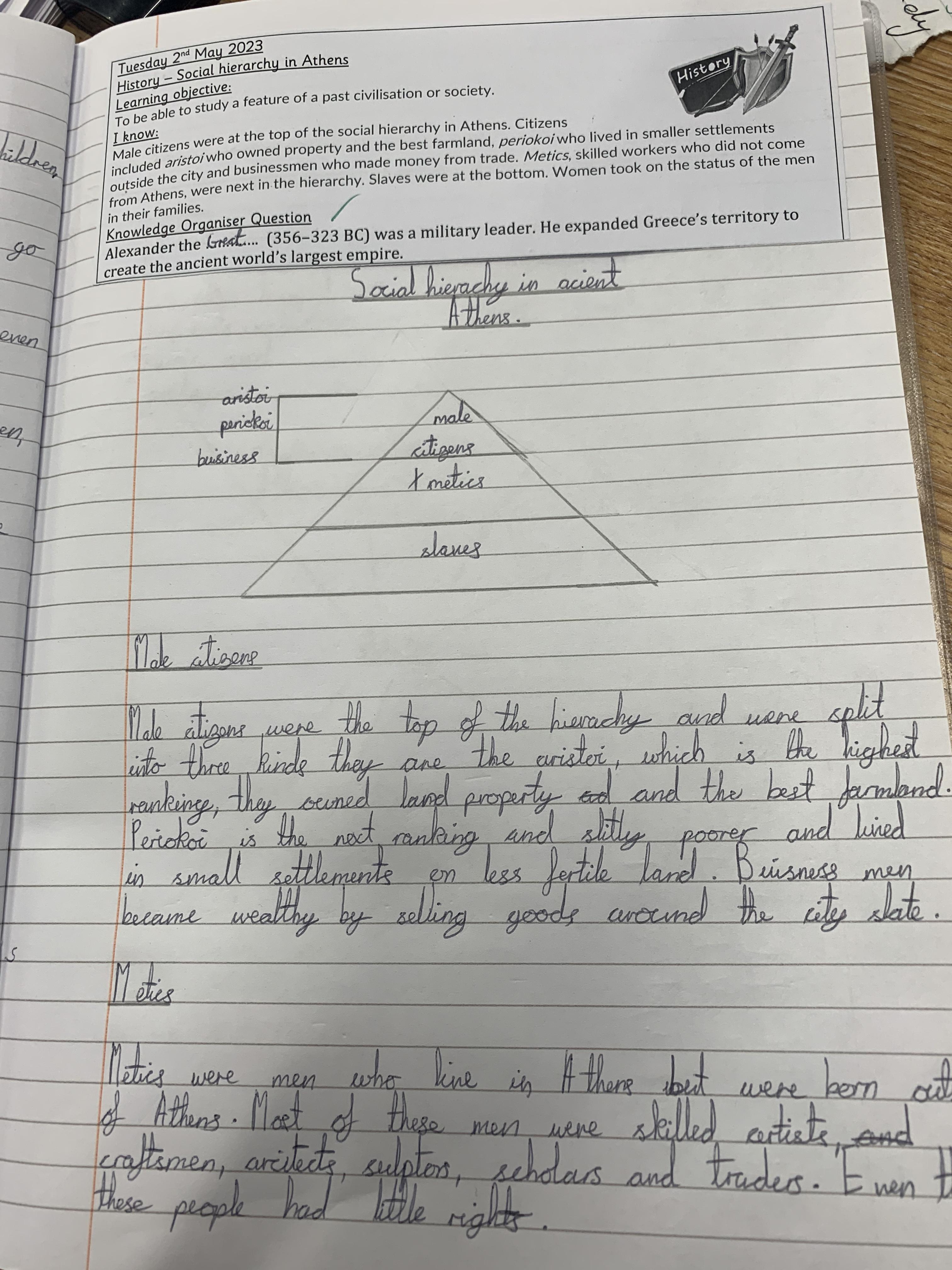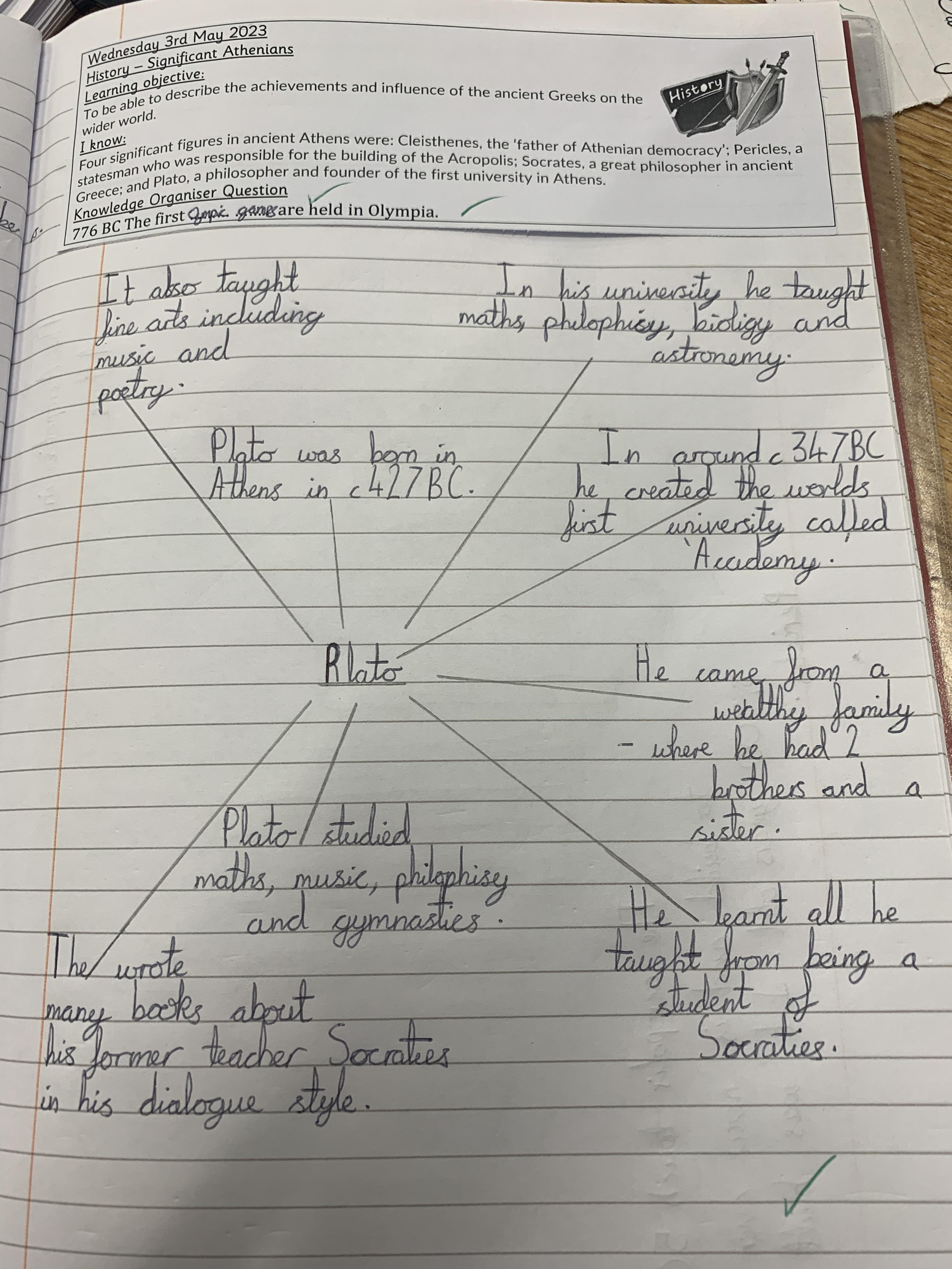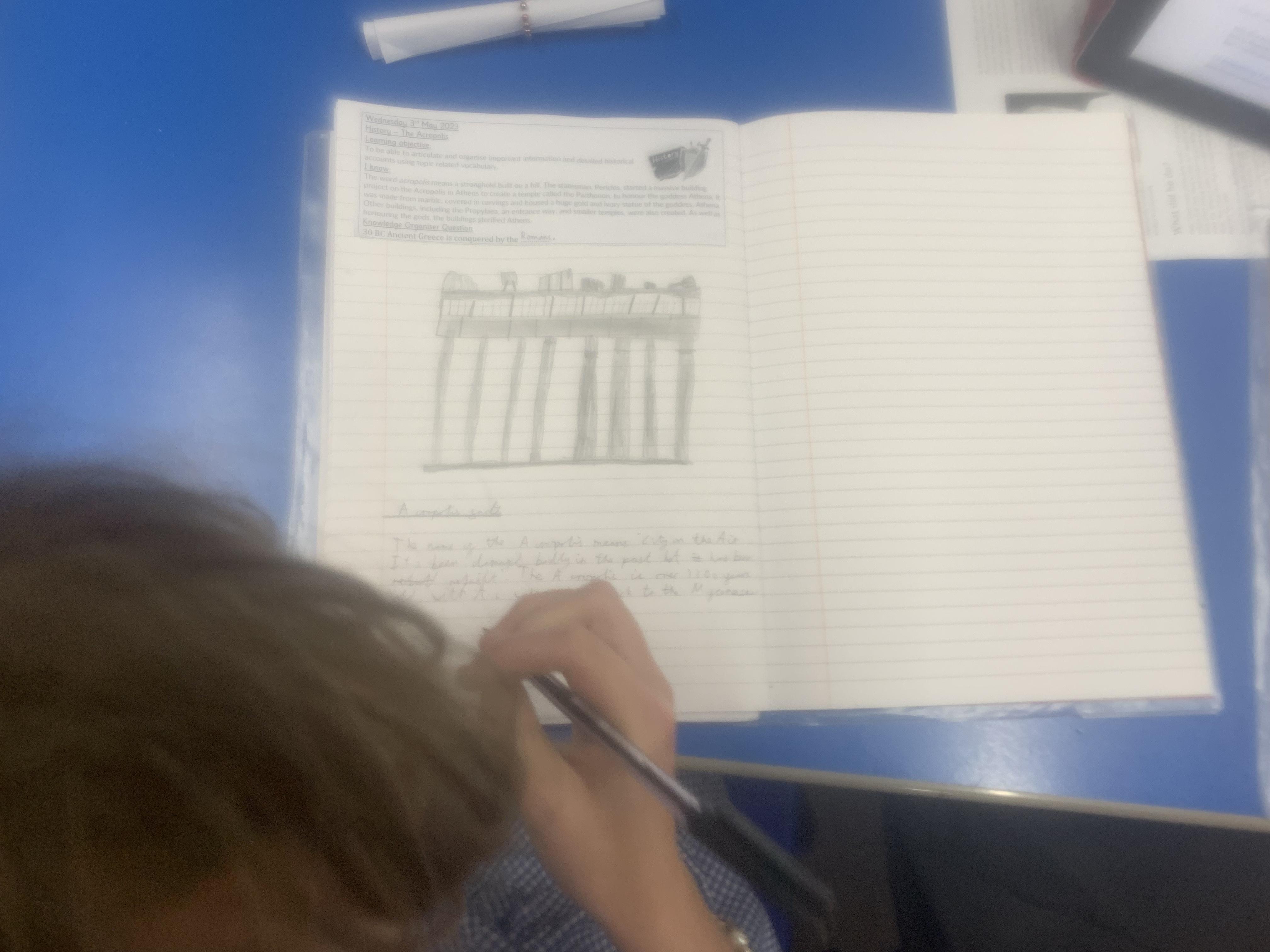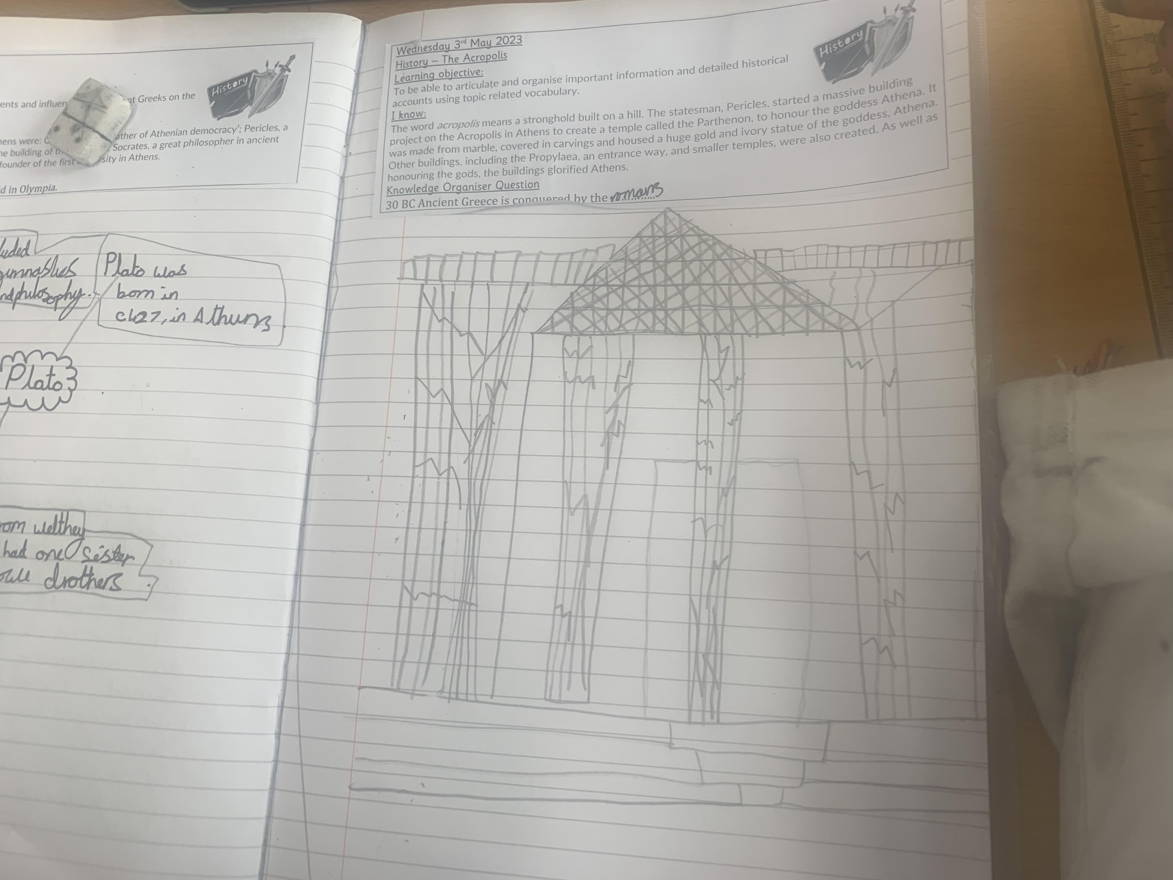In history, the children have been looking at the Roles of men and women in Athens and social hierarchy in Athens. They have also been looking at significant Athenians such as Plata, Socrates and Pericles and the Acropolis in Athens.