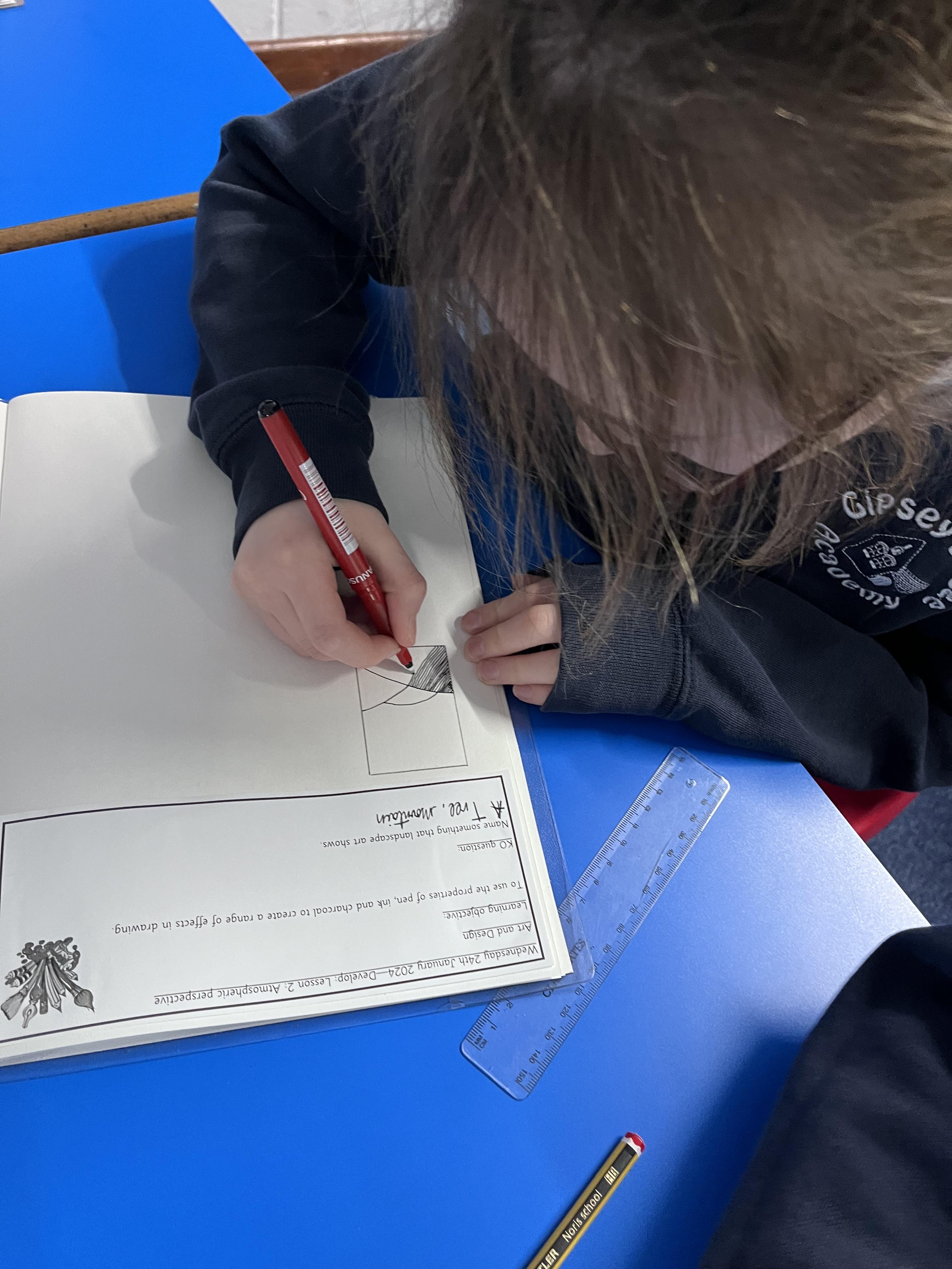 We explored Atmospheric Landscapes in Art this week, using different medias to create landscape images using the foreground, middle ground and background. We used pencils, watercolours and fine line pens to create illusions of space.