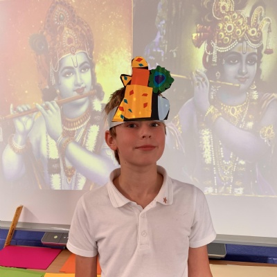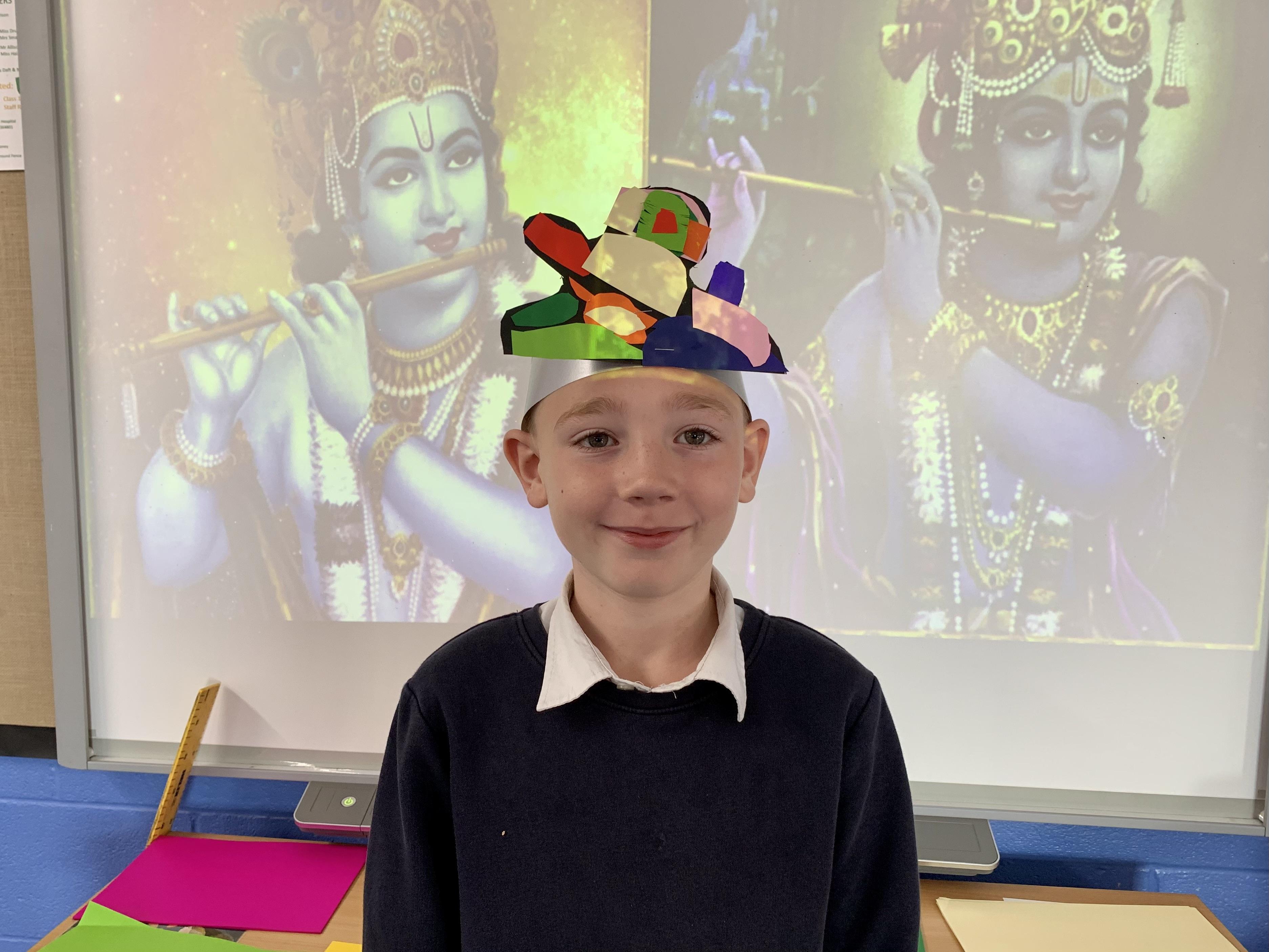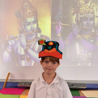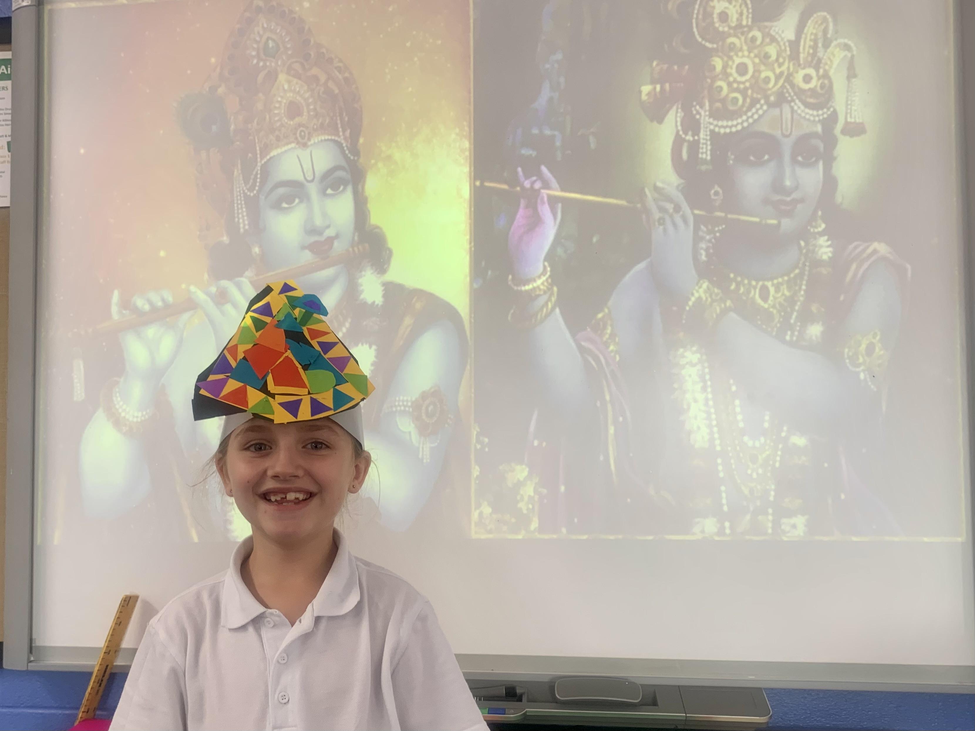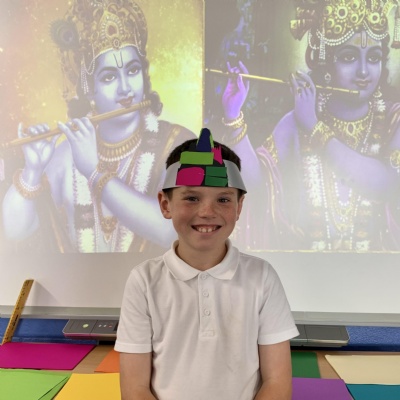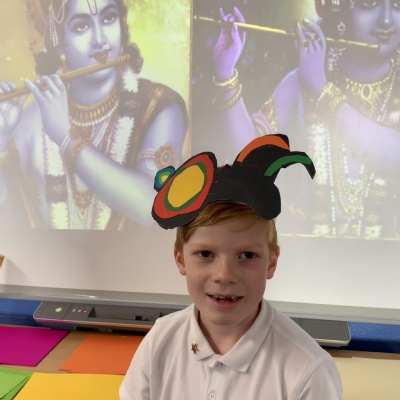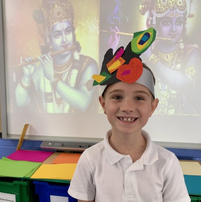 We have been learning about the Hindu celebration ‘Janmashtami’ this term. We have studied Lord Krishna, including the story of his birth and some of his 108 names. This week, we completed our own version of Krishna’s crown, which always includes a peacock feather, to symbolise beauty and grace. We went on to study some typical Hindu dances, before creating some of our own!