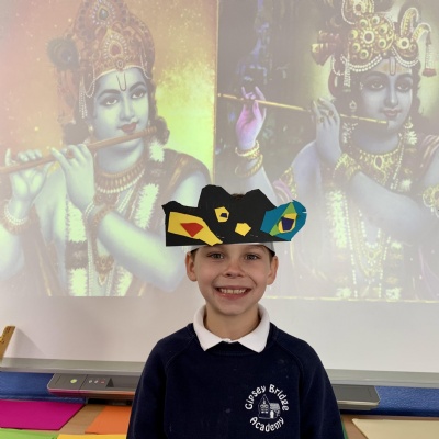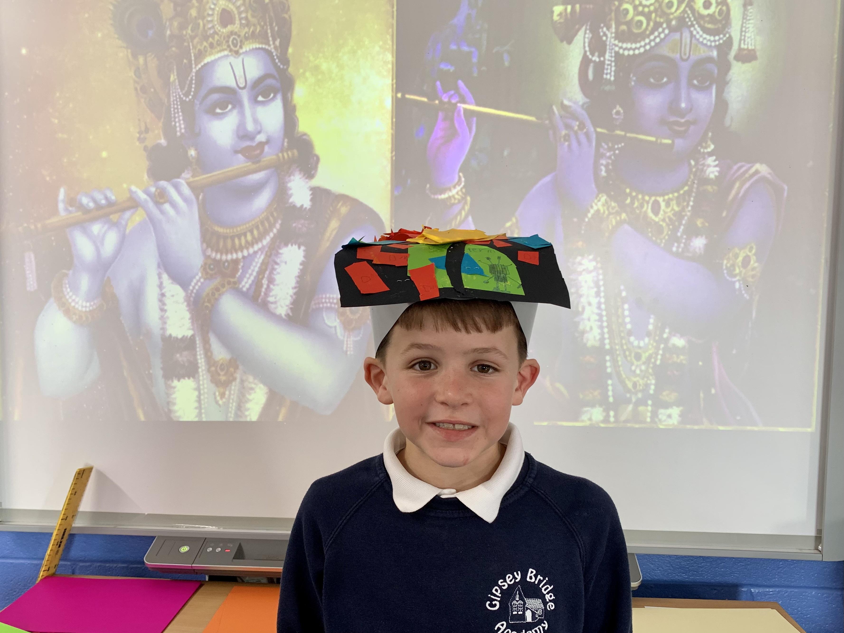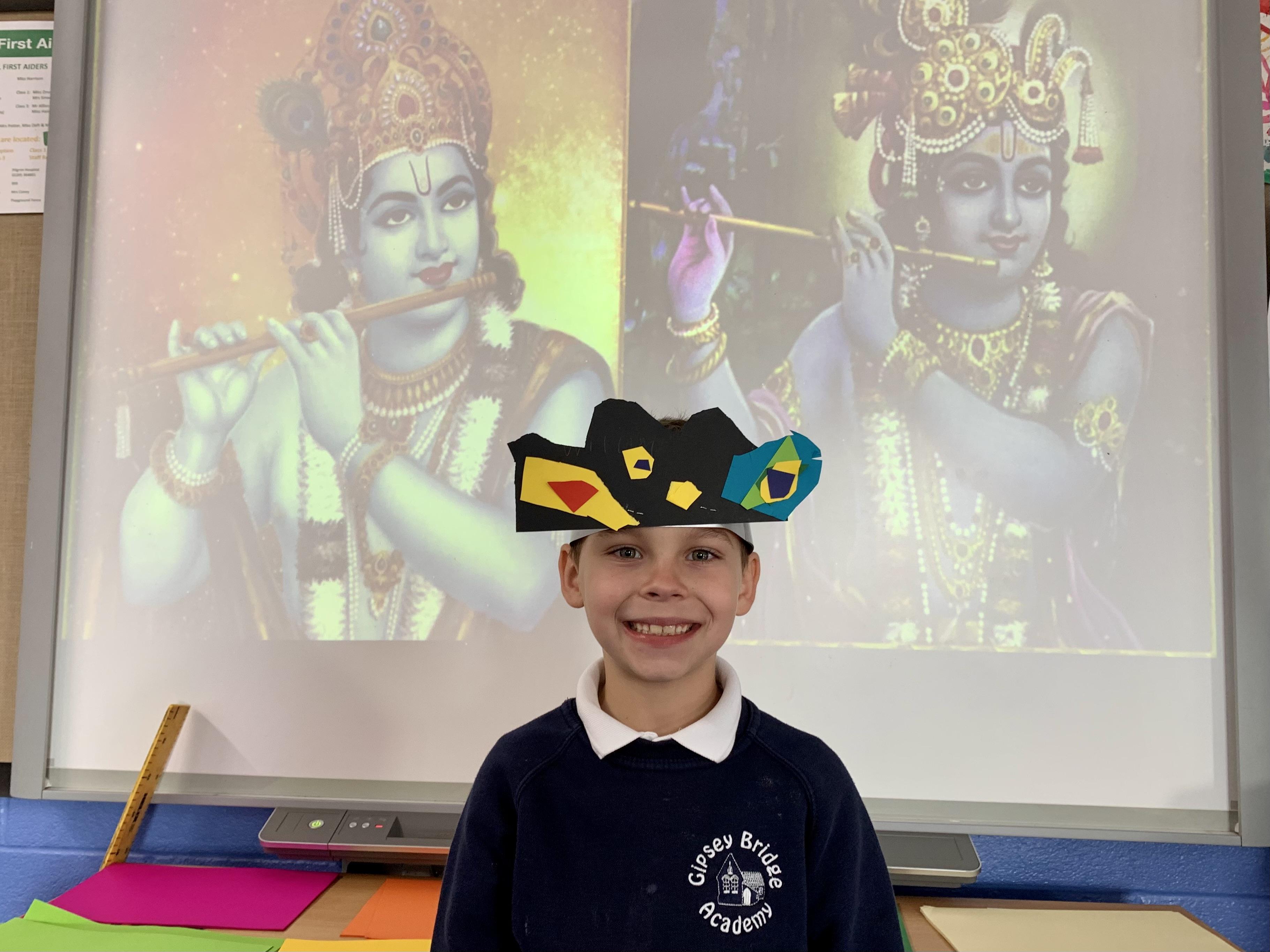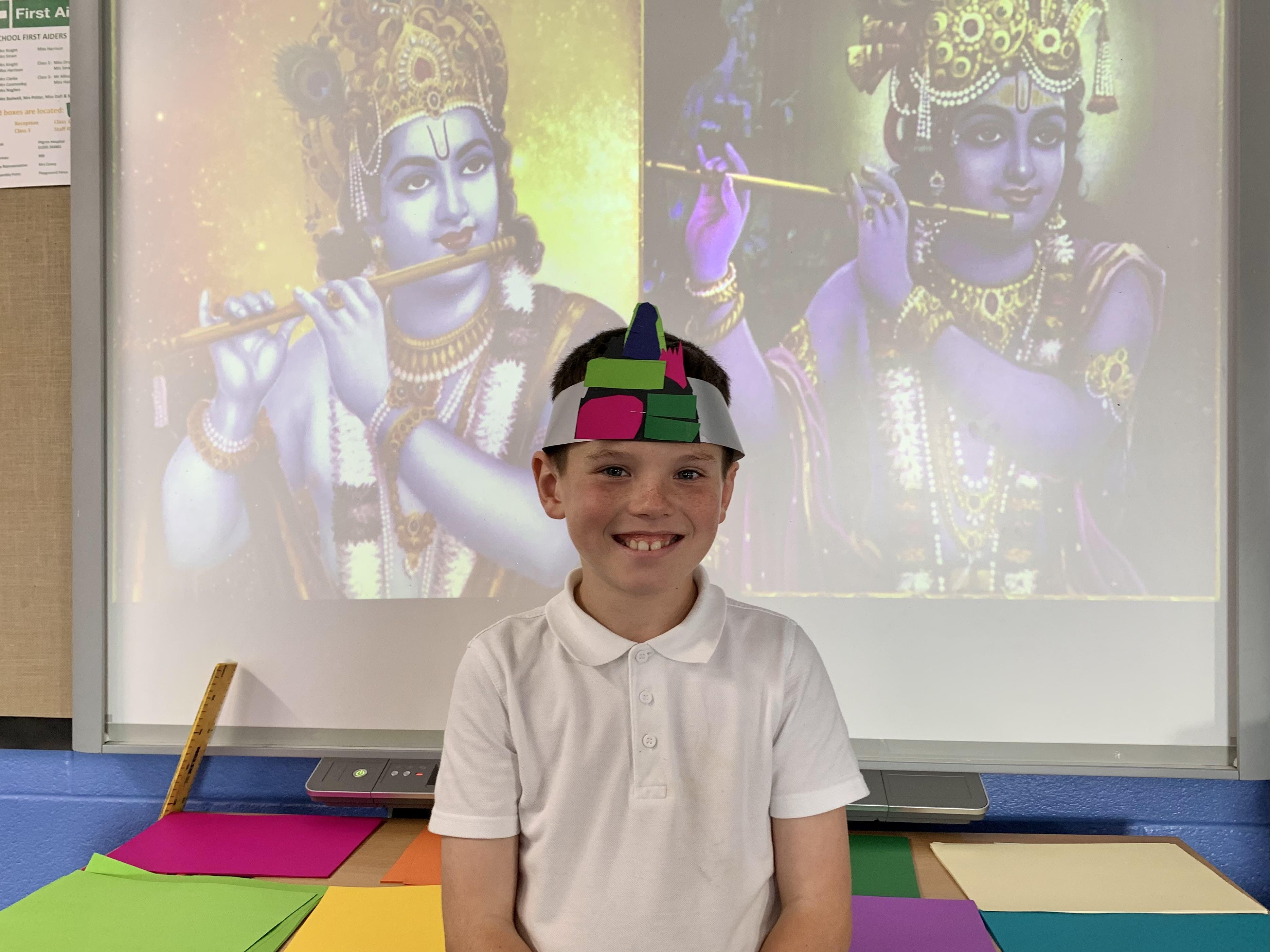We have been learning about the Hindu celebration ‘Janmashtami’ this term. We have studied Lord Krishna, including the story of his birth and some of his 108 names. This week, we completed our own version of Krishna’s crown, which always includes a peacock feather, to symbolise beauty and grace. We went on to study some typical Hindu dances, before creating some of our own!