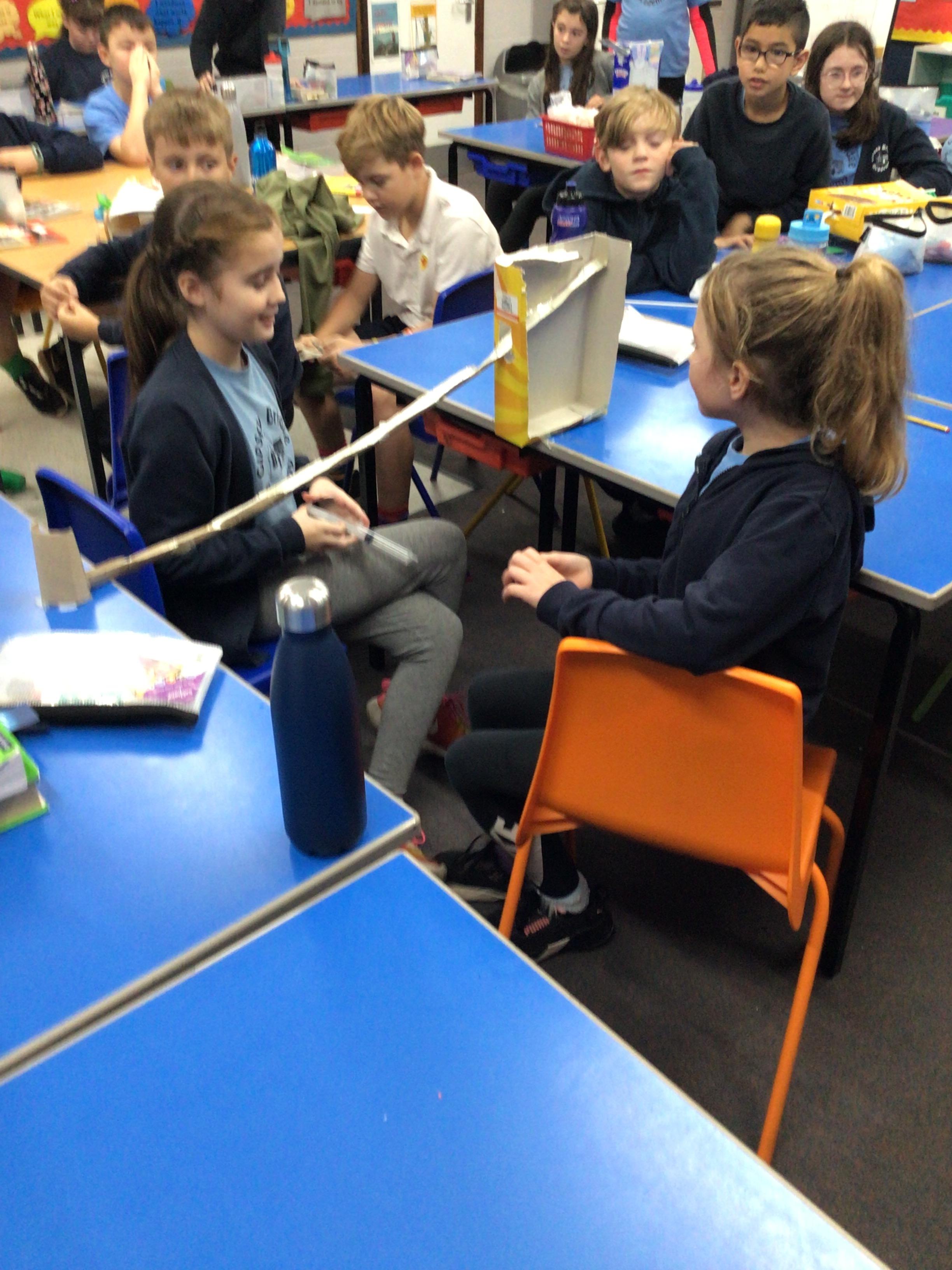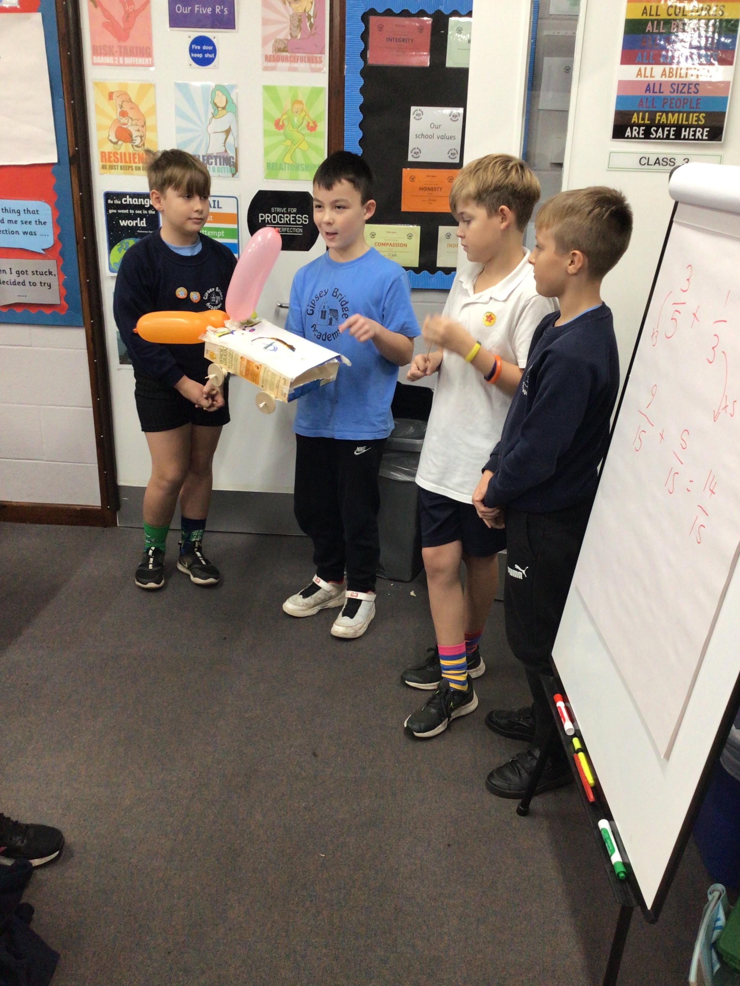 The children were tasked with making a useful object or game that could be powered by compressed air. For this, they had to use a balloon, syringe or plastic pipe to make their object or game move.