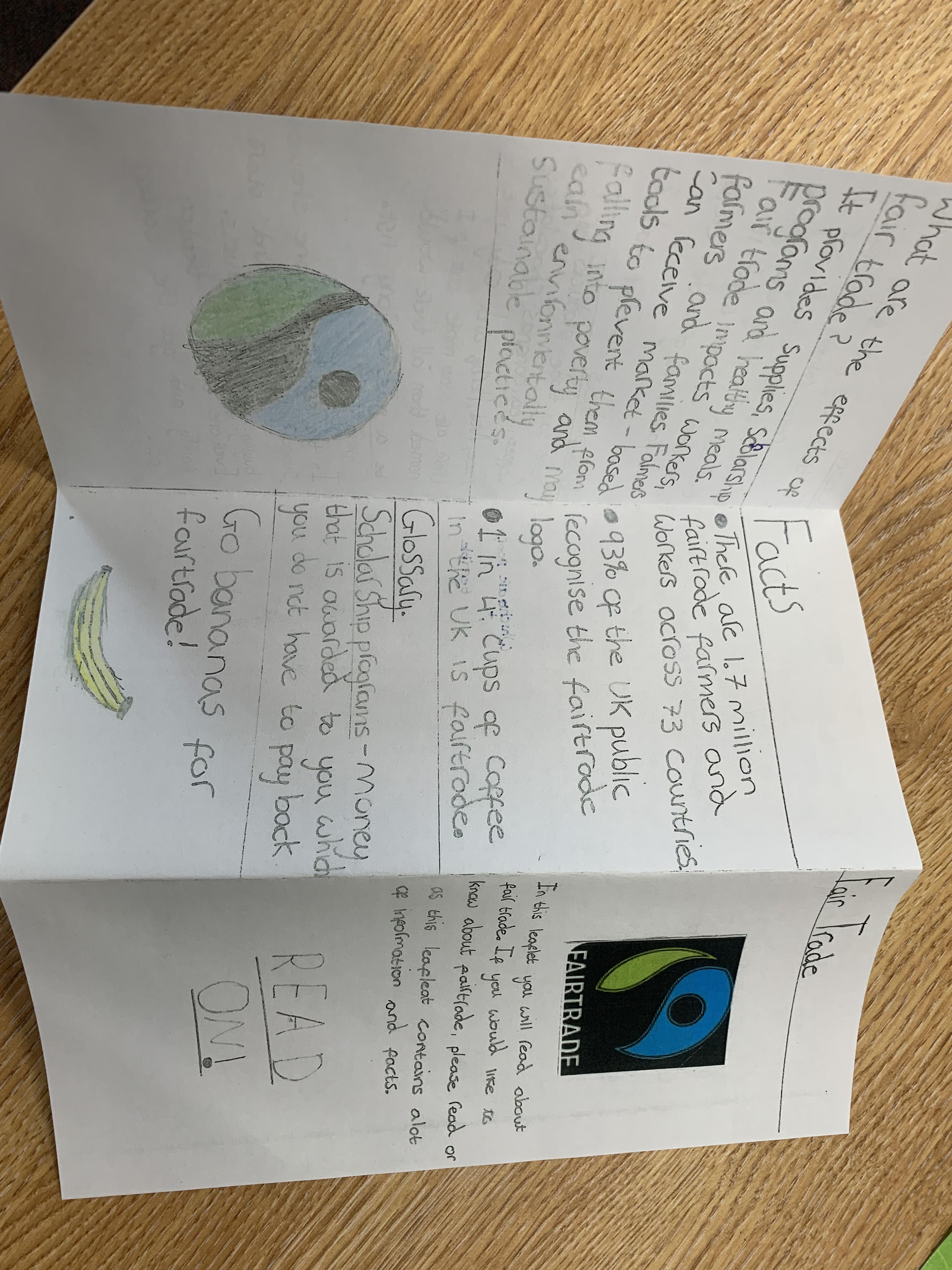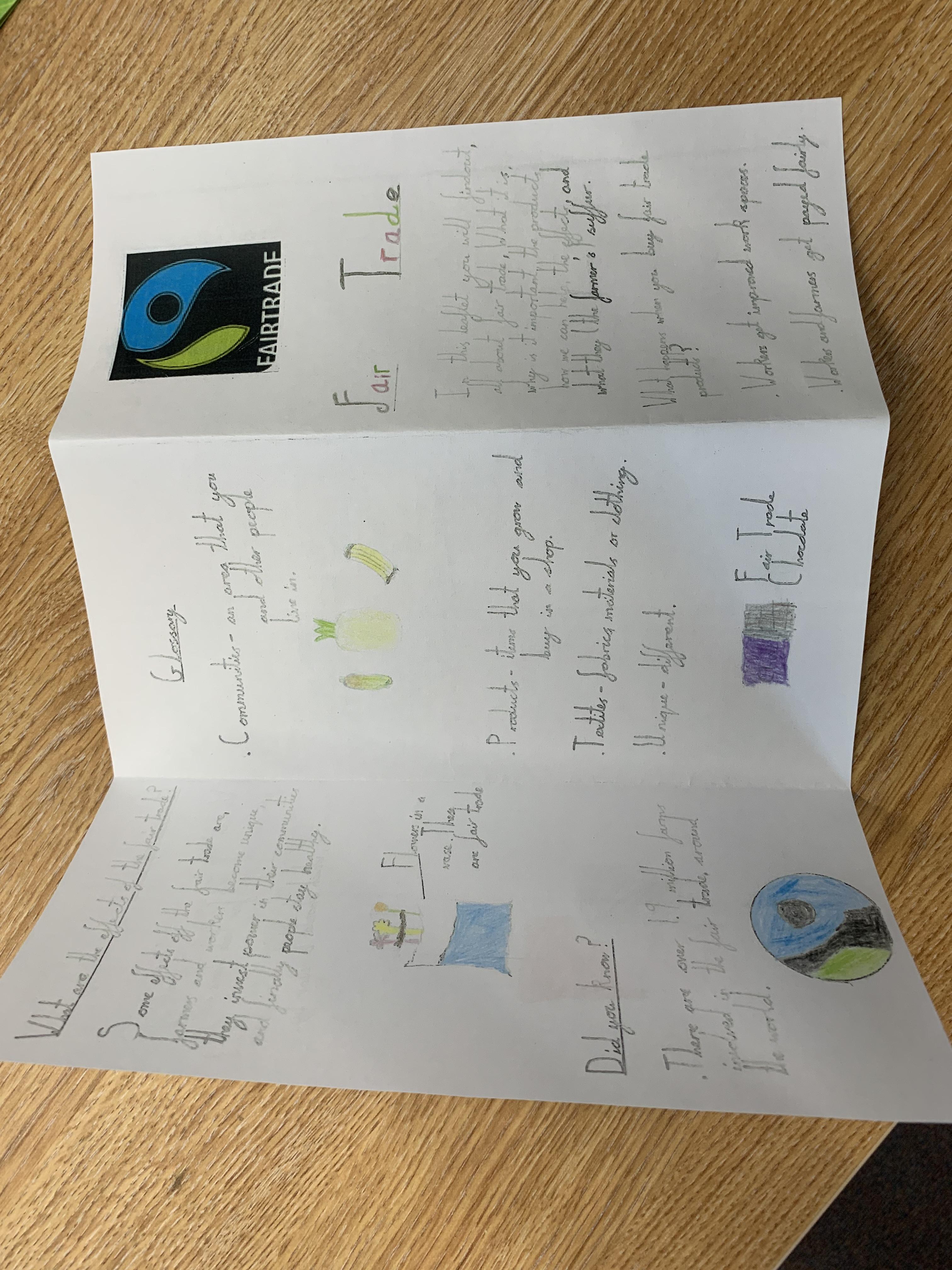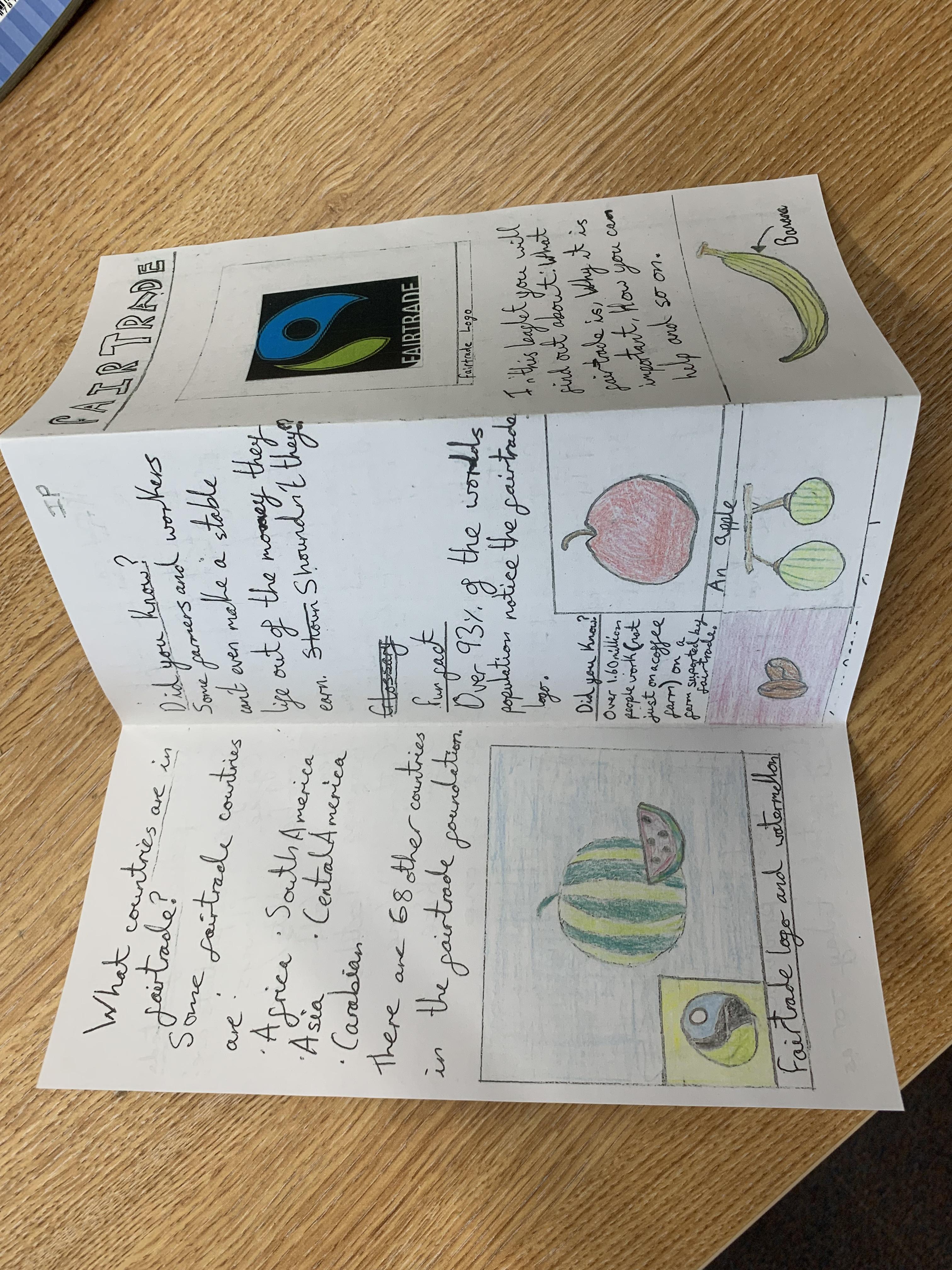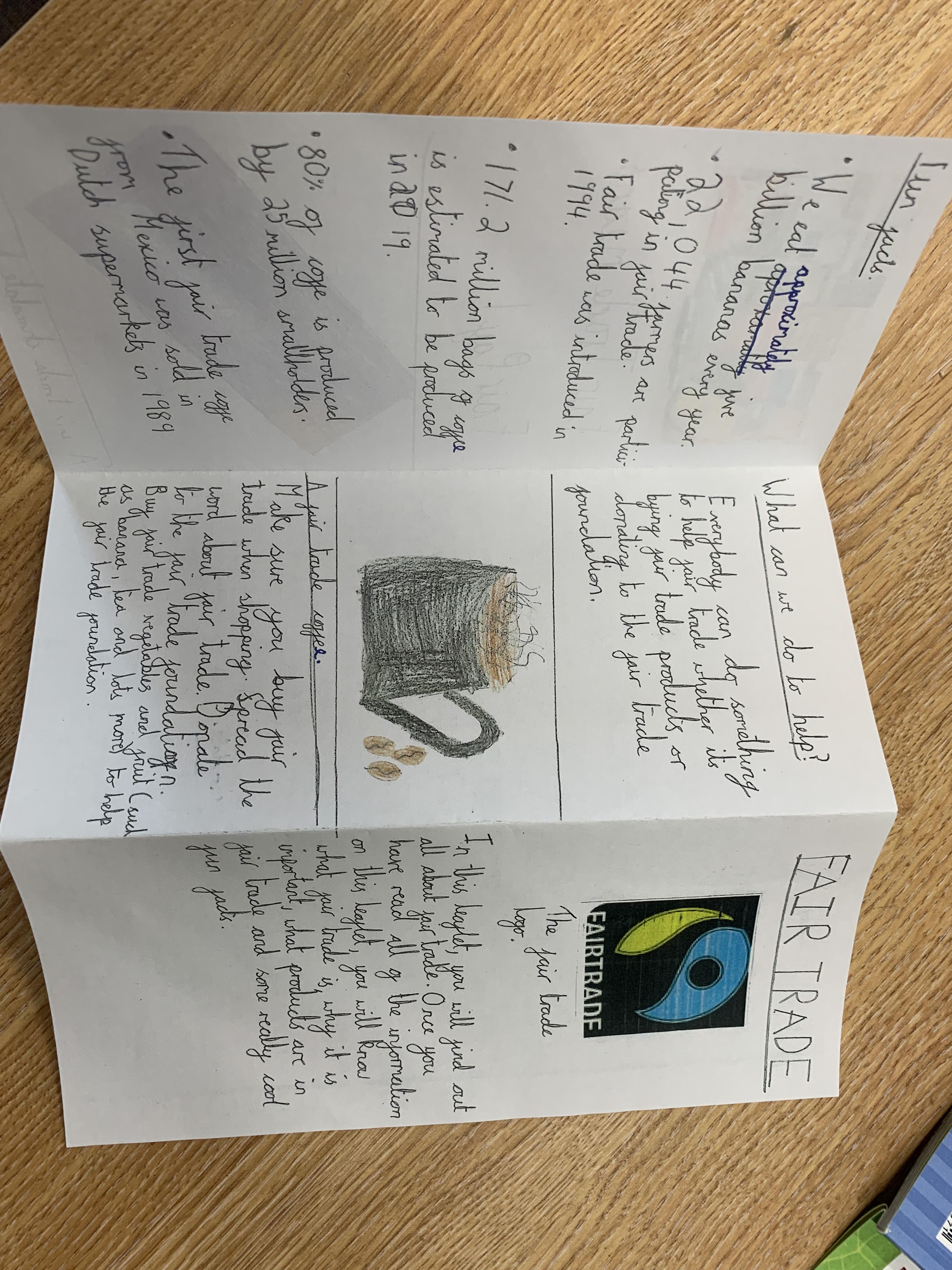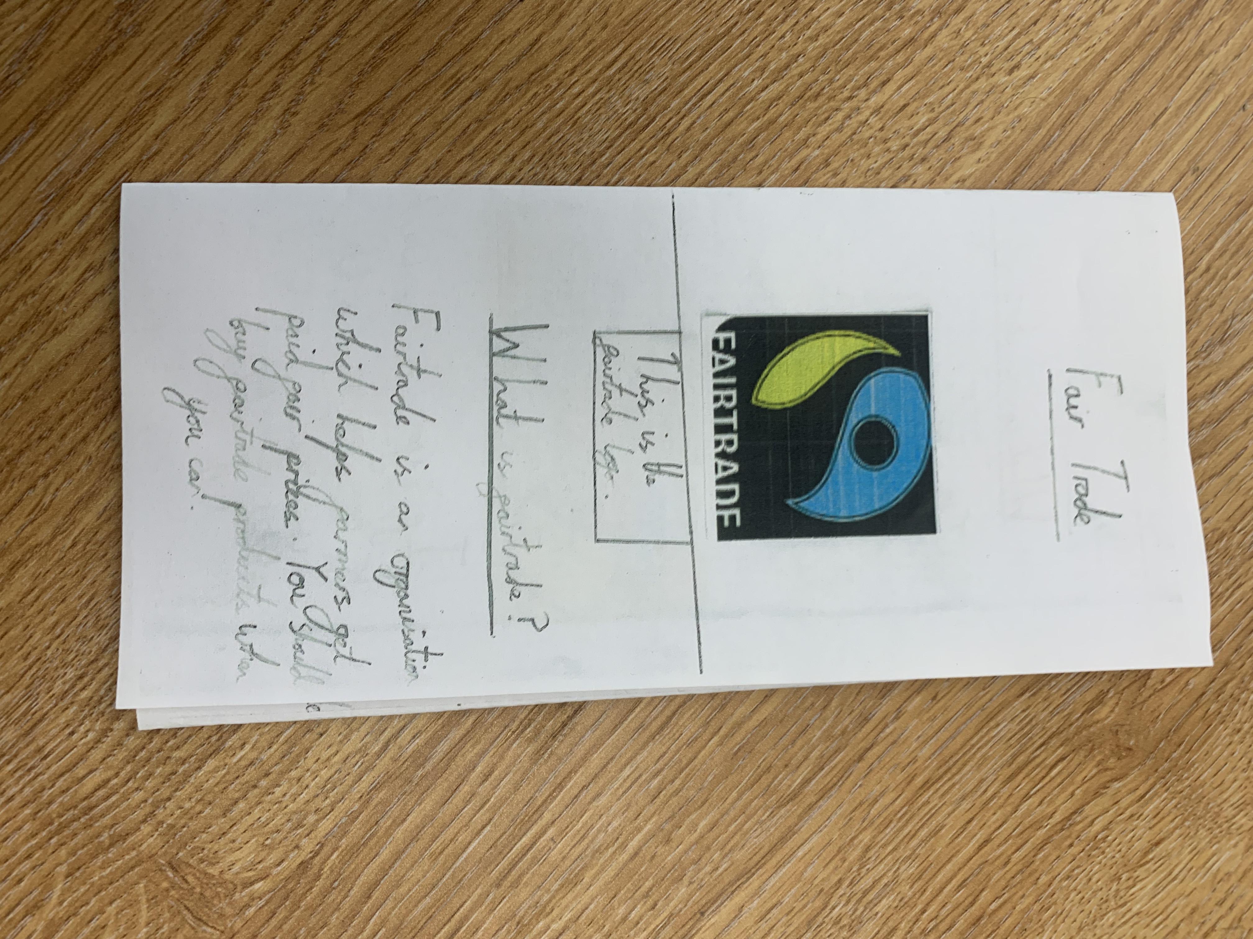 In literacy, the children looked at leaflets ready to write their own about Fair Trade.