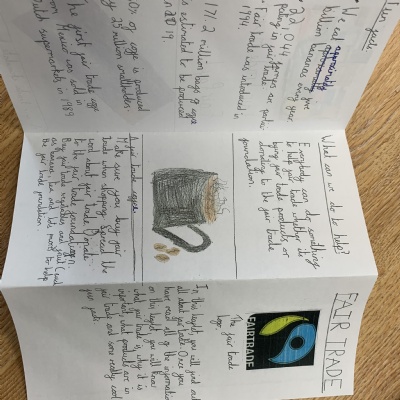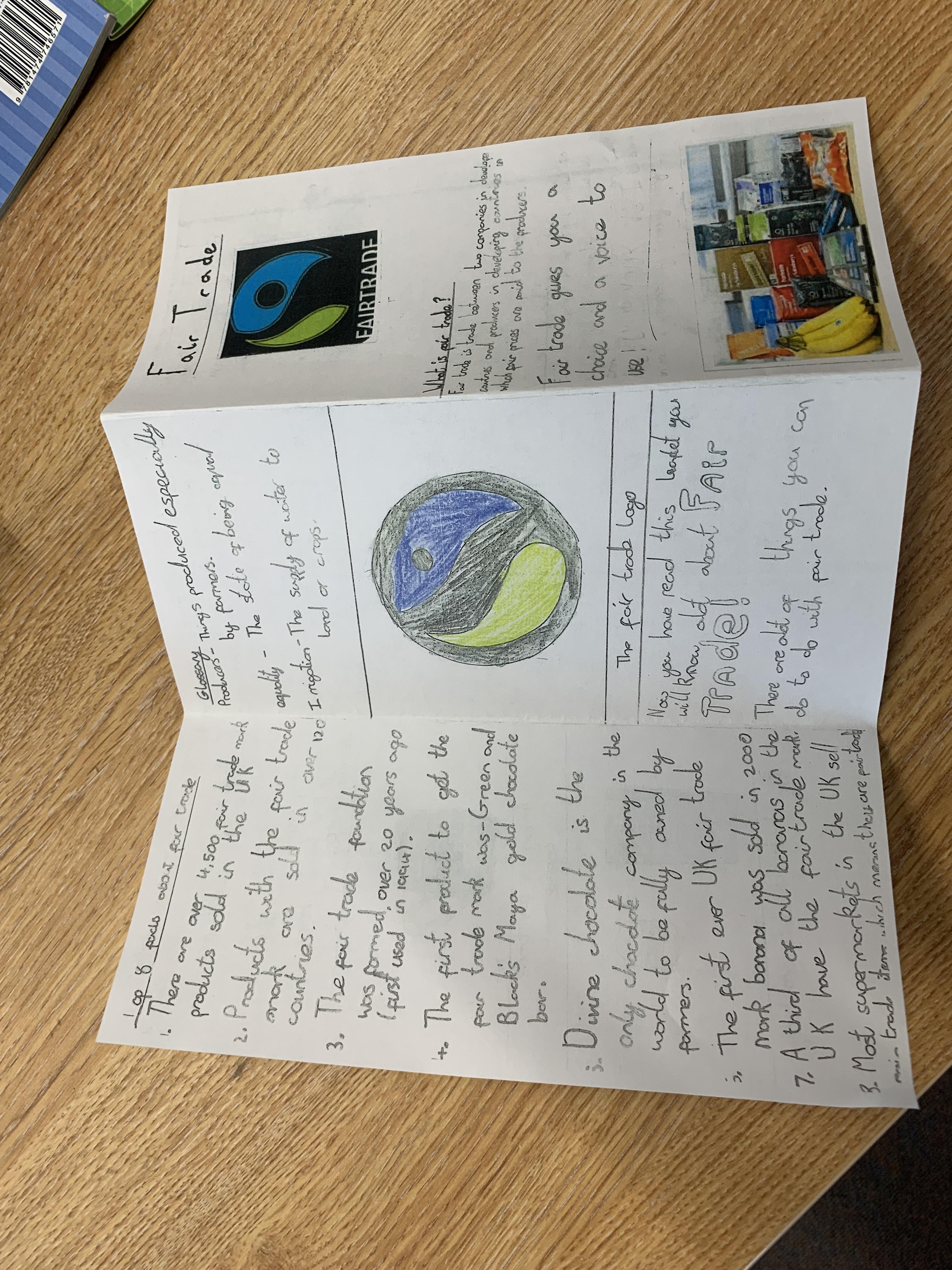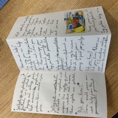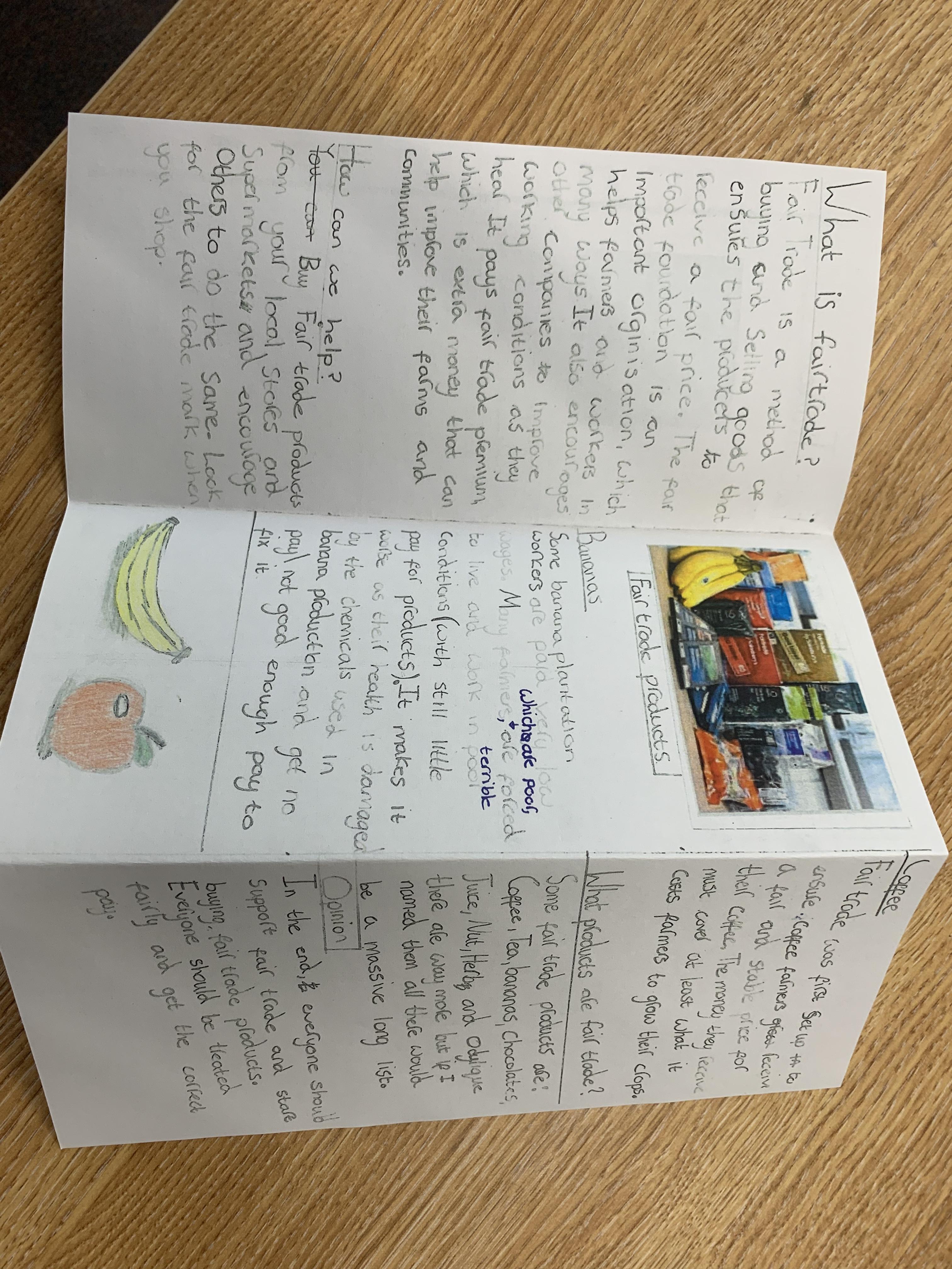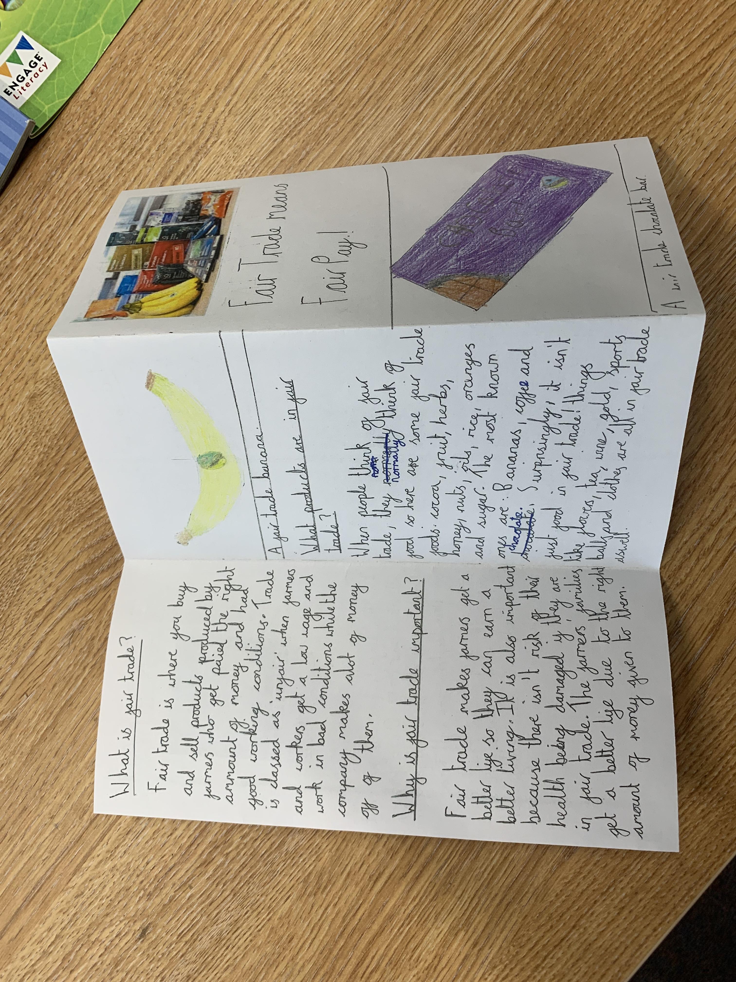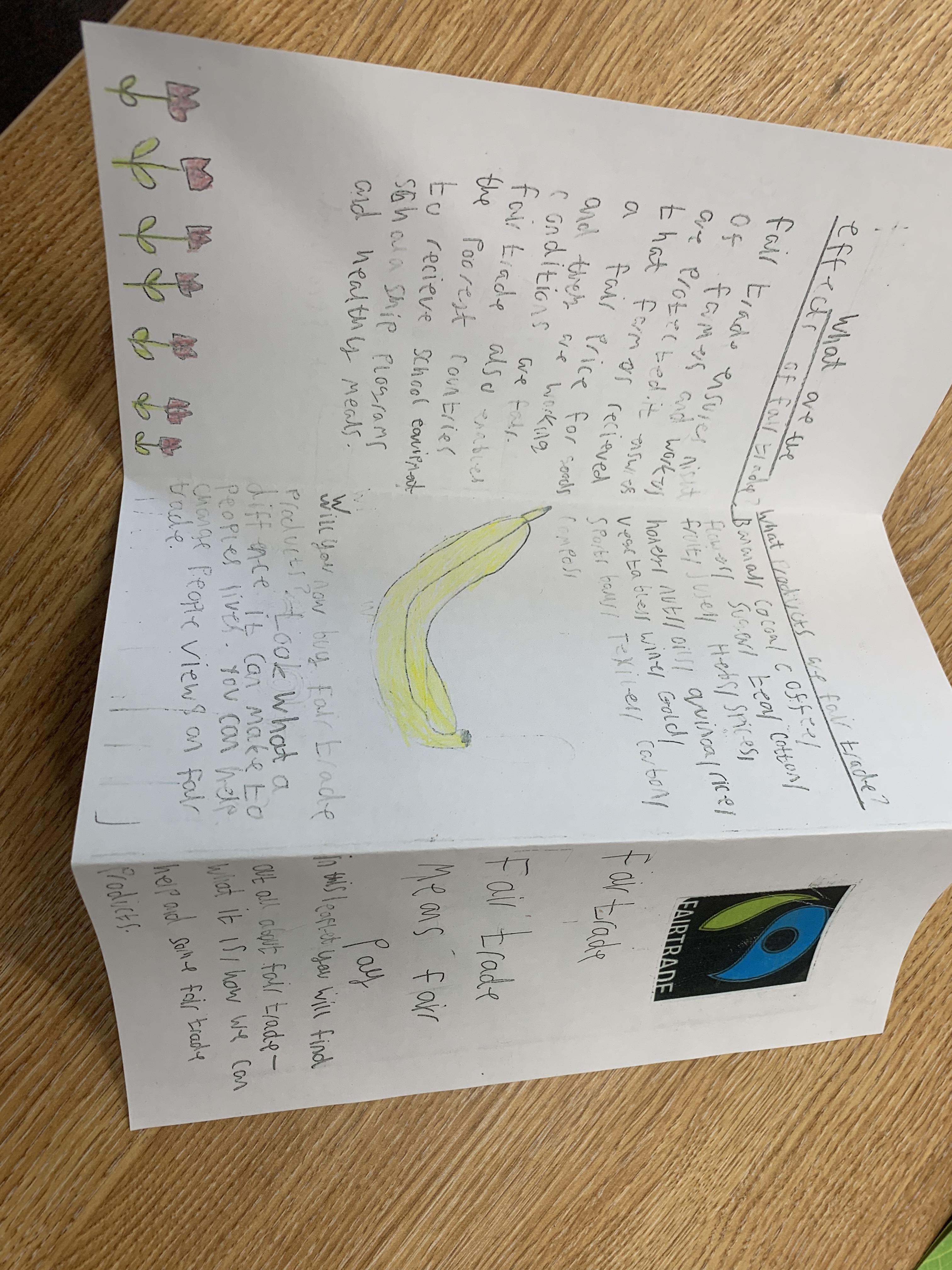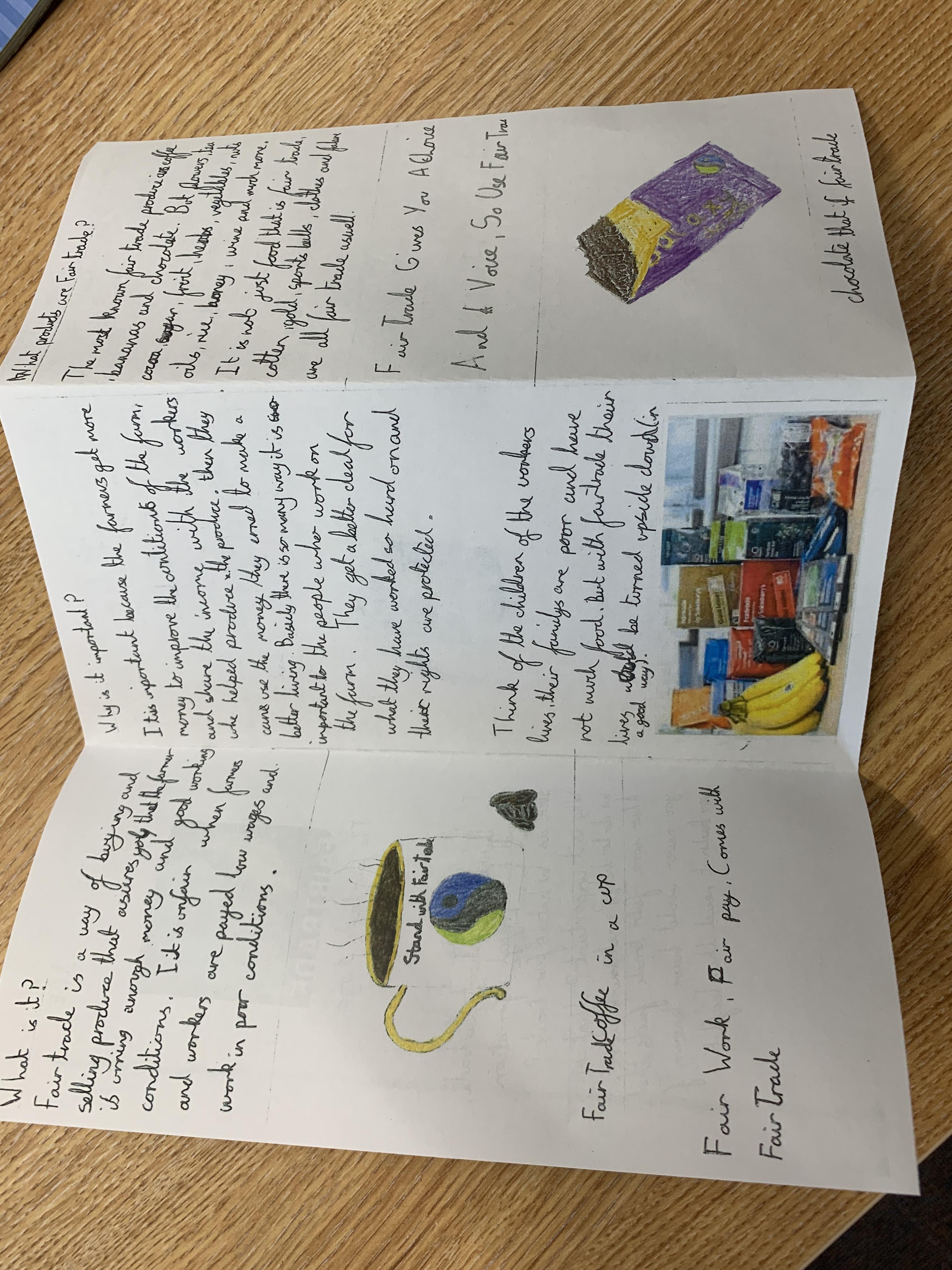 In literacy, the children looked at leaflets ready to write their own about Fair Trade.