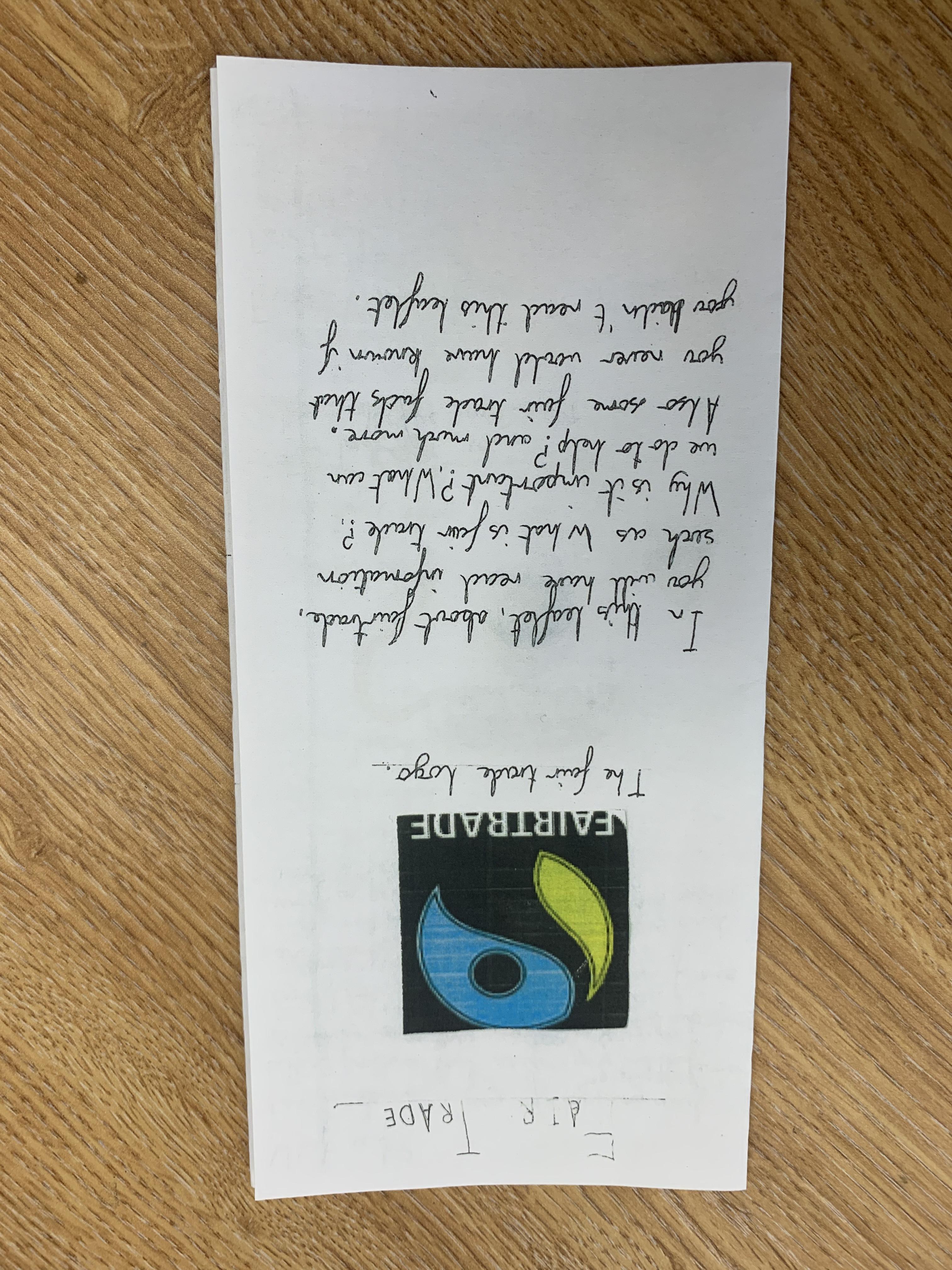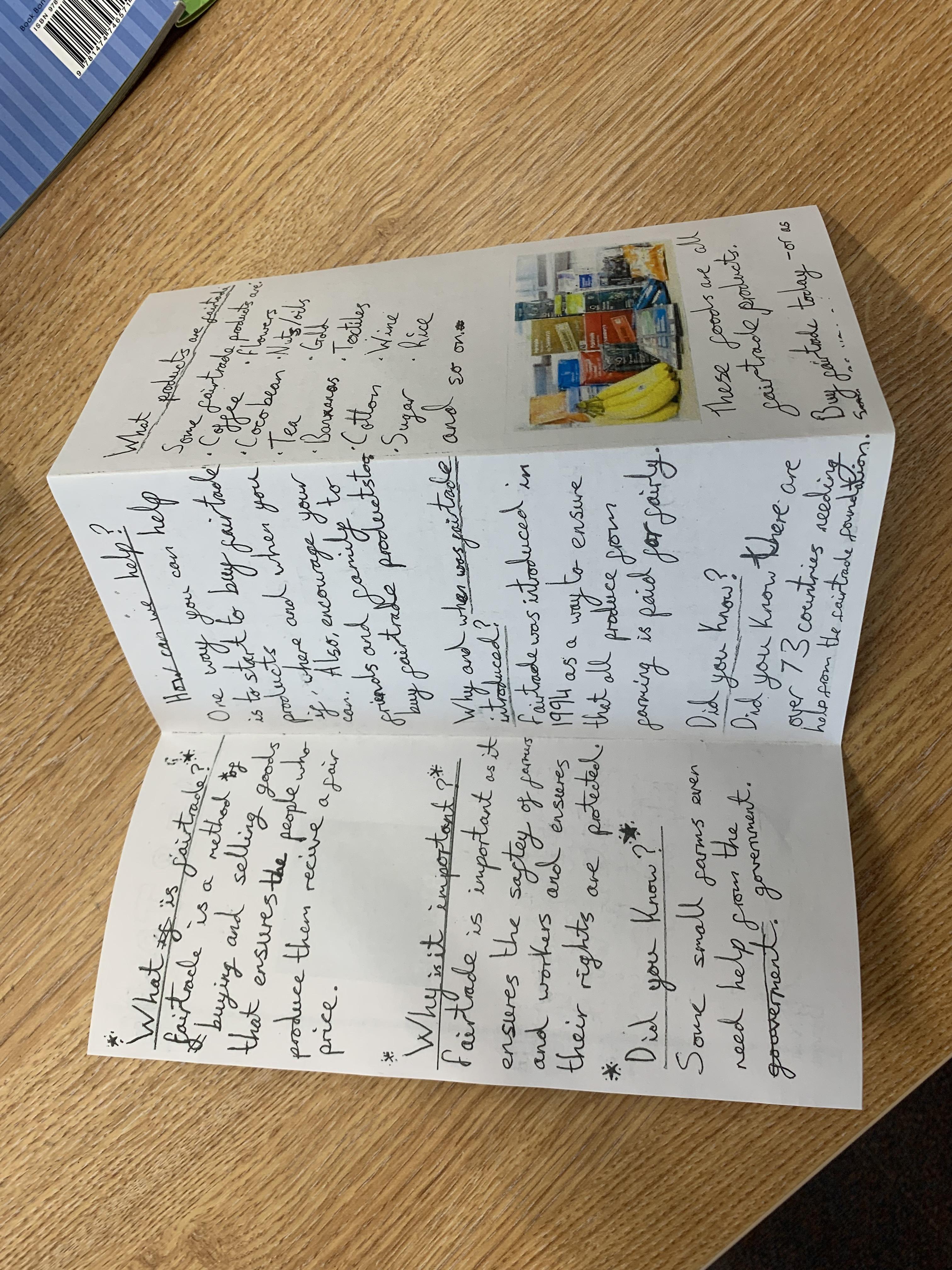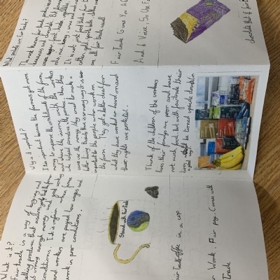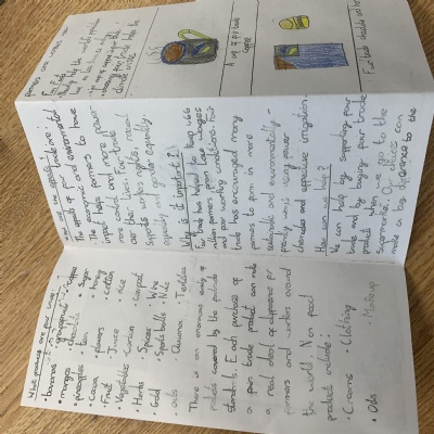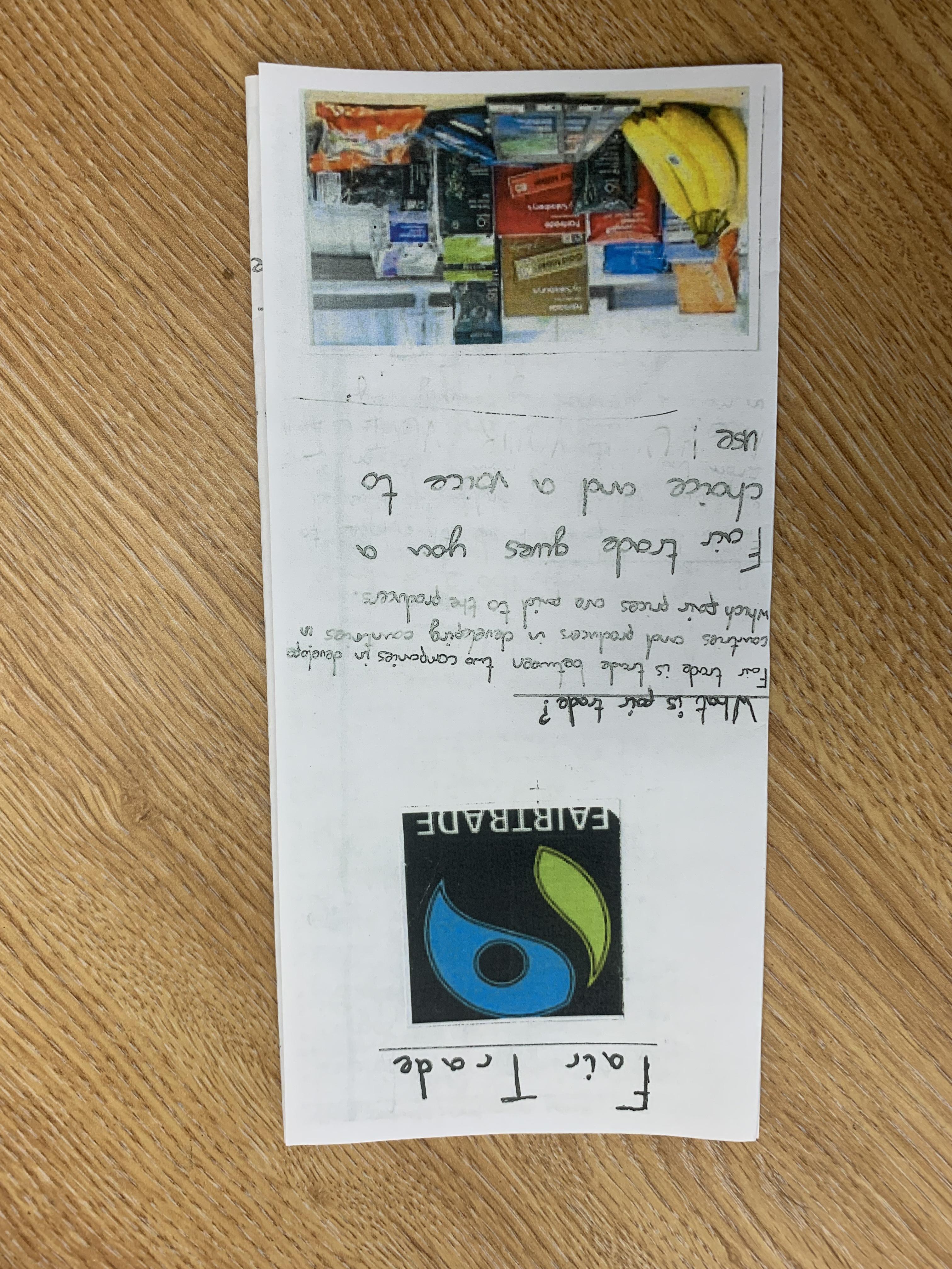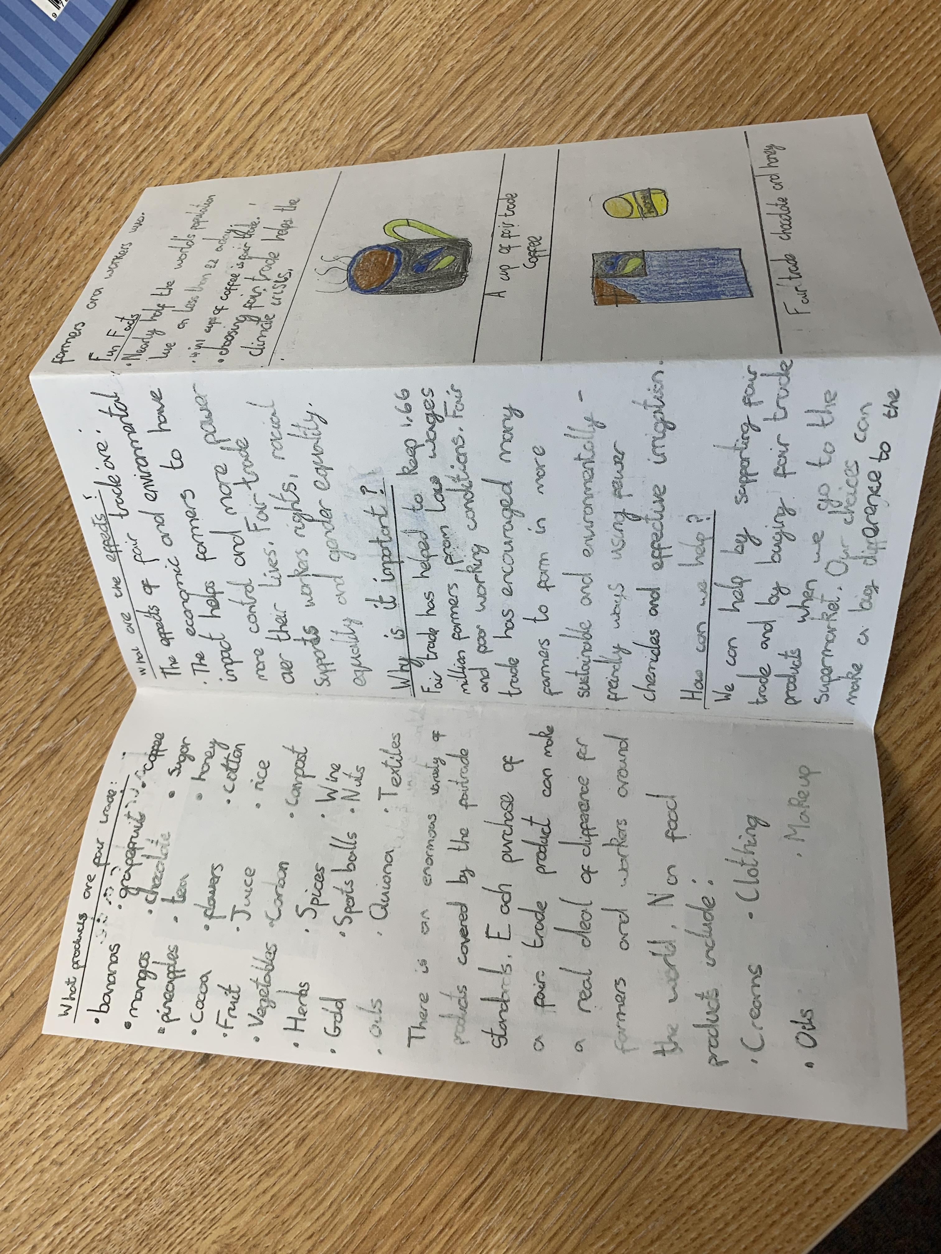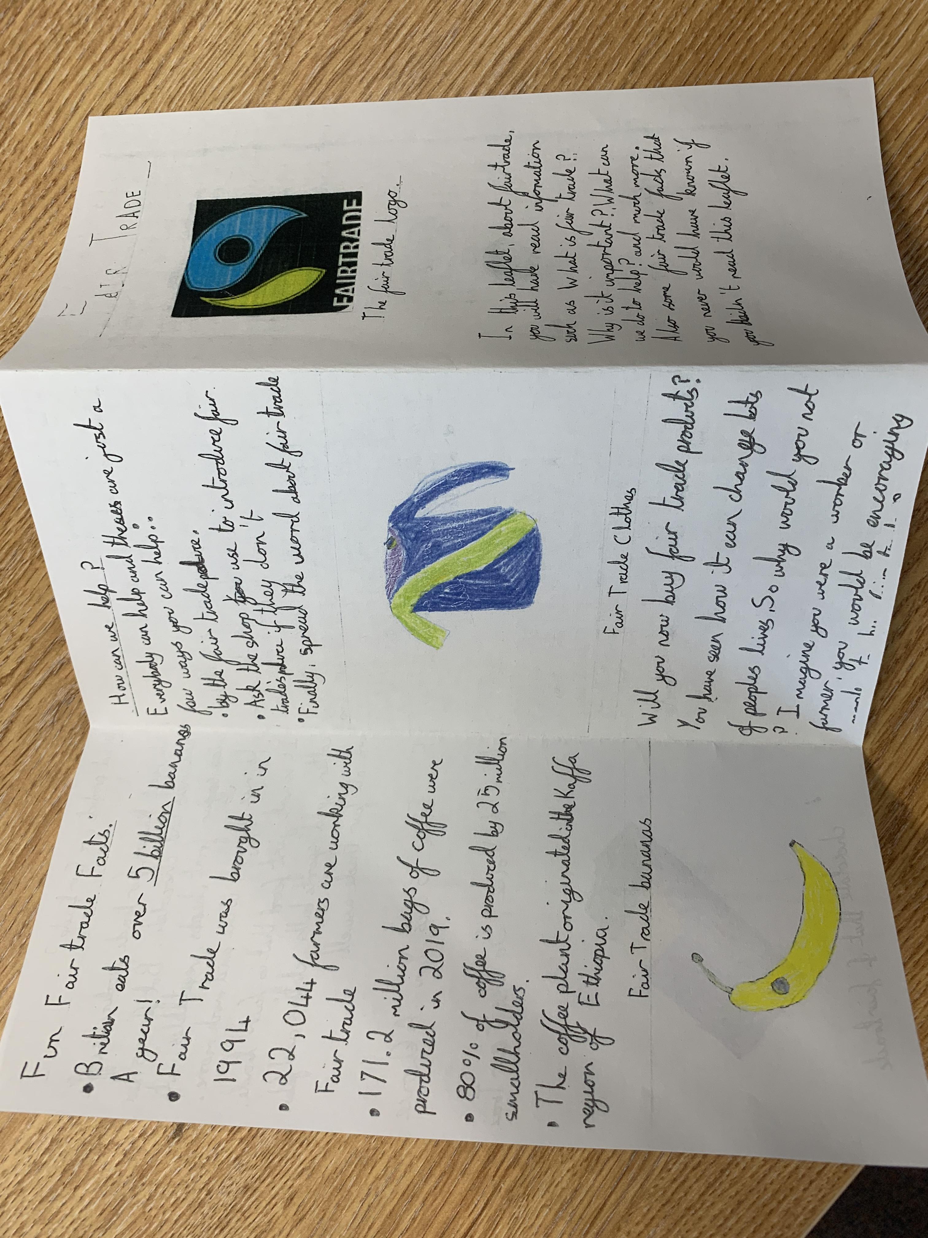 In literacy, the children looked at leaflets ready to write their own about Fair Trade.