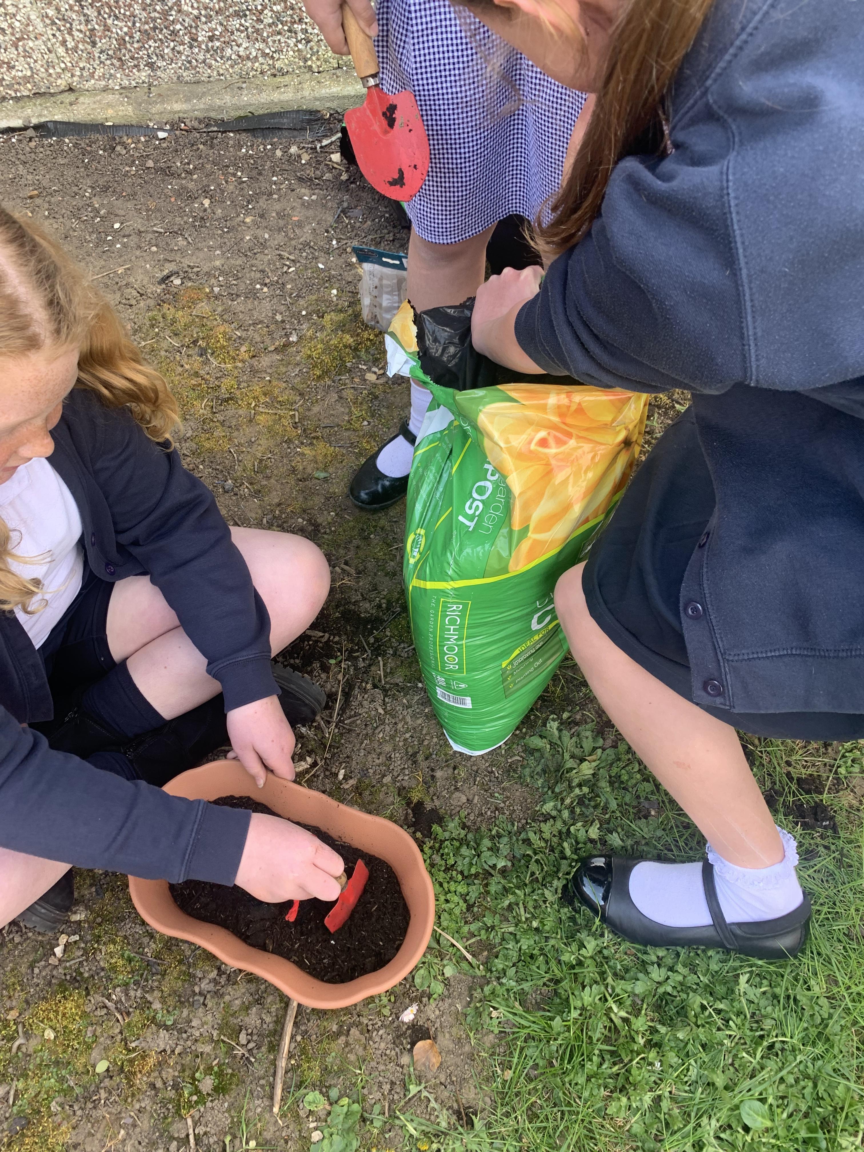 In science, the children planted onions, carrots and courgettes - they will monitor their progress over the coming weeks. They also looked at seasonality and created their own yearly timetable for an allotment to ensure that they had something to harvest every month. They also dissected some flowers to look at the different parts and compared them to a diagram.